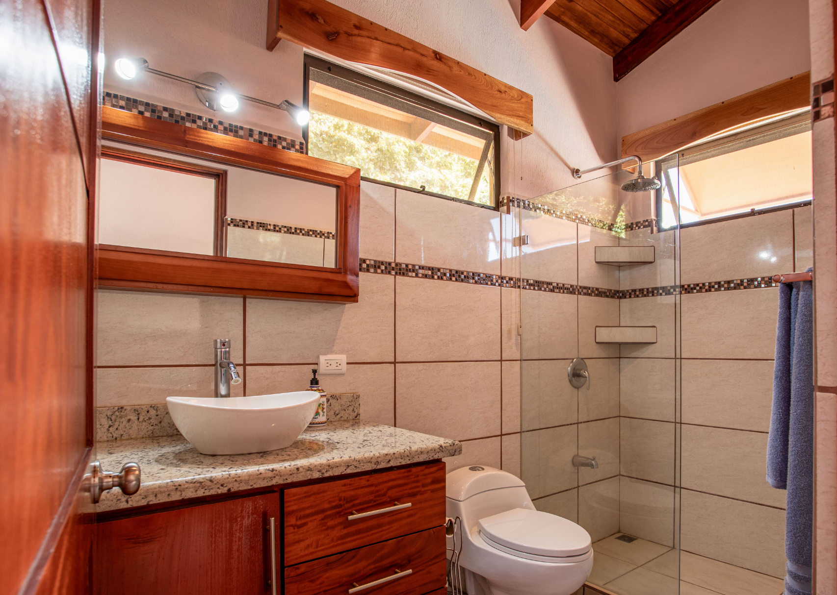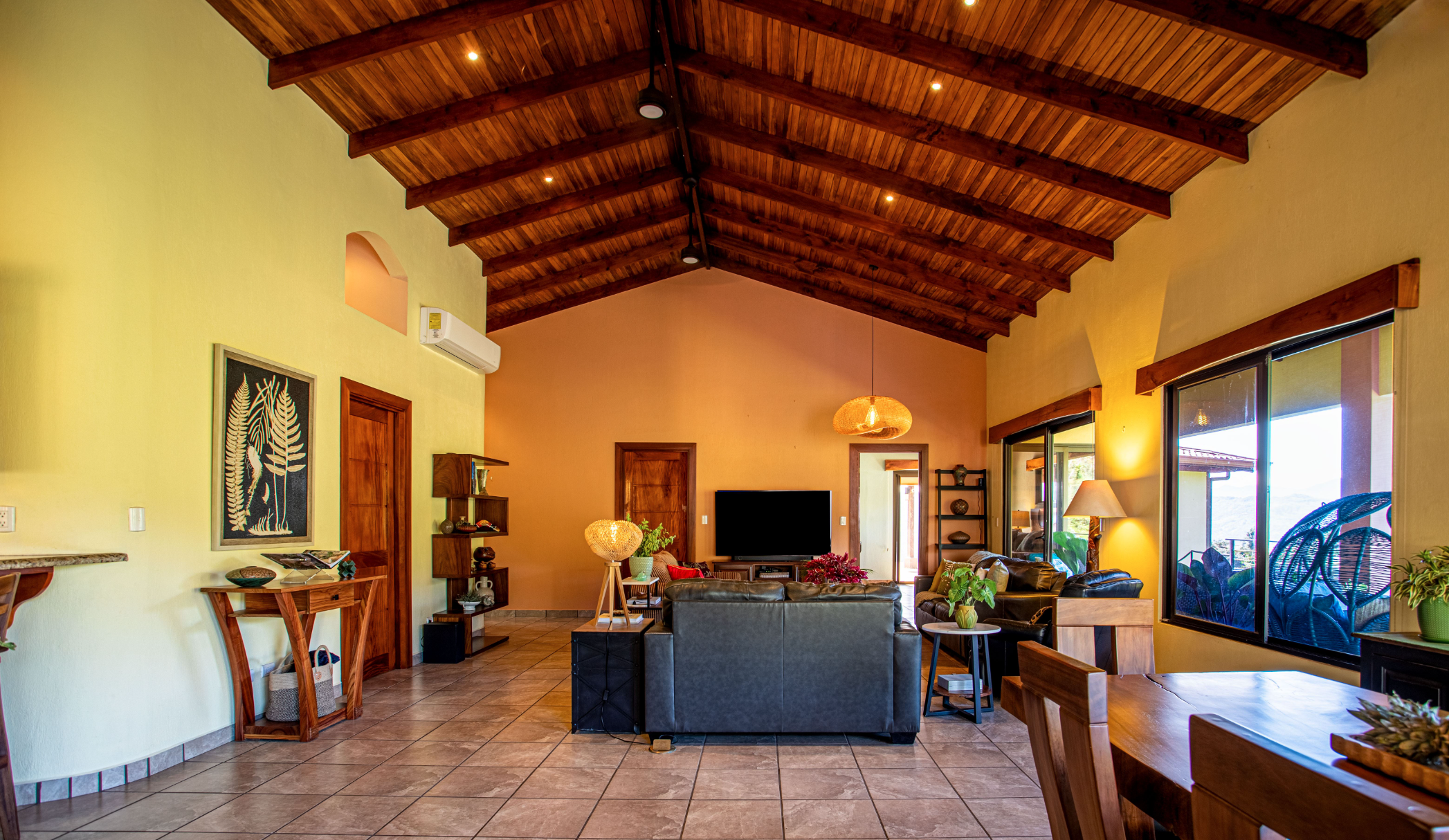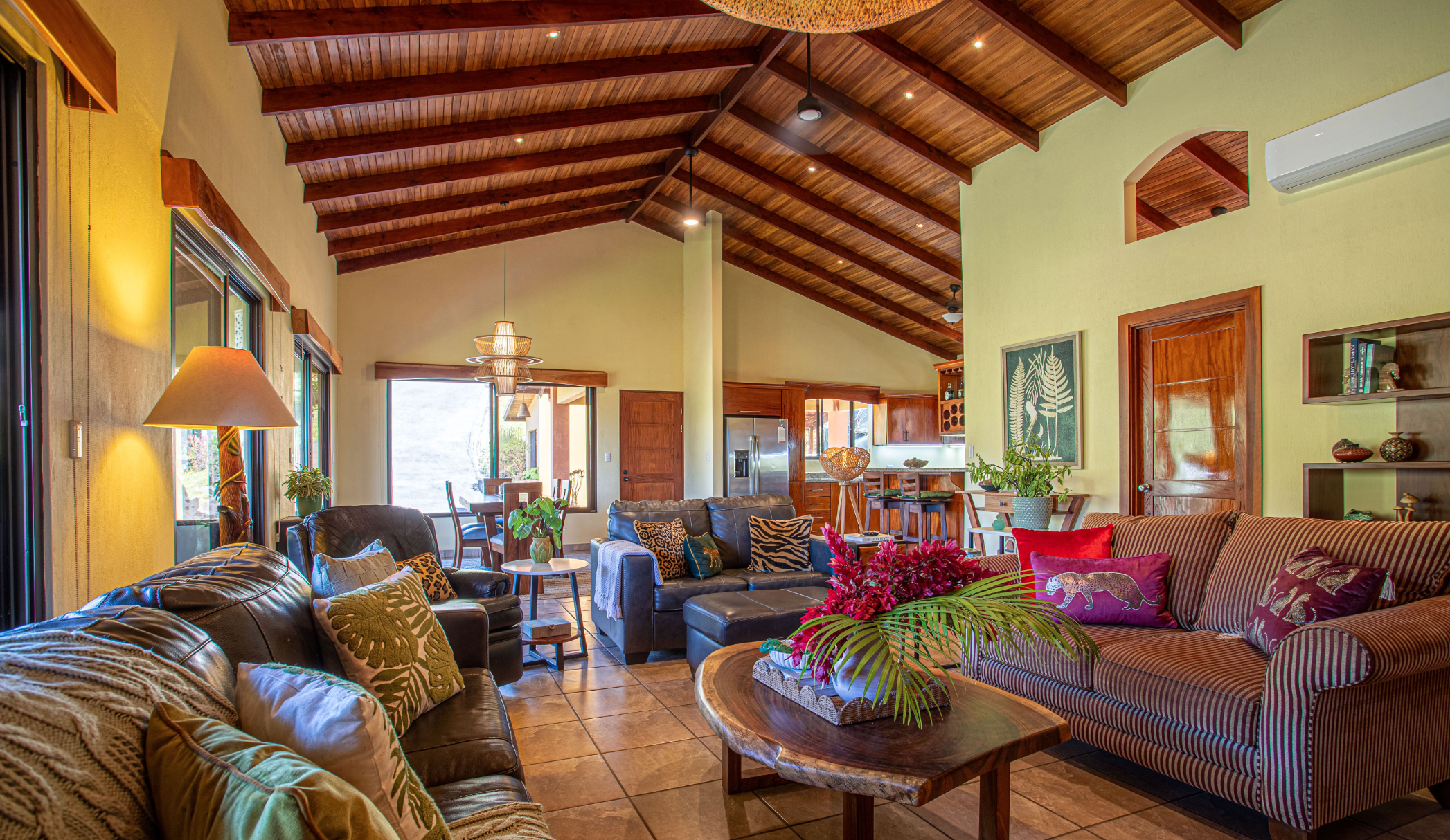 Located in one of Atenas' most exclusive and sought-after gated communities, this charming 3-bedroom, 2.5-bathroom home offers exceptional privacy and resort-style amenities. Both spacious bedrooms feature en suite bathrooms, including a fully renovated master bathroom. The living room boasts soaring artisanal wood ceilings, complemented by three new energy-efficient D/C fans, and is tastefully furnished throughout. The well-appointed kitchen offers ample wooden cabinetry for storage and plenty of room for cooking. A third room serves perfectly as an office, and there’s a convenient half bathroom for guests. Additionally, the home includes a laundry/utility room with custom wooden cabinetry for added functionality.