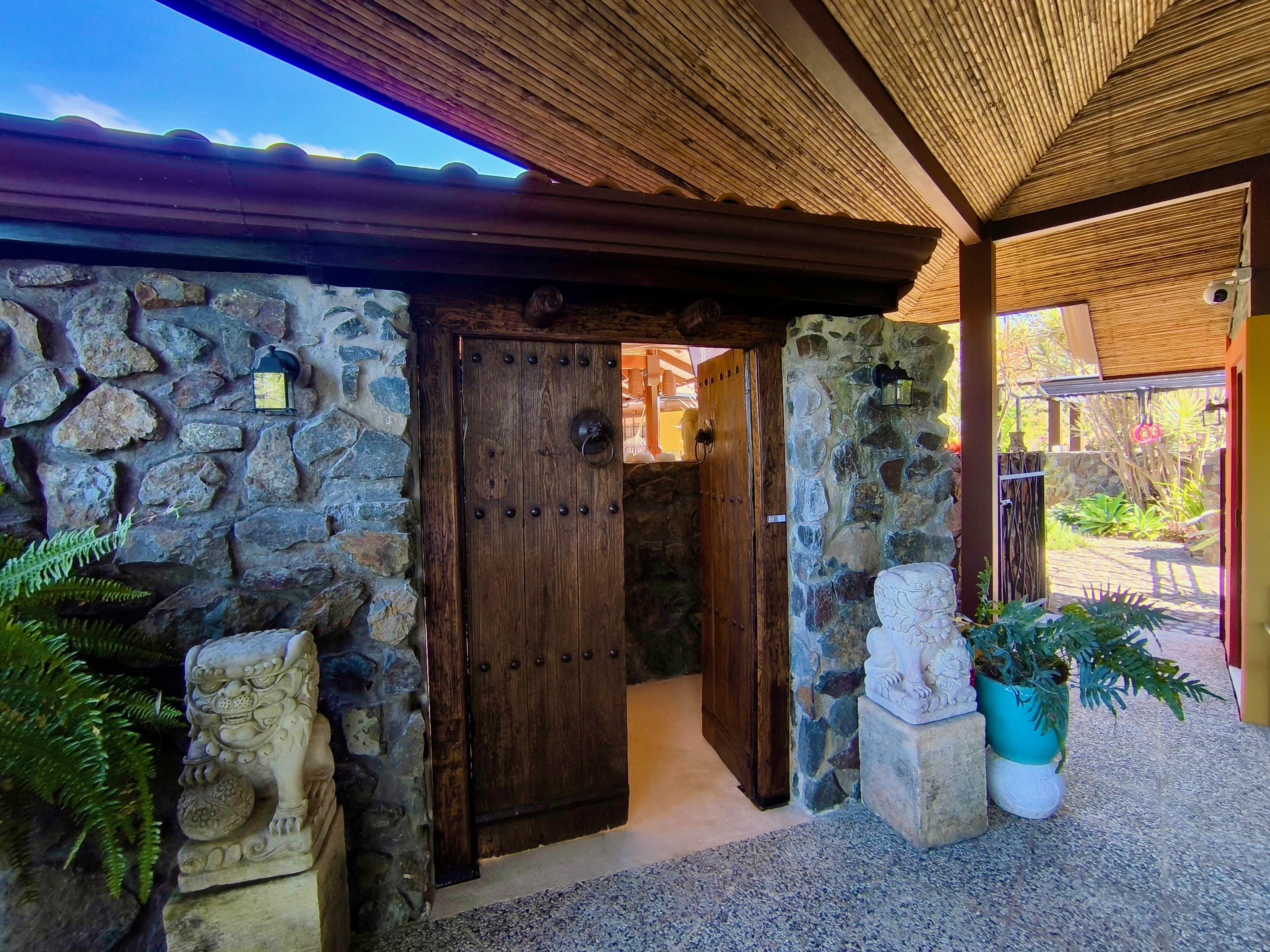 Property Features: • Balinese-inspired design with multiple pavilions • Main pavilion with open-plan living and exotic wood ceilings • Two bedrooms + studio space with potential for more • Separate temple-like structure • Pool with water features, iron bridge, and stone accents • Coffee plantation and giant bamboo grove • Carport + garage + additional storage areas • Unique entry through a 400-year-old Chinese door