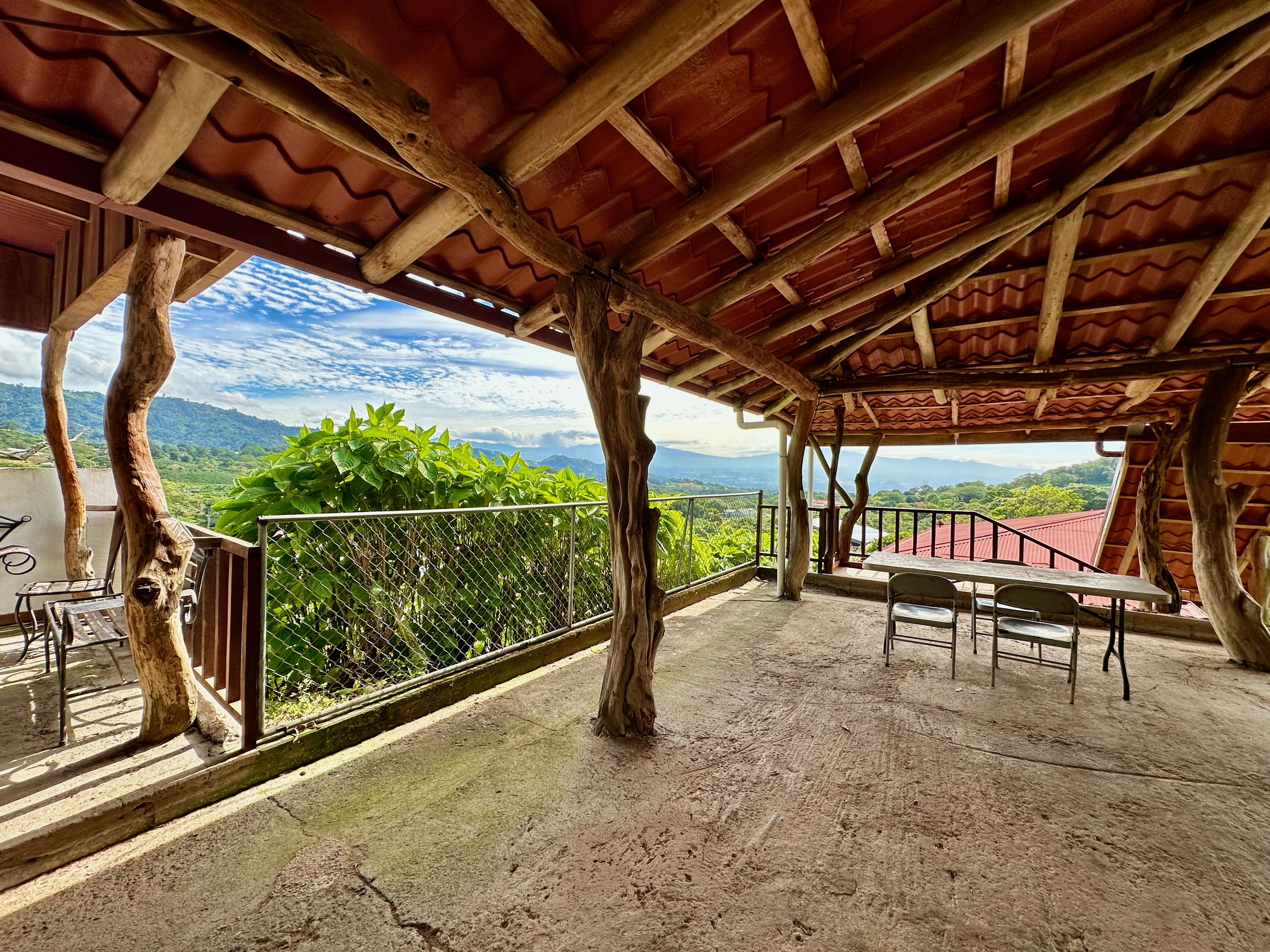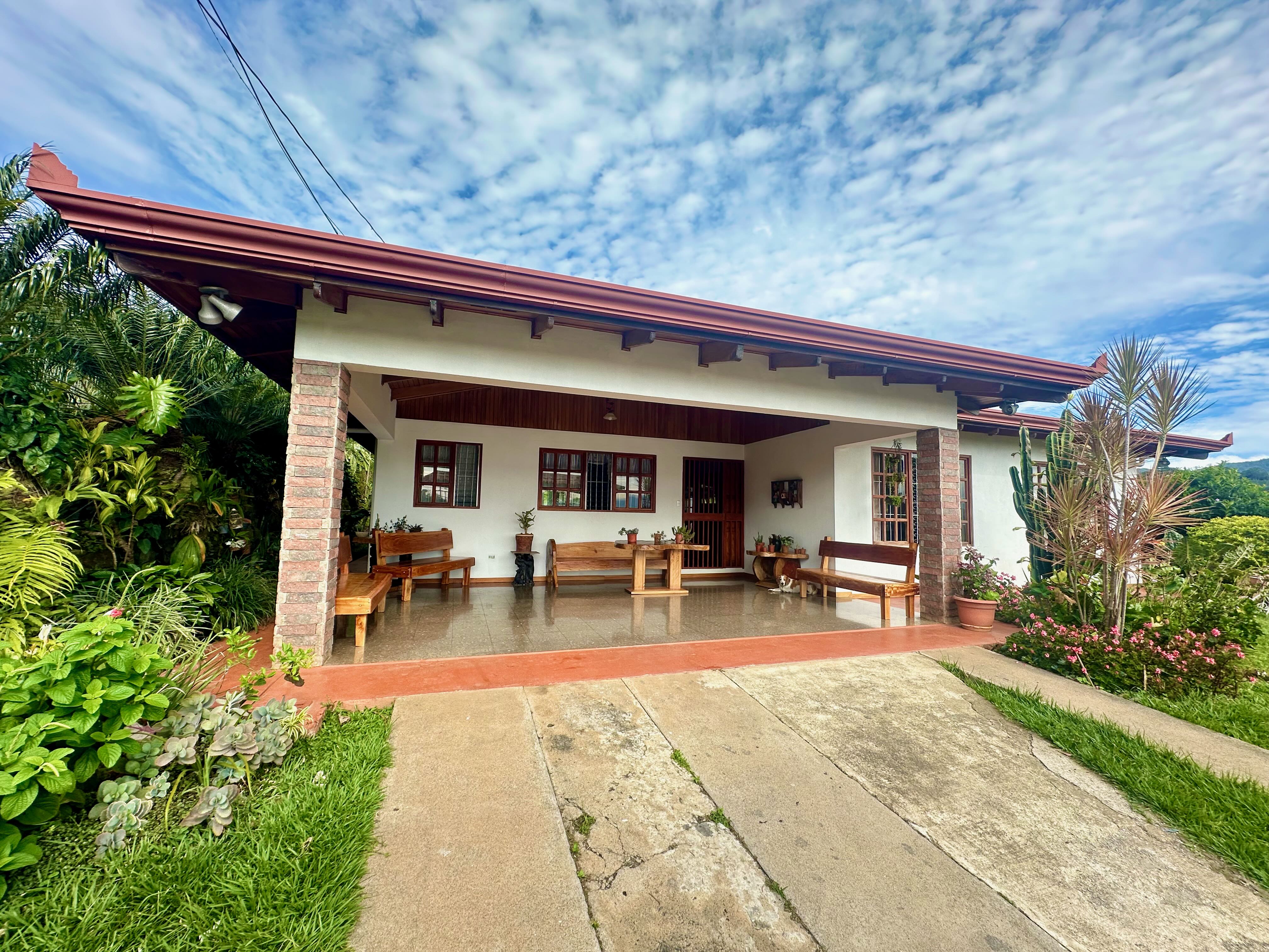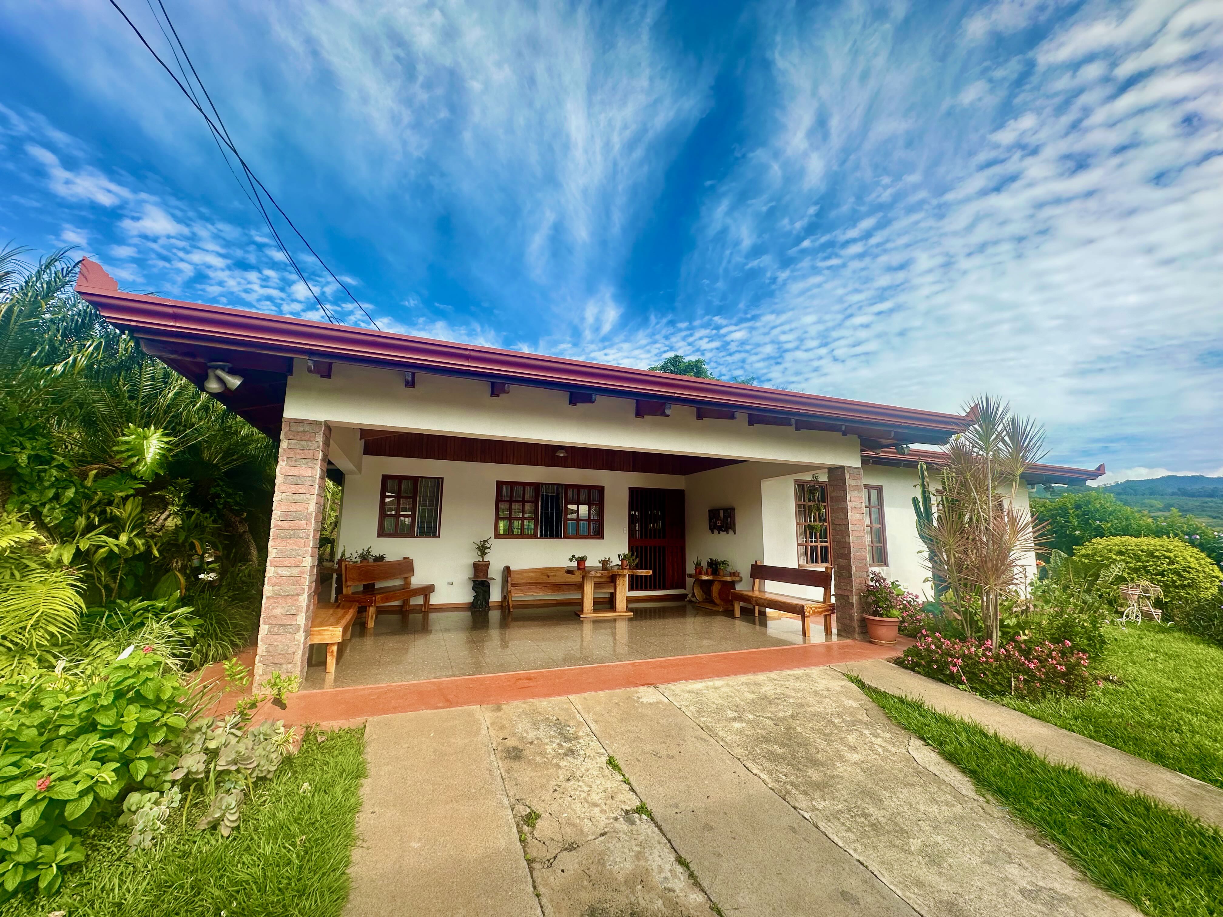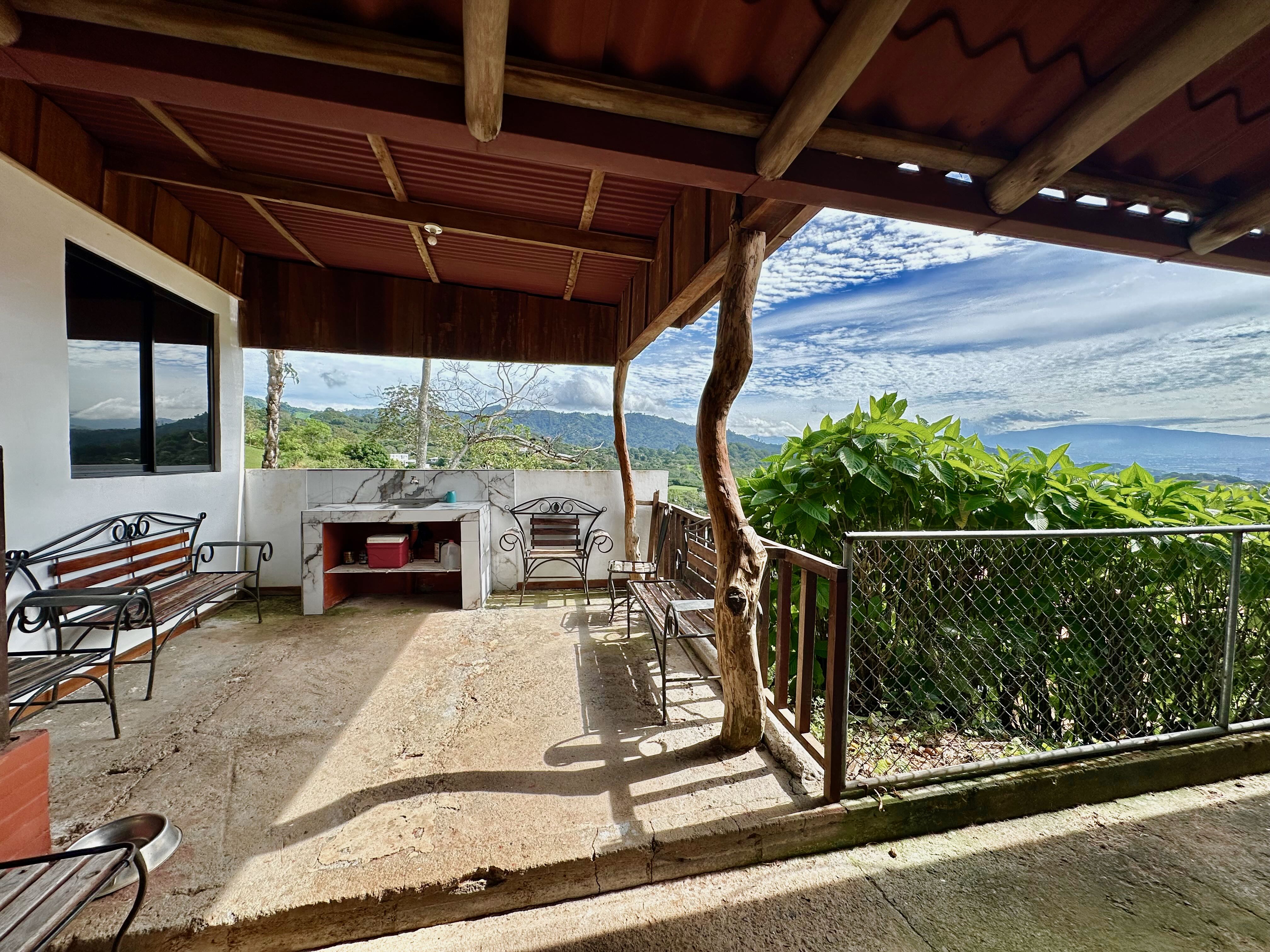 Step into the true spirit of Costa Rica with this authentic single-story home, built over 30 years ago with exceptional craftsmanship. Featuring high cedar wood ceilings and hardwood bedroom floors that look nearly new, the house combines timeless character with solid construction. The layout includes three bedrooms, two bathrooms, an open-concept kitchen with dining and living areas, plus a laundry room and covered carport for two vehicles. At the back, a spacious rancho invites you to relax or entertain while enjoying sweeping mountain and volcano views. The property also includes a small outbuilding with an additional bathroom that can be renovated or repurposed. Fully fenced and located in a peaceful, safe neighborhood, this charming home is just 10 minutes from Atenas, at a higher elevation offering cooler breezes and year-round comfort.