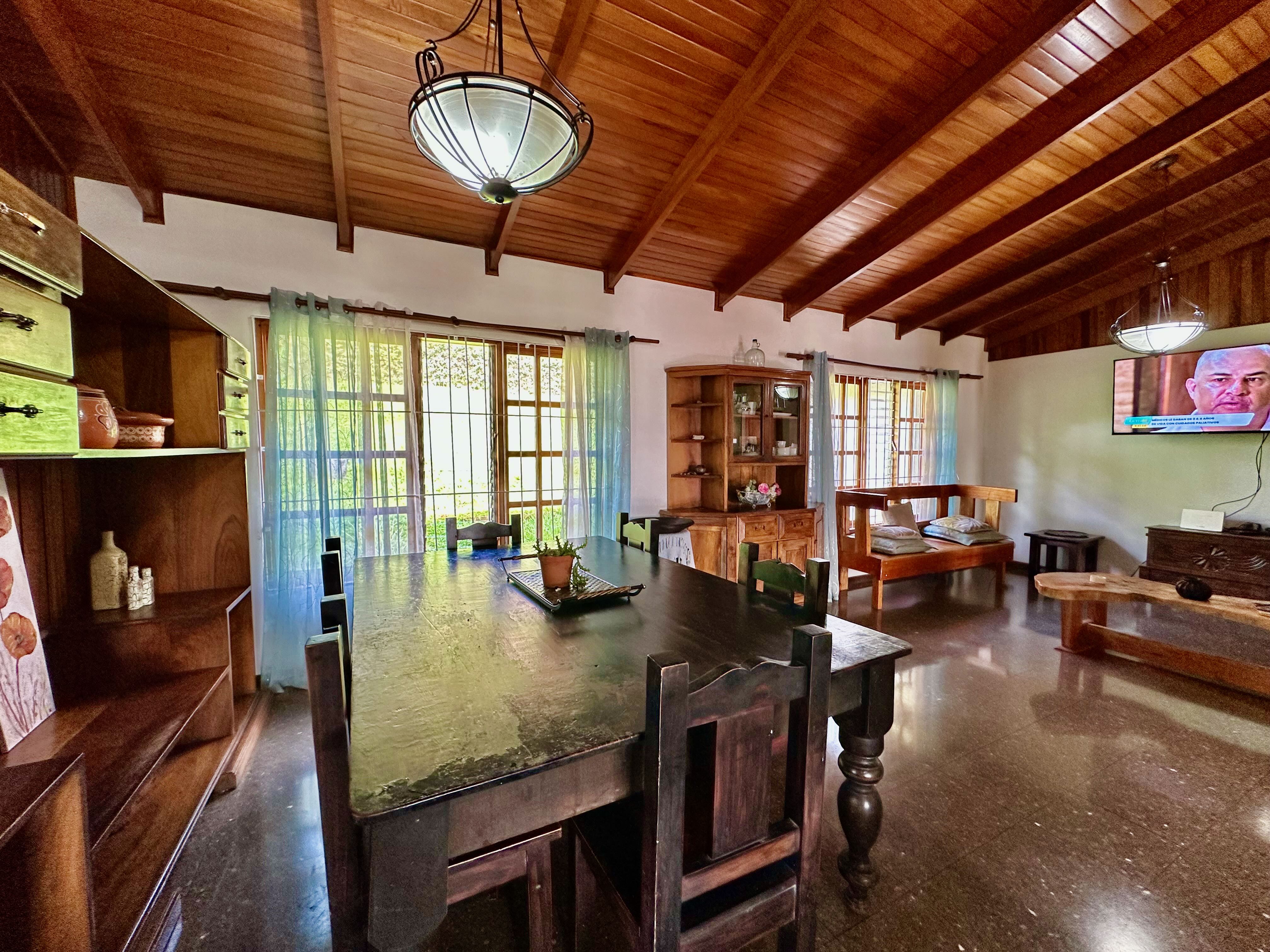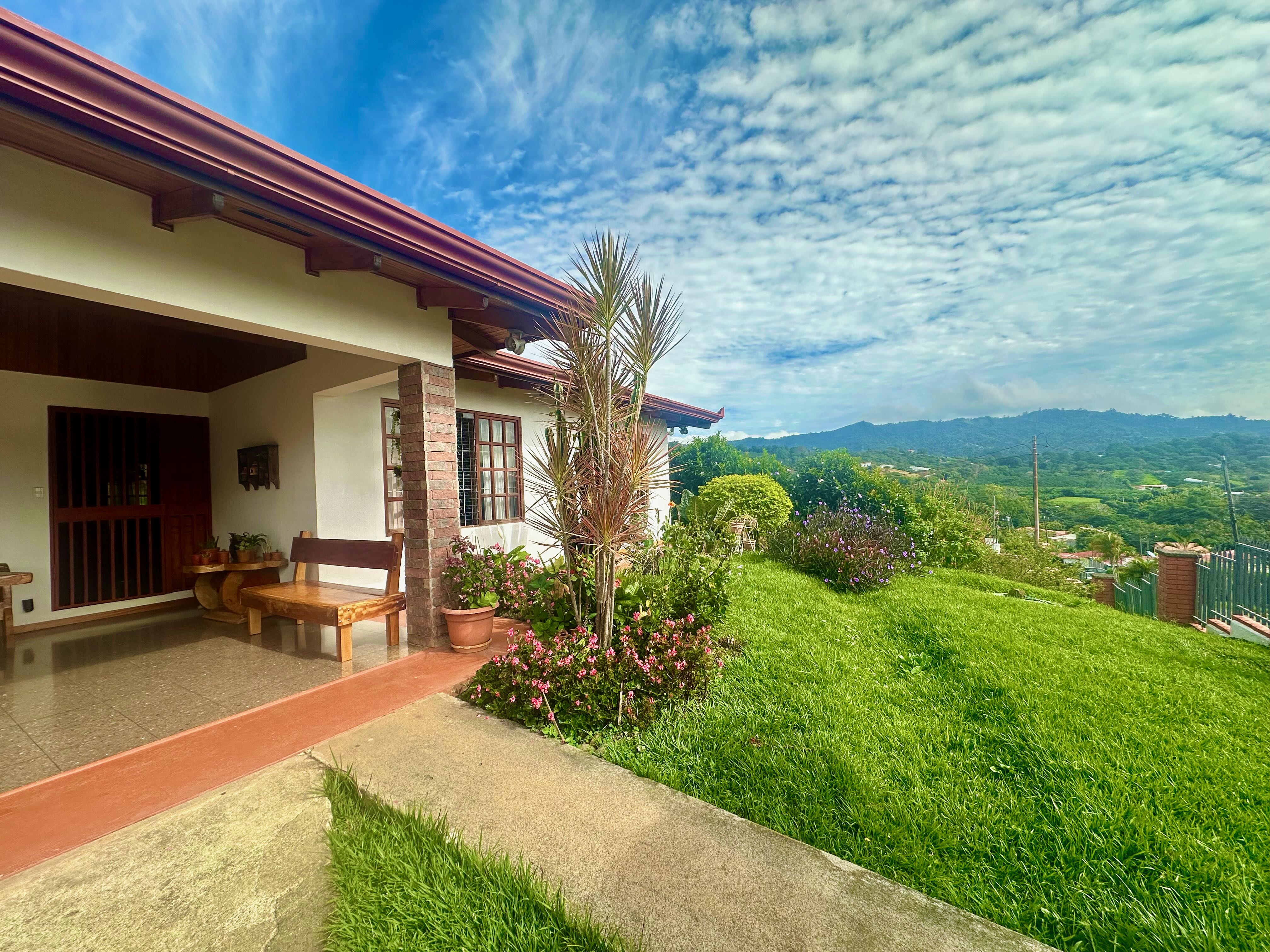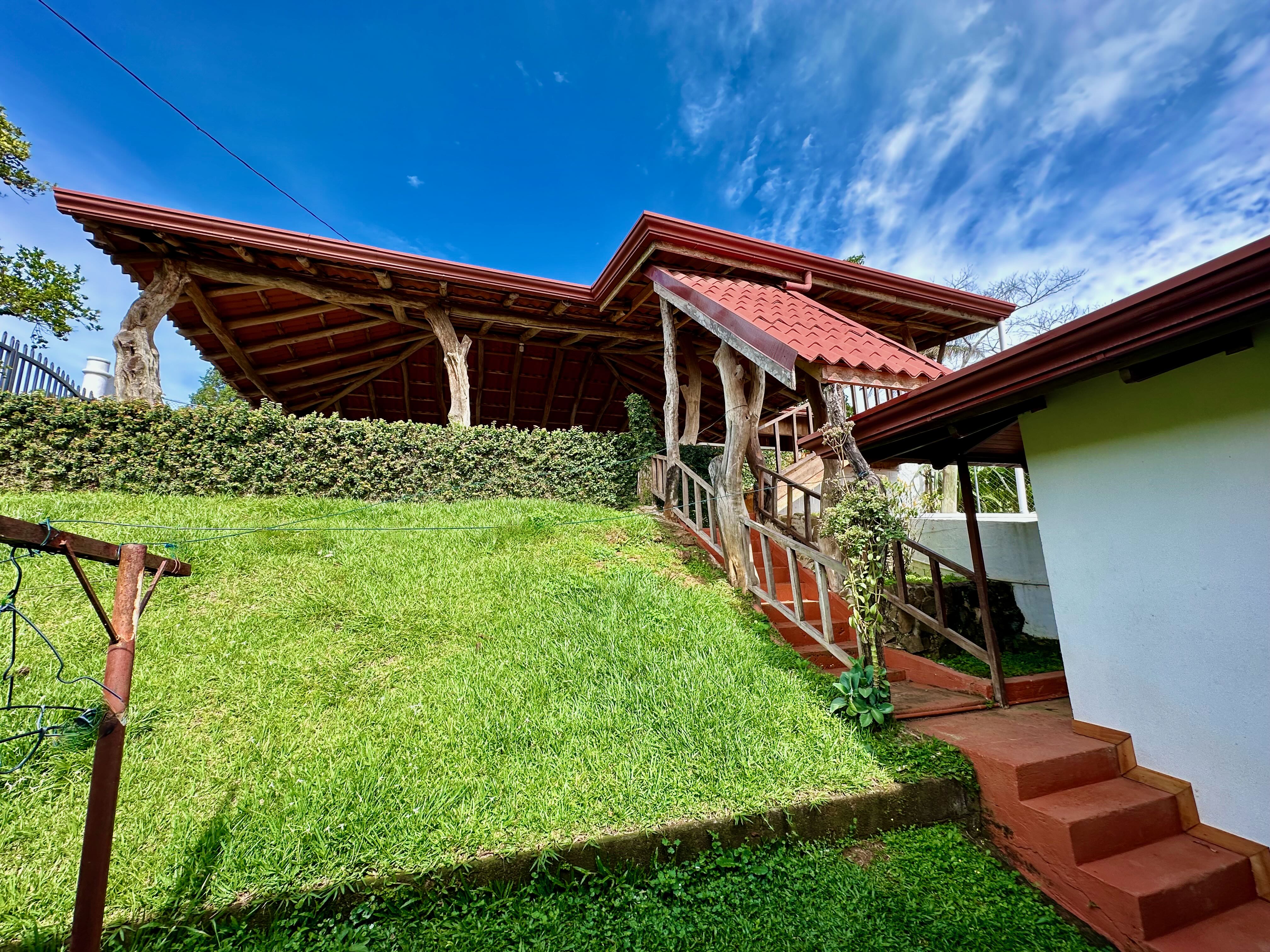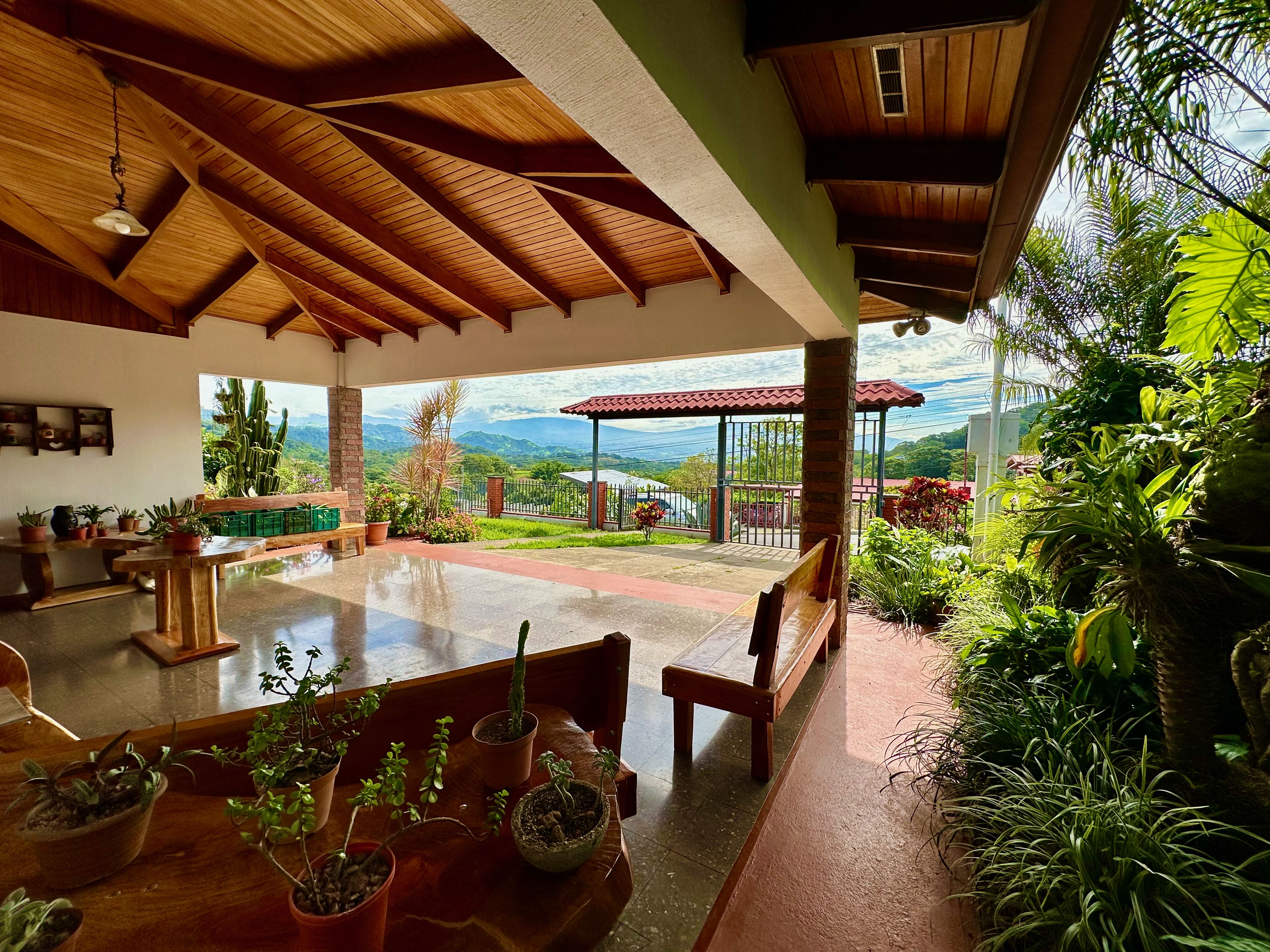 Step into the true spirit of Costa Rica with this authentic single-story home, built over 30 years ago with exceptional craftsmanship. Featuring high cedar wood ceilings and hardwood bedroom floors that look nearly new, the house combines timeless character with solid construction. The layout includes three bedrooms, two bathrooms, an open-concept kitchen with dining and living areas, plus a laundry room and covered carport for two vehicles. At the back, a spacious rancho invites you to relax or entertain while enjoying sweeping mountain and volcano views. The property also includes a small outbuilding with an additional bathroom that can be renovated or repurposed. Fully fenced and located in a peaceful, safe neighborhood, this charming home is just 10 minutes from Atenas, at a higher elevation offering cooler breezes and year-round comfort.