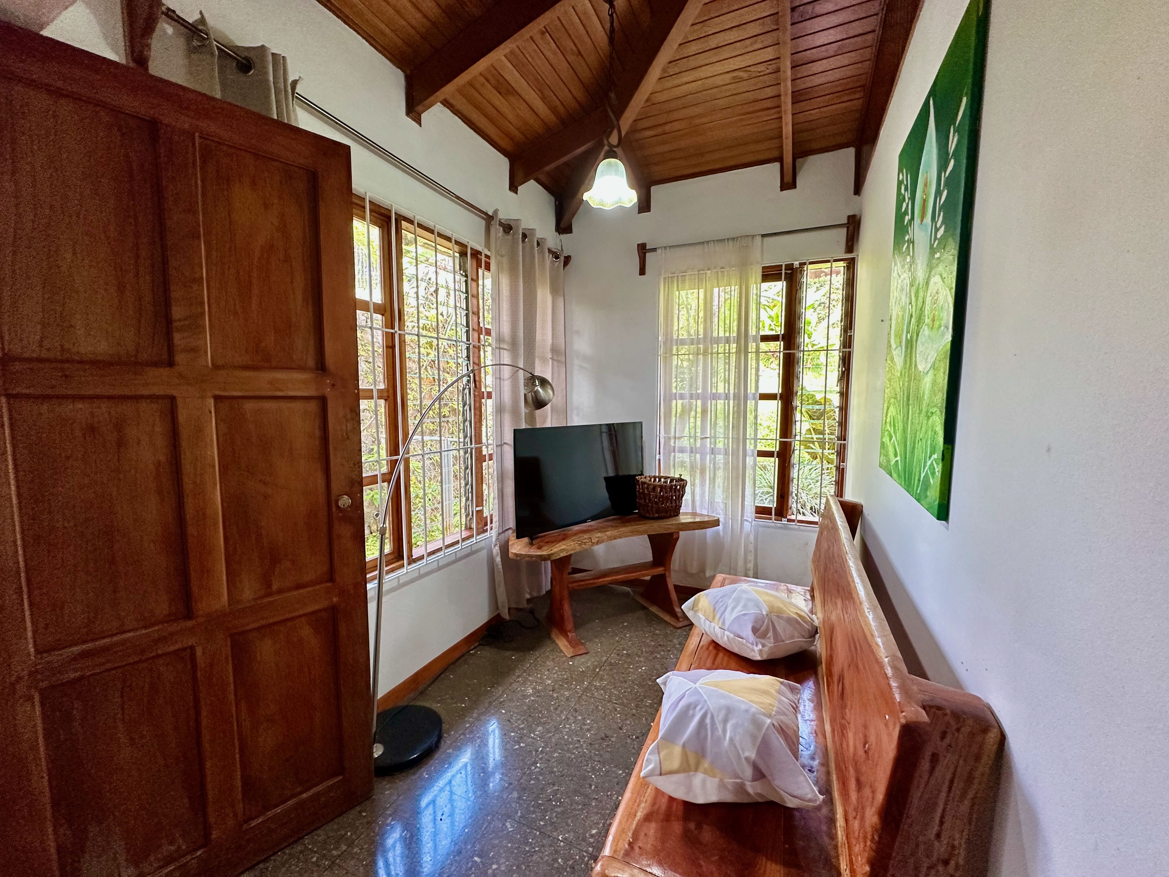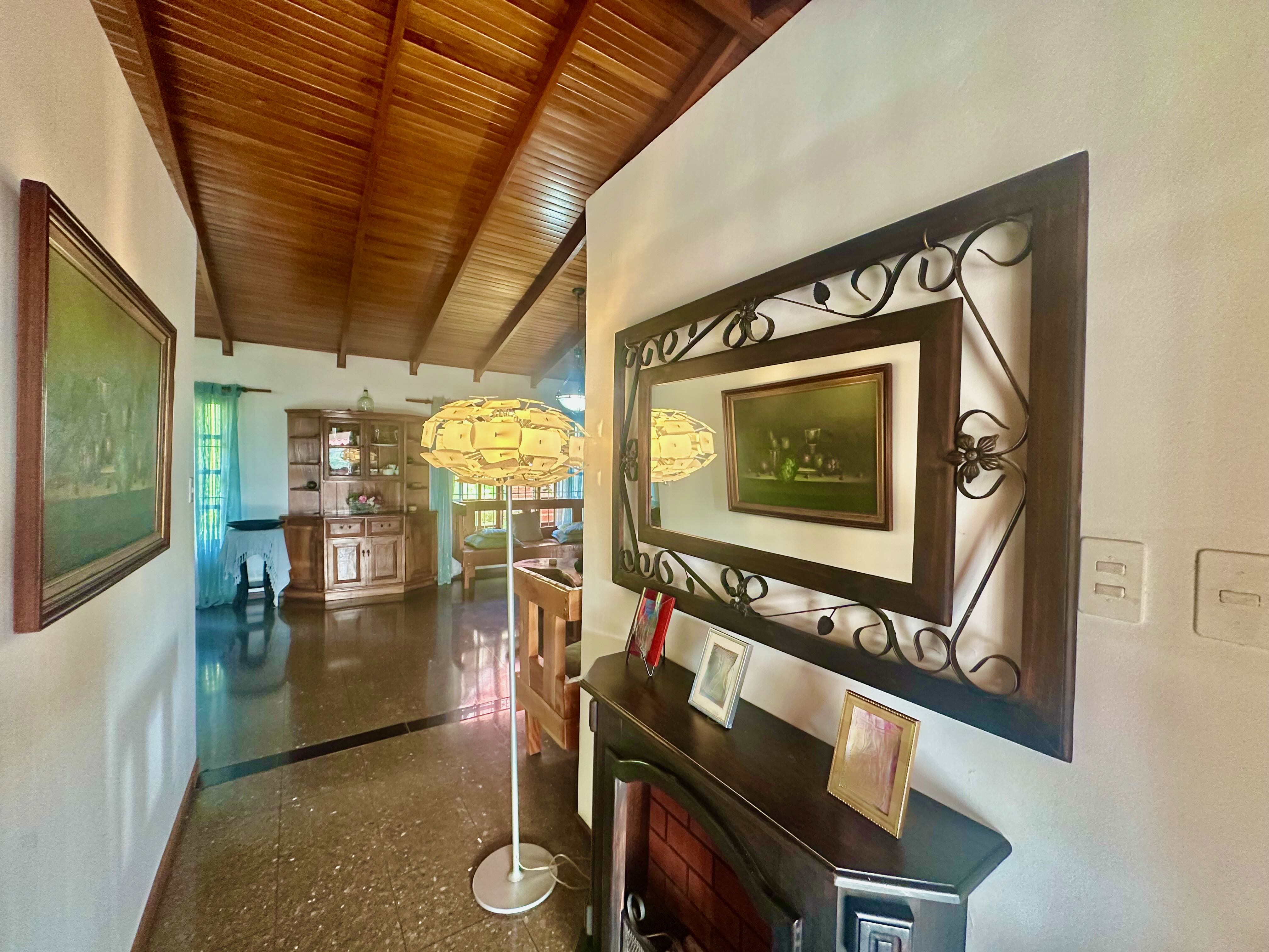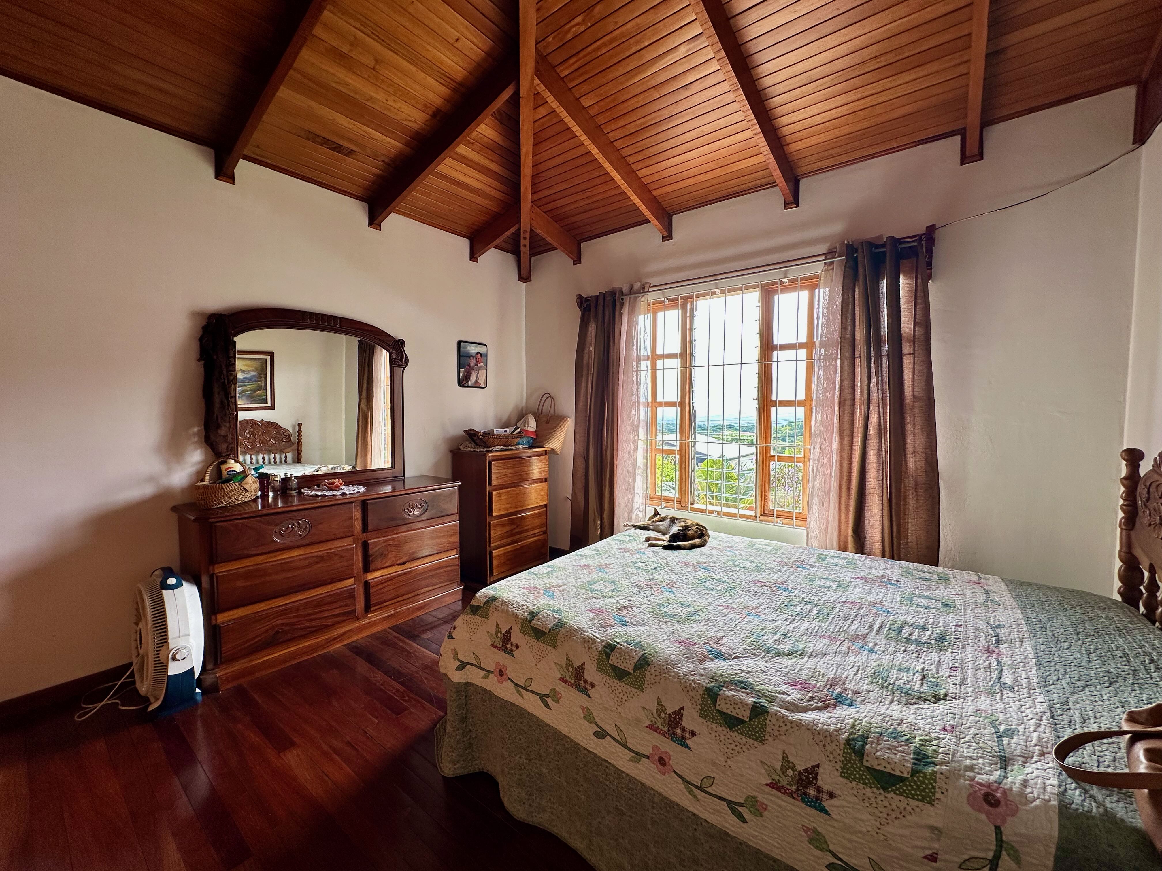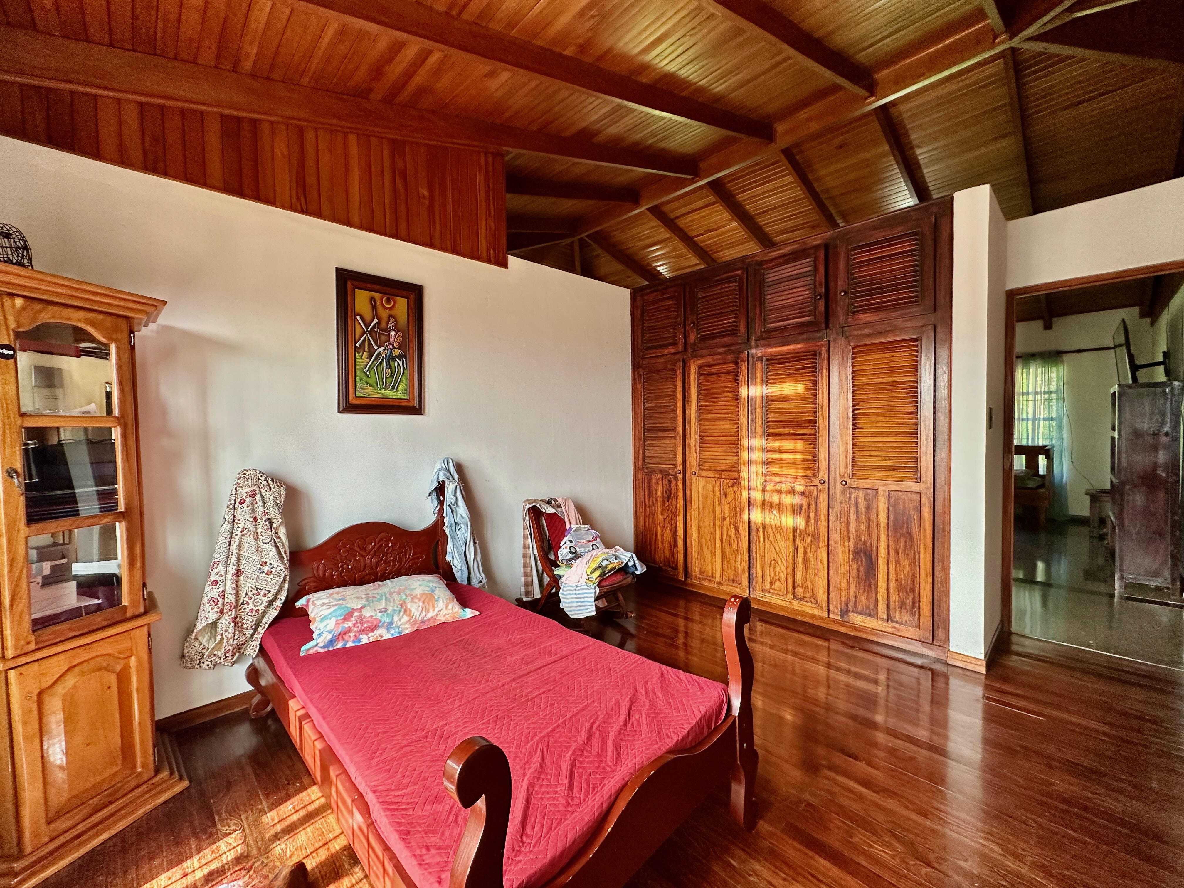 Step into the true spirit of Costa Rica with this authentic single-story home, built over 30 years ago with exceptional craftsmanship. Featuring high cedar wood ceilings and hardwood bedroom floors that look nearly new, the house combines timeless character with solid construction. The layout includes three bedrooms, two bathrooms, an open-concept kitchen with dining and living areas, plus a laundry room and covered carport for two vehicles. At the back, a spacious rancho invites you to relax or entertain while enjoying sweeping mountain and volcano views. The property also includes a small outbuilding with an additional bathroom that can be renovated or repurposed. Fully fenced and located in a peaceful, safe neighborhood, this charming home is just 10 minutes from Atenas, at a higher elevation offering cooler breezes and year-round comfort.