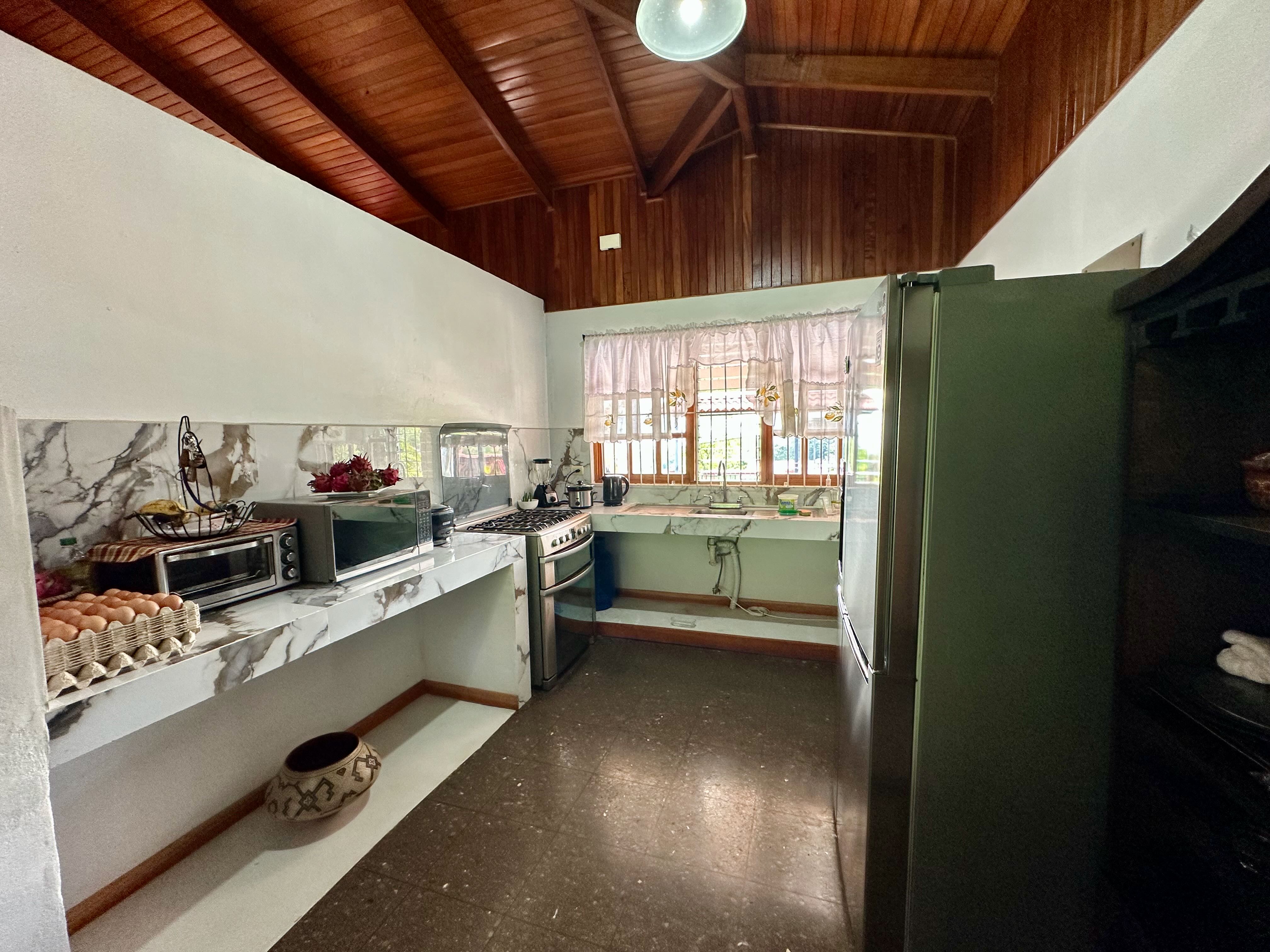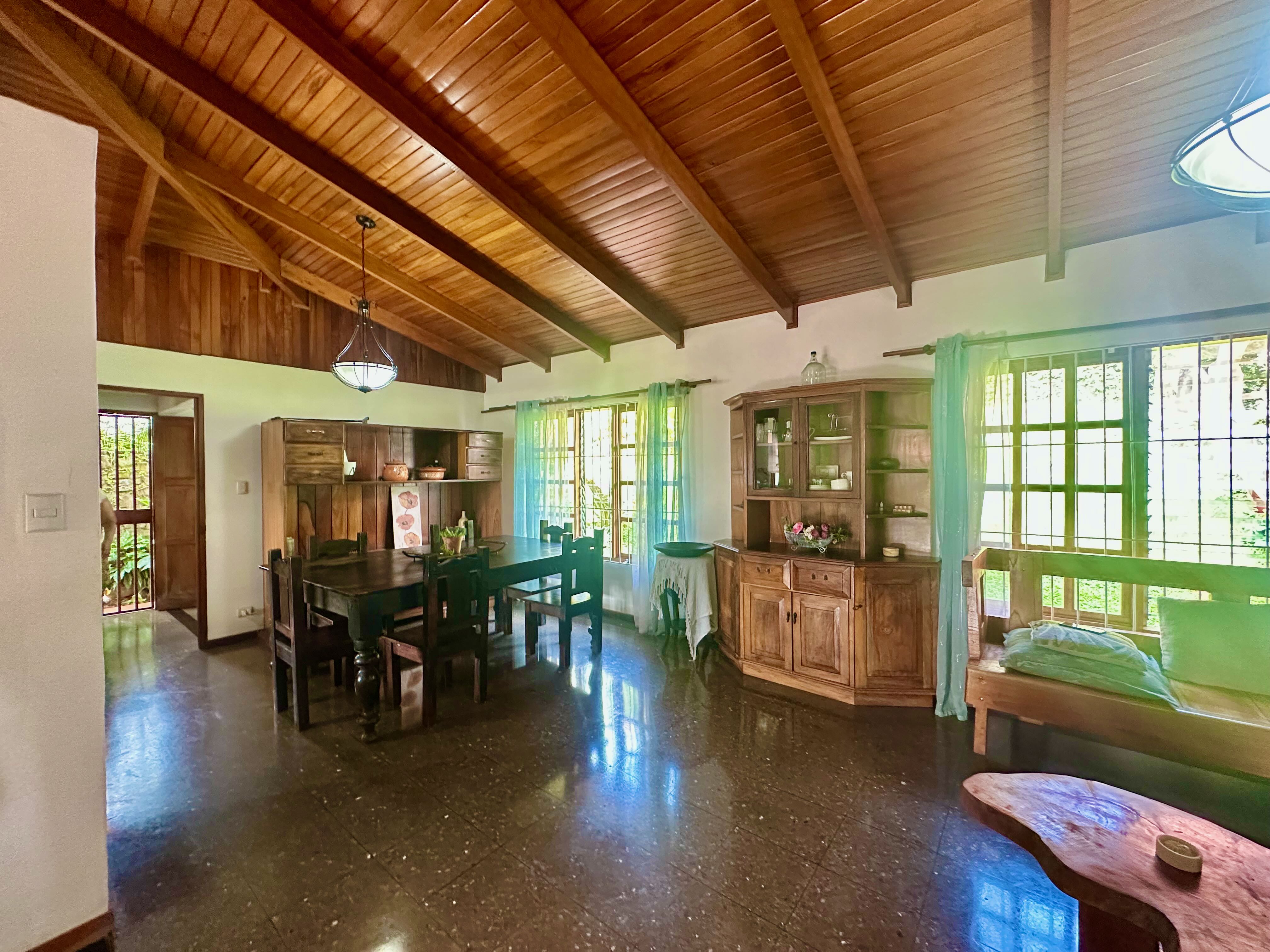 Property features: • 3 bedrooms and 2 bathrooms – space for family or guests • Hardwood floors and cedar wood ceilings – authentic Costa Rican charm • Open kitchen, dining, and living area – ideal for gatherings • Laundry room and carport for two vehicles – practical convenience • Spacious rancho – perfect for outdoor living and entertaining • Small outbuilding with extra bathroom – potential for renovation or guest use • Fully fenced property – privacy and security guaranteed • Solid 30+ year construction – built to last