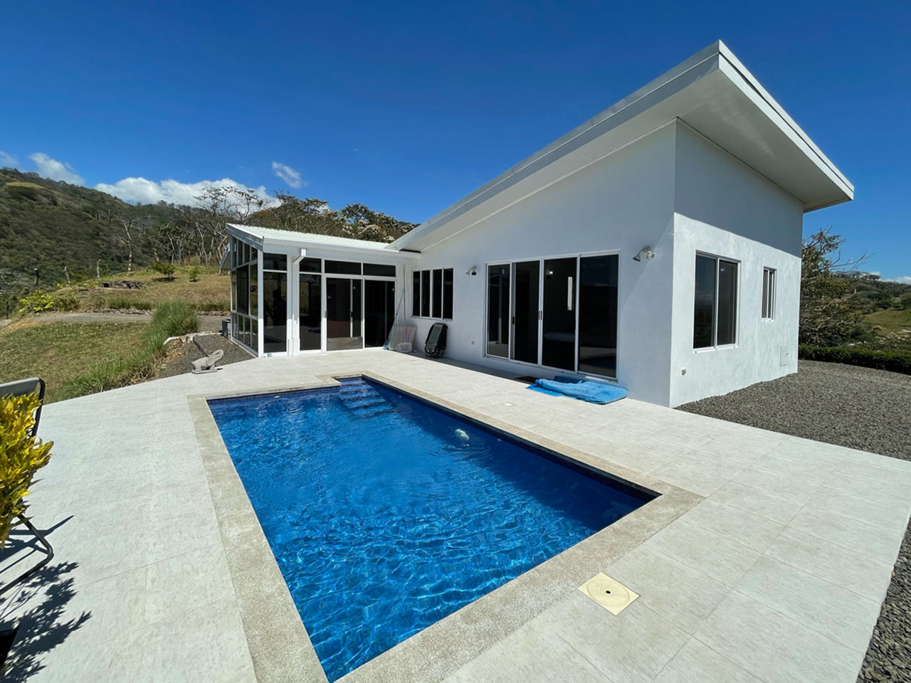 This house with a nice modern style and with excellent views, the property is located just 10 minutes from the center of Atenas, the house has a property of 6643.25 square meters and a construction of 168 square meters. There is a beautiful kitchen, pool, 3 bedrooms, 2 bathrooms. The master bathroom has a modern spa-style shower with a whirlpool tub. There are lots of green areas and plenty of room to build or add trees and other vegetation. Furniture is negotiable