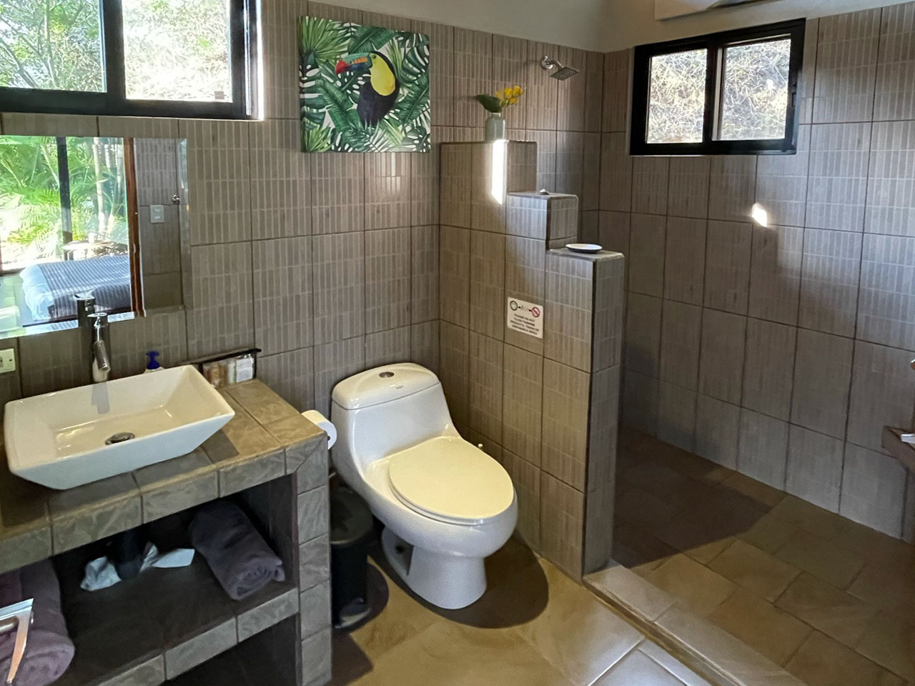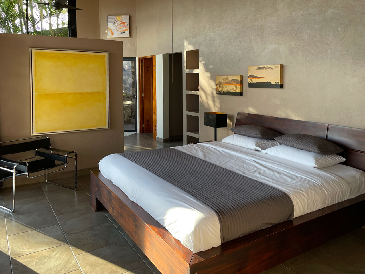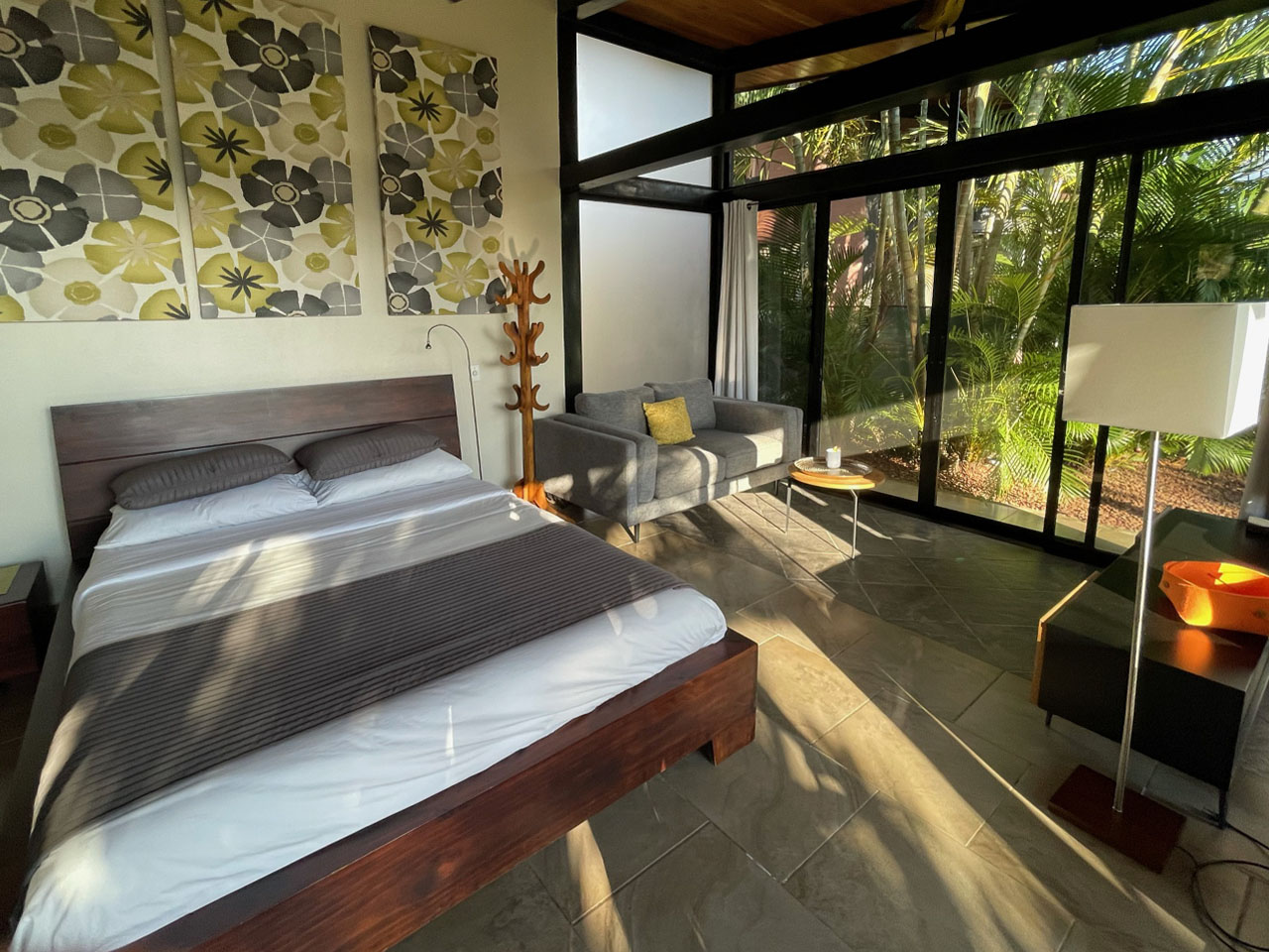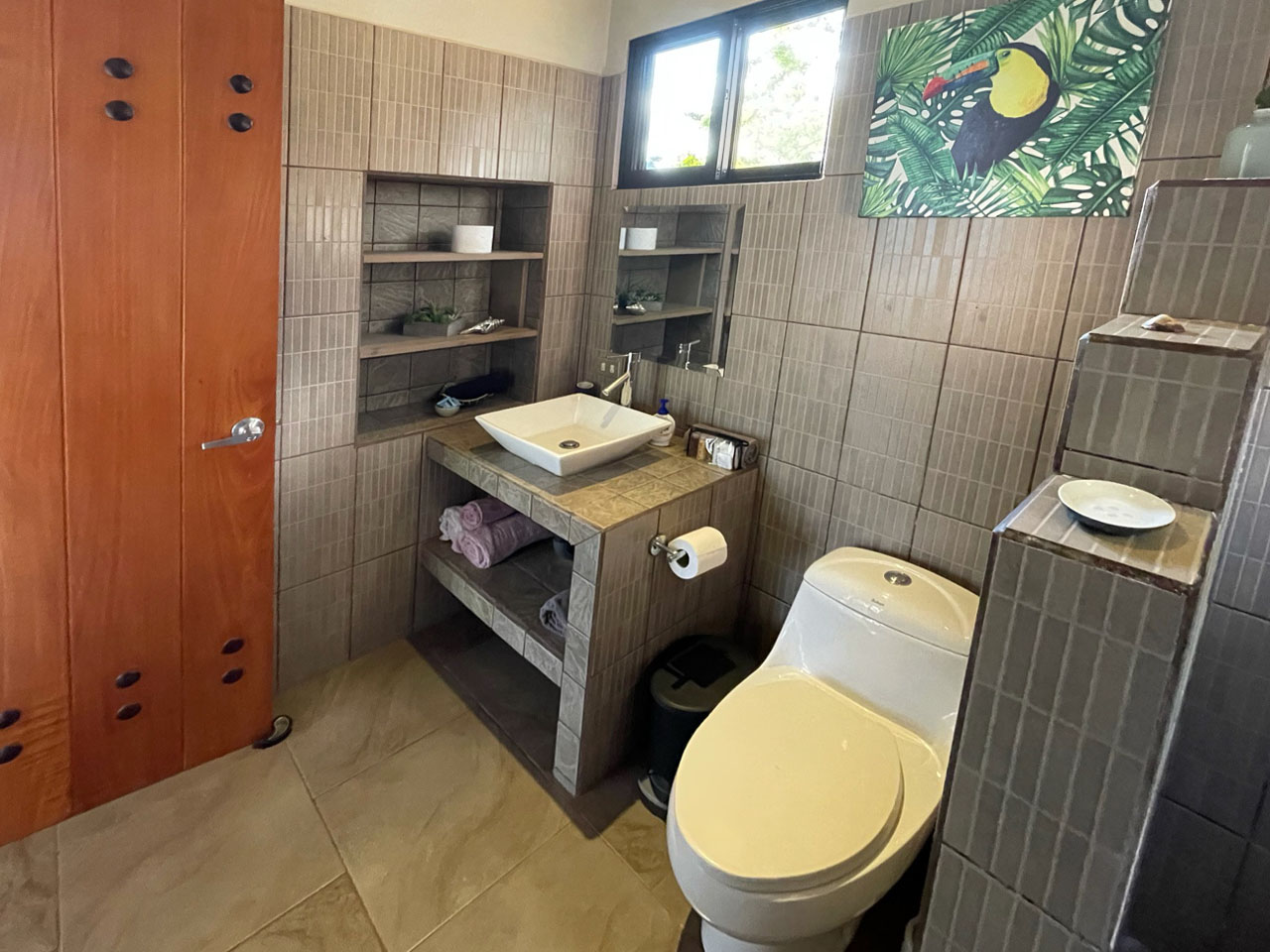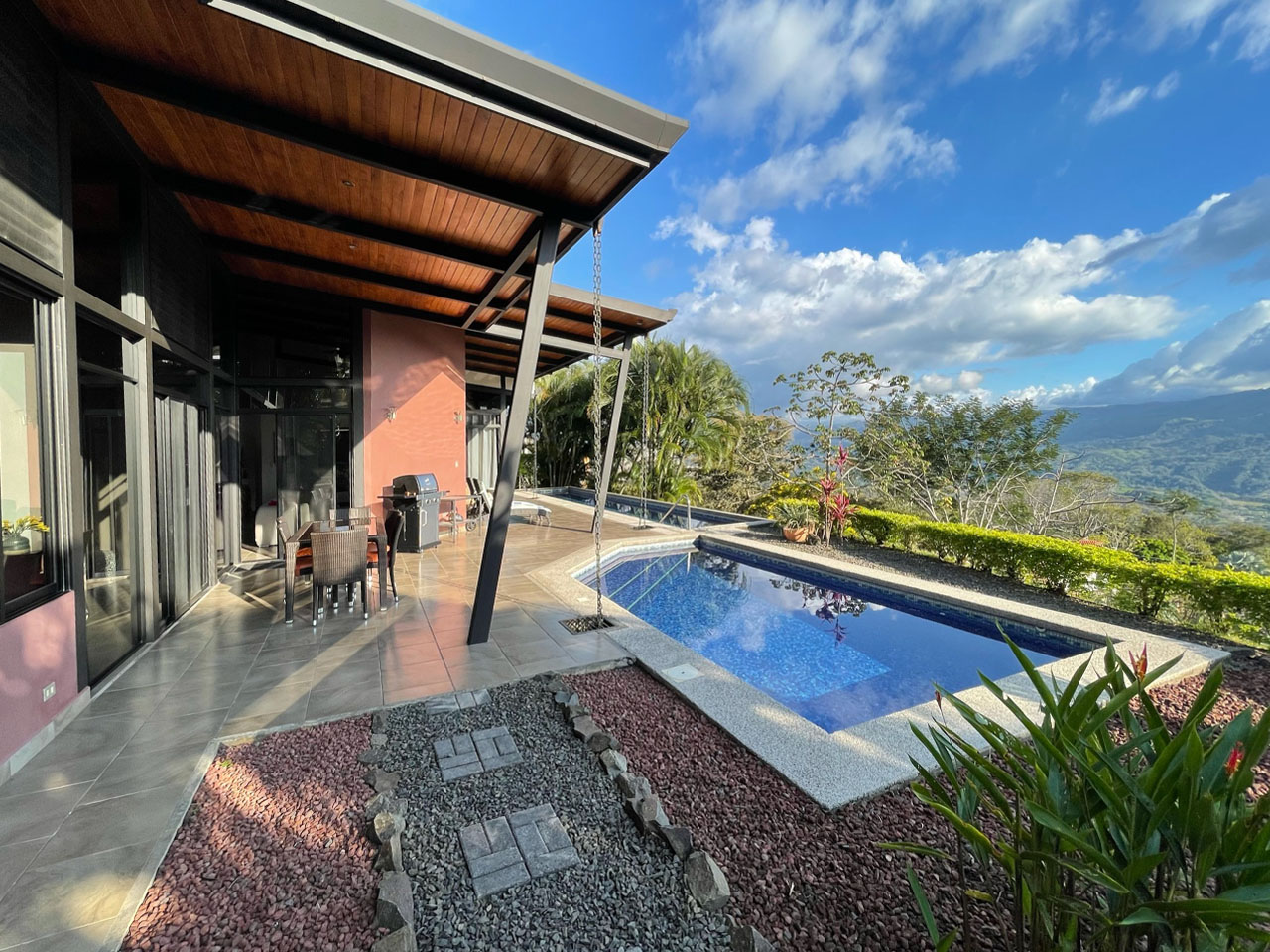 This beautiful contemporary design home is move in ready. It is being sold fully furnished. Move in and live here full time or use it as a vacation rental. The main house features a master suite with ensuite bathroom with a large tub, outdoor shower and closet. The second bedroom is very large and has a bathroom next to it. The large open concept kitchen and living area has a wonderful view and floor to ceiling widows. There are two pools. One is a lap pool and the other is a tradition type pool. The views are amazing day and night. There is a separate bedroom with a nice sitting area outside, bathroom and privacy. There is a nice walking trail. The home is in one of the popular gated communities and ready for you to move in. Call or email Coldwell Banker Pura Vida Paradise now for a showing or more information.
