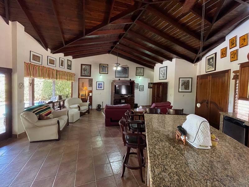 JUST REDUCED 20K! This beautiful house is in one of the best residential areas of Atenas. The house is very private and safe. It is on a one half acre lot and has construction of 300 square meters (over 3,000 square foot). There are 3 bedrooms, 2.5 bathrooms, parking for 3 vehicles, and a swimming pool. It also has a beautiful kitchen with great cabinets and a nice island with granite countertops. The high ceilings keep the house very cool, and has nice views of the yard, and many fruit trees. As an added bonus, the pool has solar heat. Perfectly located just 2 minutes from downtown Atenas, 25 minutes from Juan Santa Maria international airport and 50 minutes from the Pacific coast. Call or message Coldwell Banker Pura Vida Paradise today for more information or a showing.