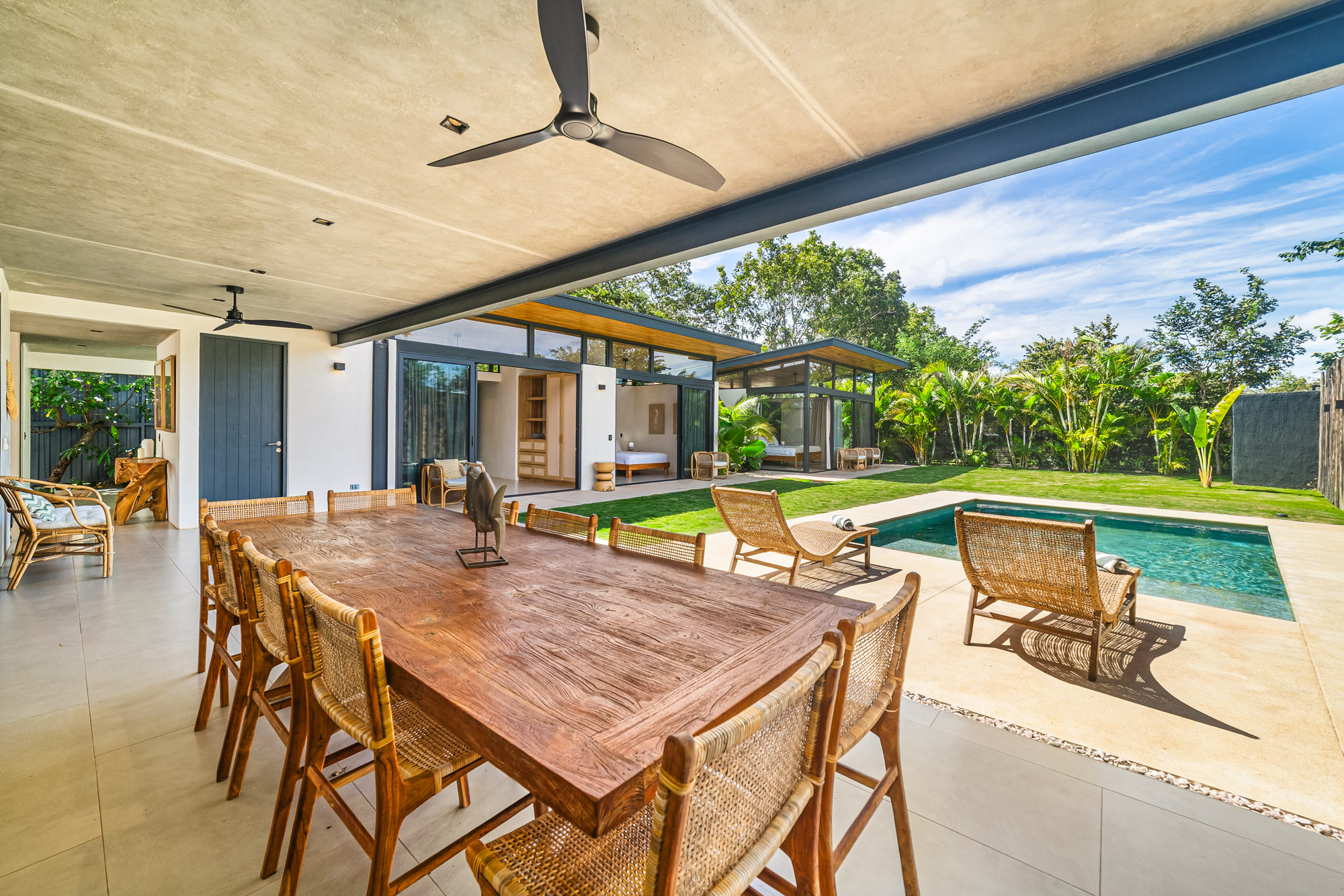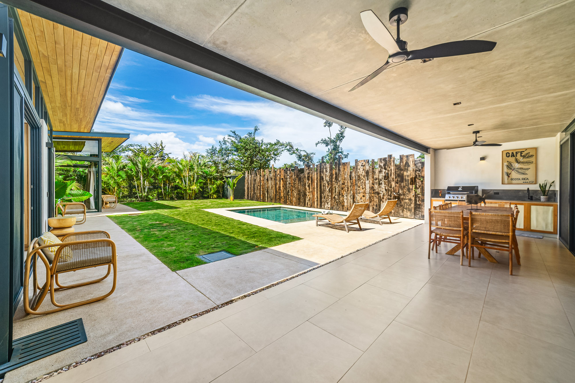 Step outside to your own private oasis, complete with a sparkling pool, expansive terrace, and lush tropical landscaping—ideal for relaxing after a day of exploring Playa Avellanas or hosting sunset gatherings under the stars.