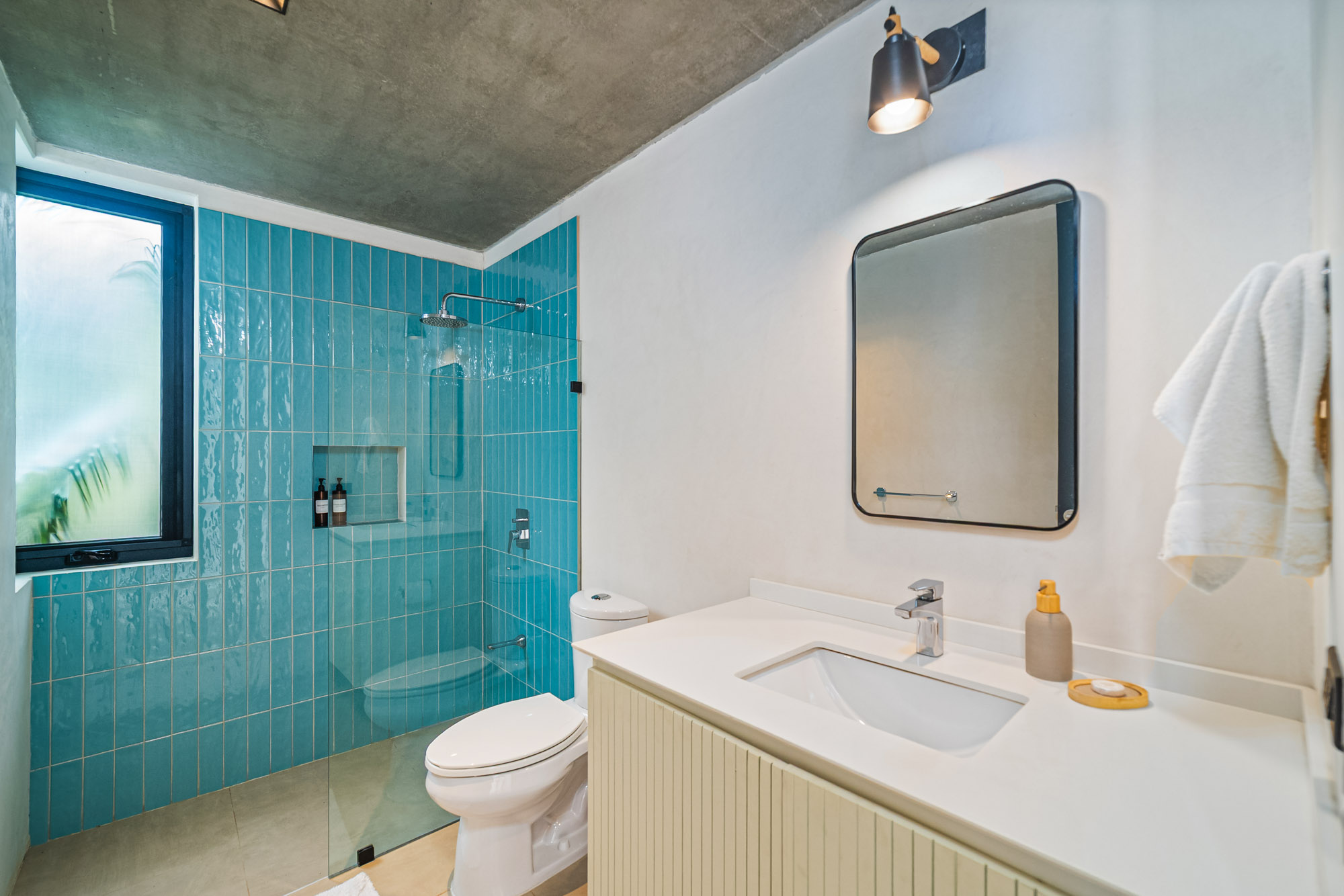 Designed for seamless indoor–outdoor living, the home features floor-to-ceiling glass, an open-concept living area, and high ceilings that invite natural light and ocean breezes. Each of the three bedrooms offers its own ensuite bathroom, providing privacy and comfort for family or guests. The additional half bath adds convenience for entertaining.