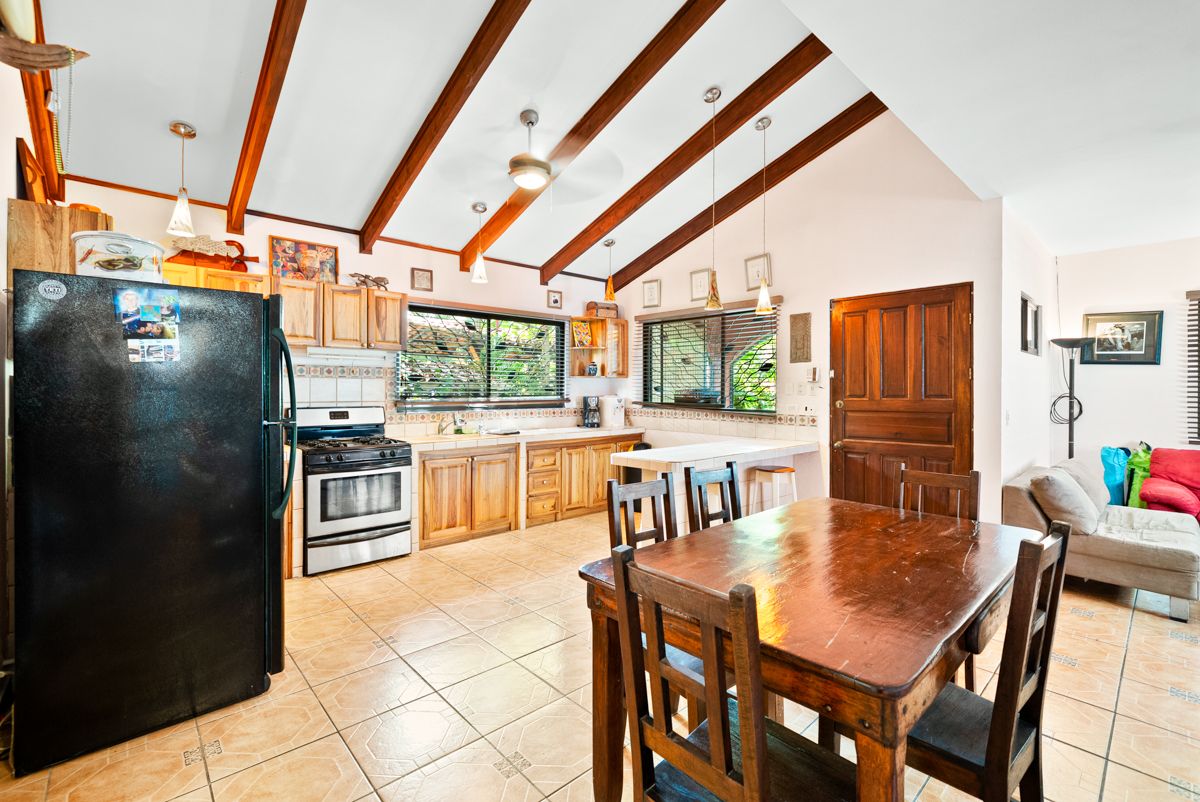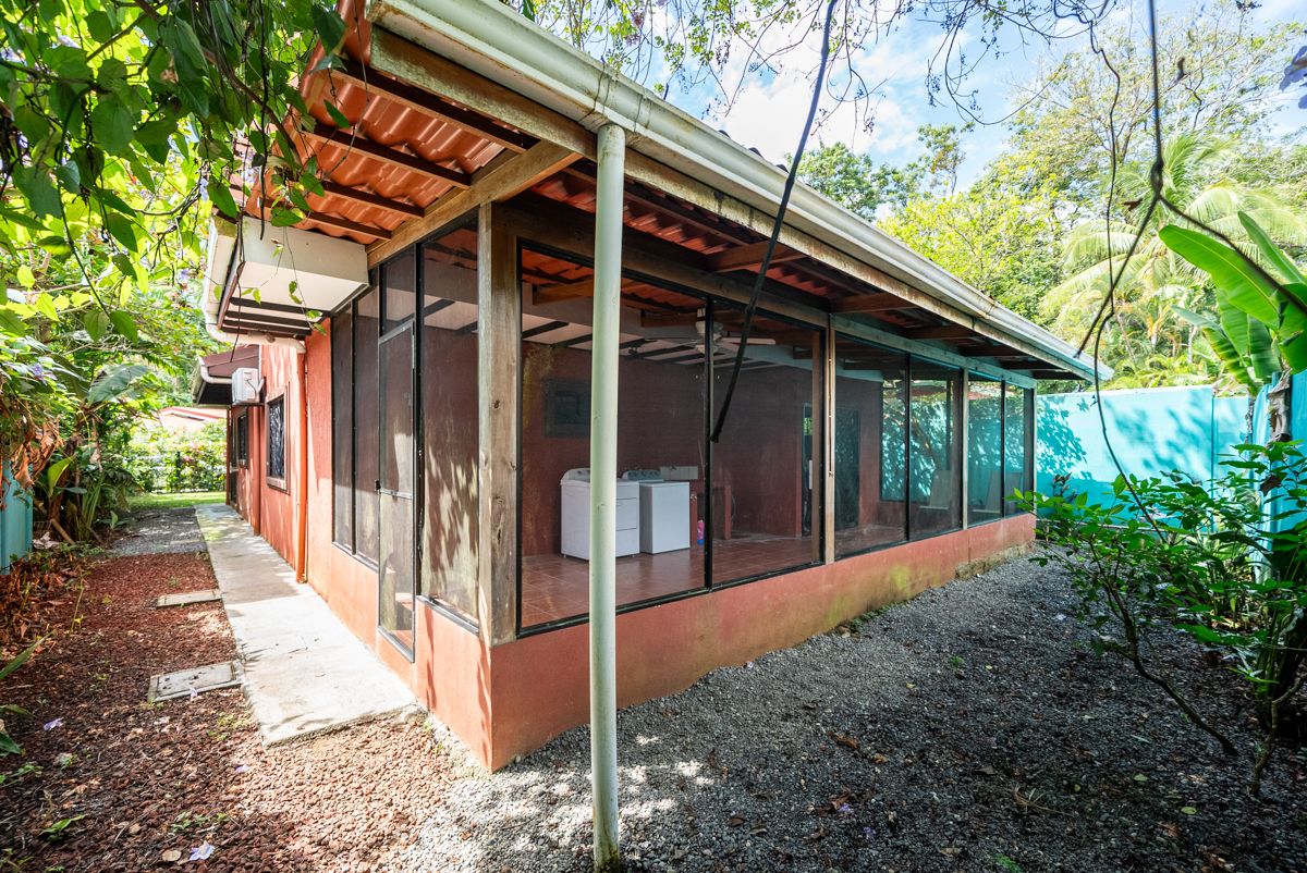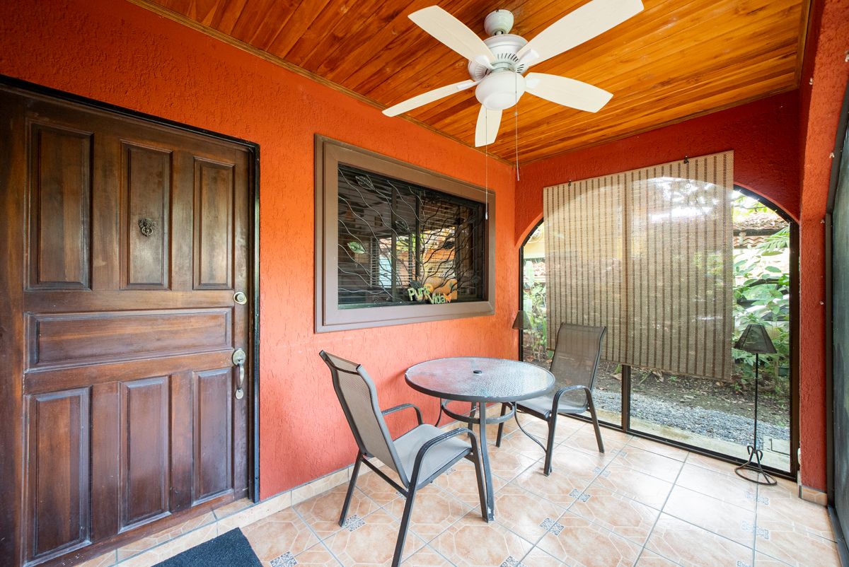 Situated on a lushly landscaped 335 m² lot, the home features a covered carport and inviting front porch, along with a large screened back porch overlooking the yard—perfect for enjoying Costa Rica’s warm breezes, wildlife, and tropical surroundings year-round.