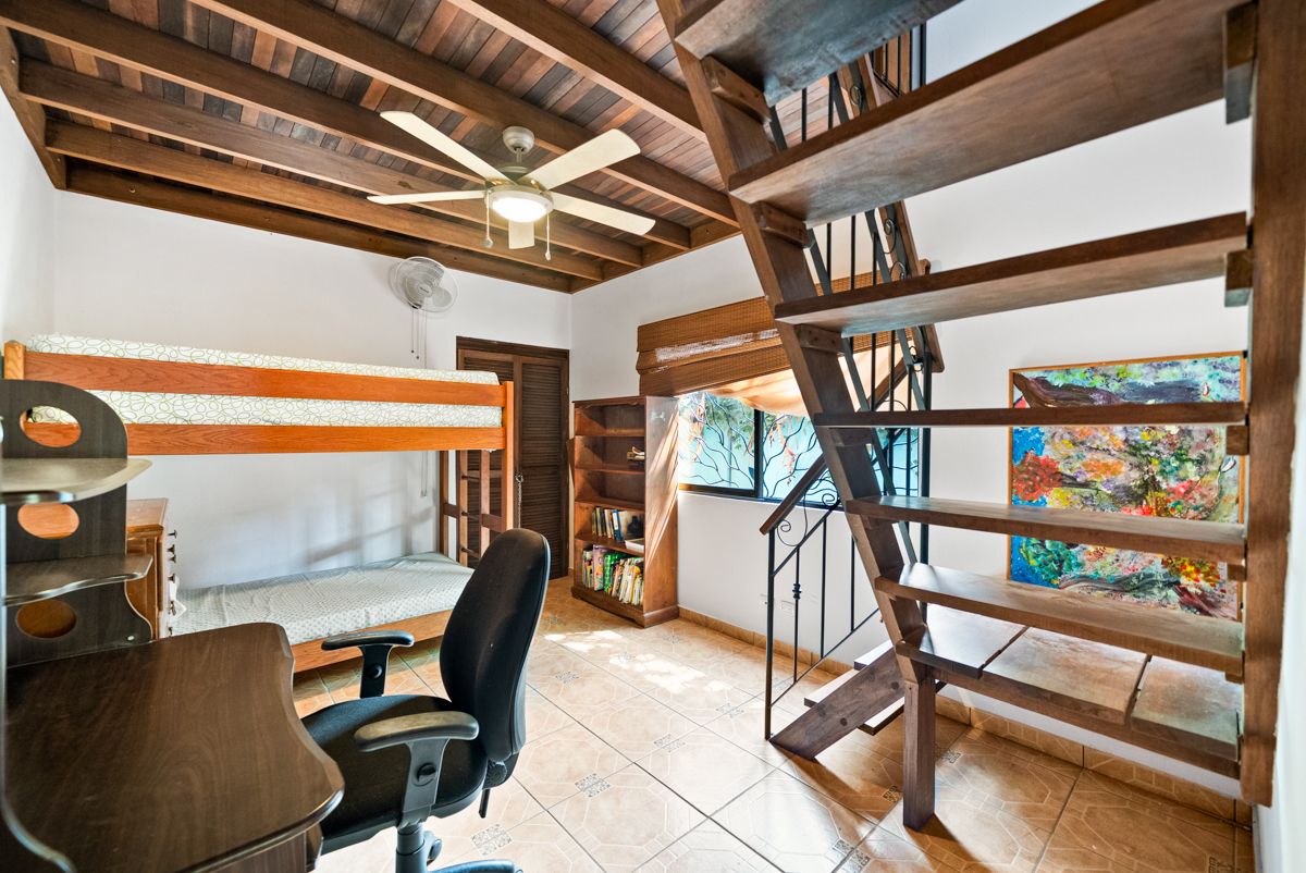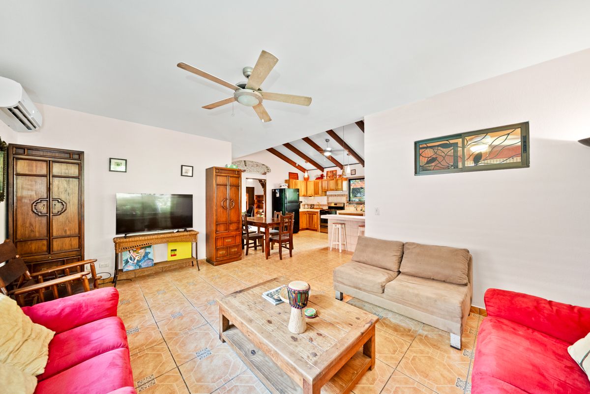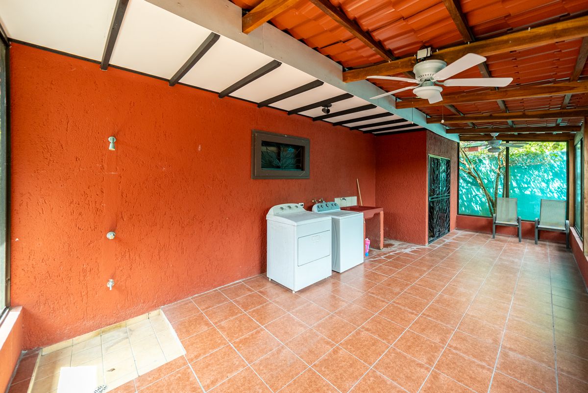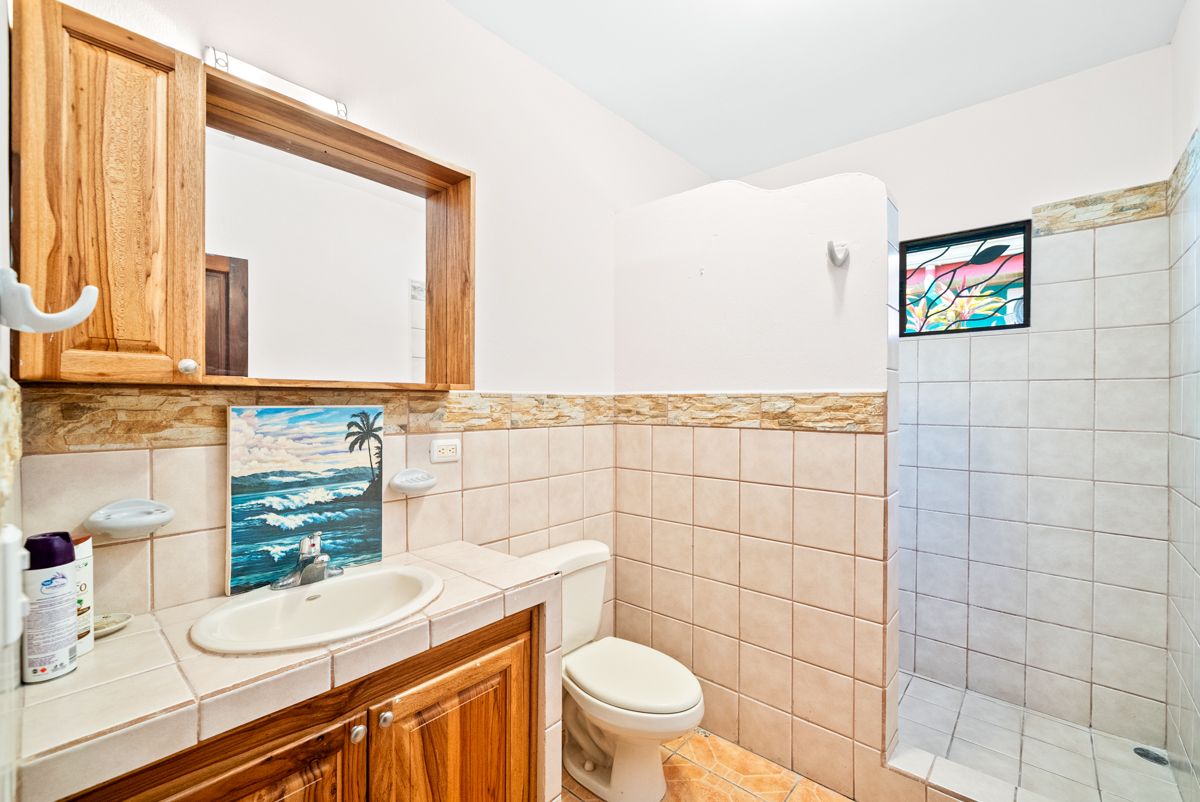 Situated on a lushly landscaped 335 m² lot, the home features a covered carport and inviting front porch, along with a large screened back porch overlooking the yard—perfect for enjoying Costa Rica’s warm breezes, wildlife, and tropical surroundings year-round.