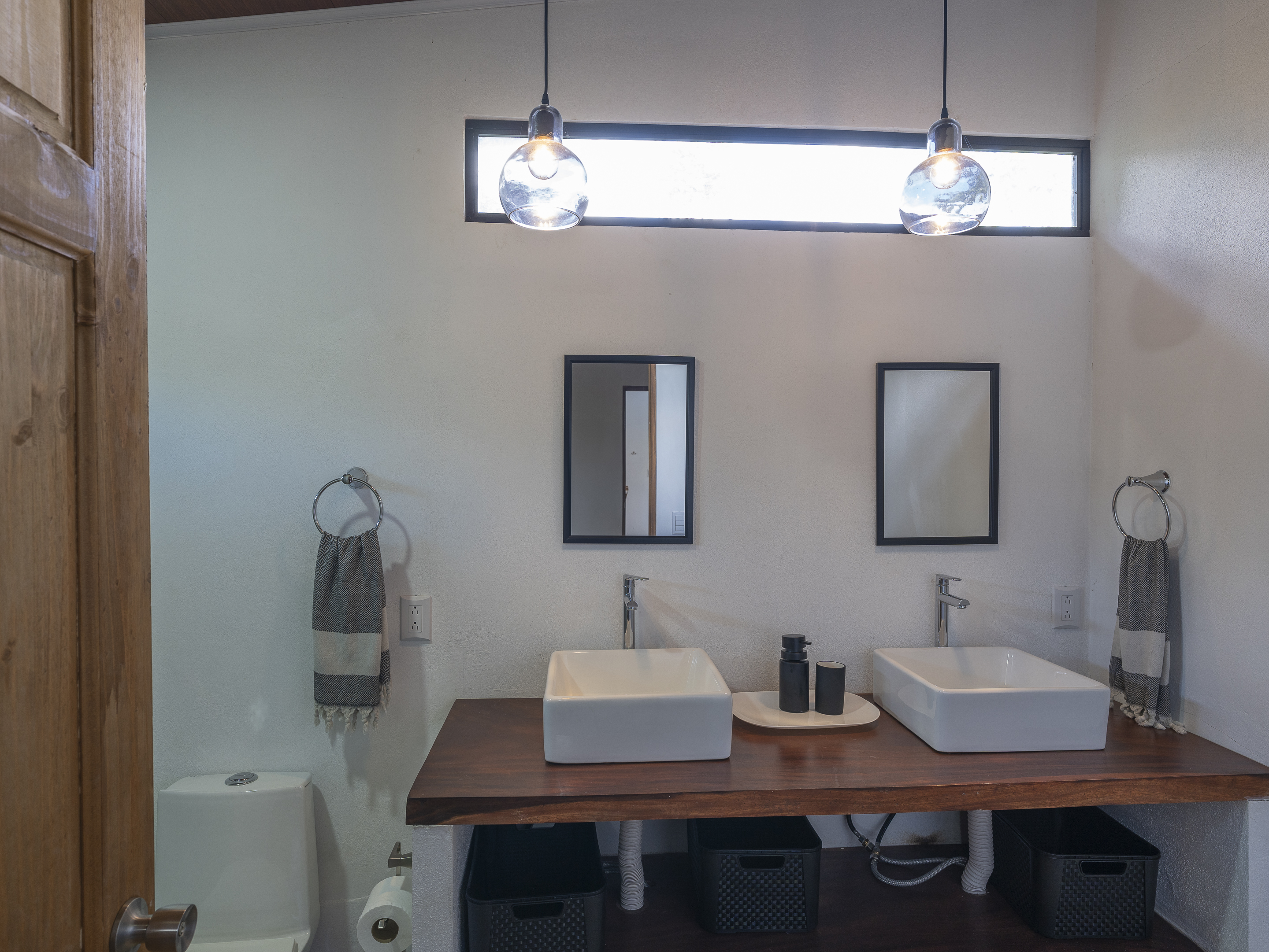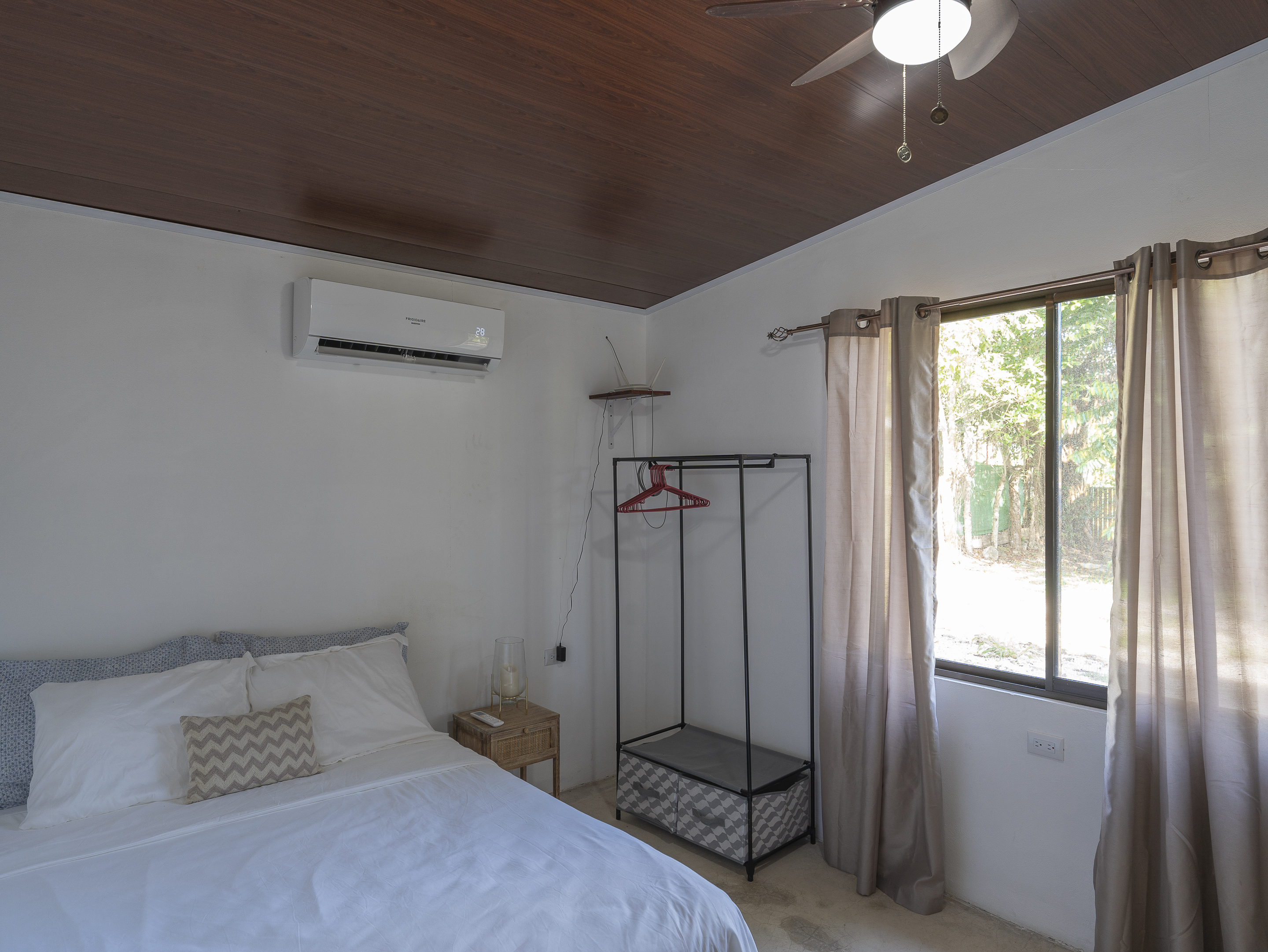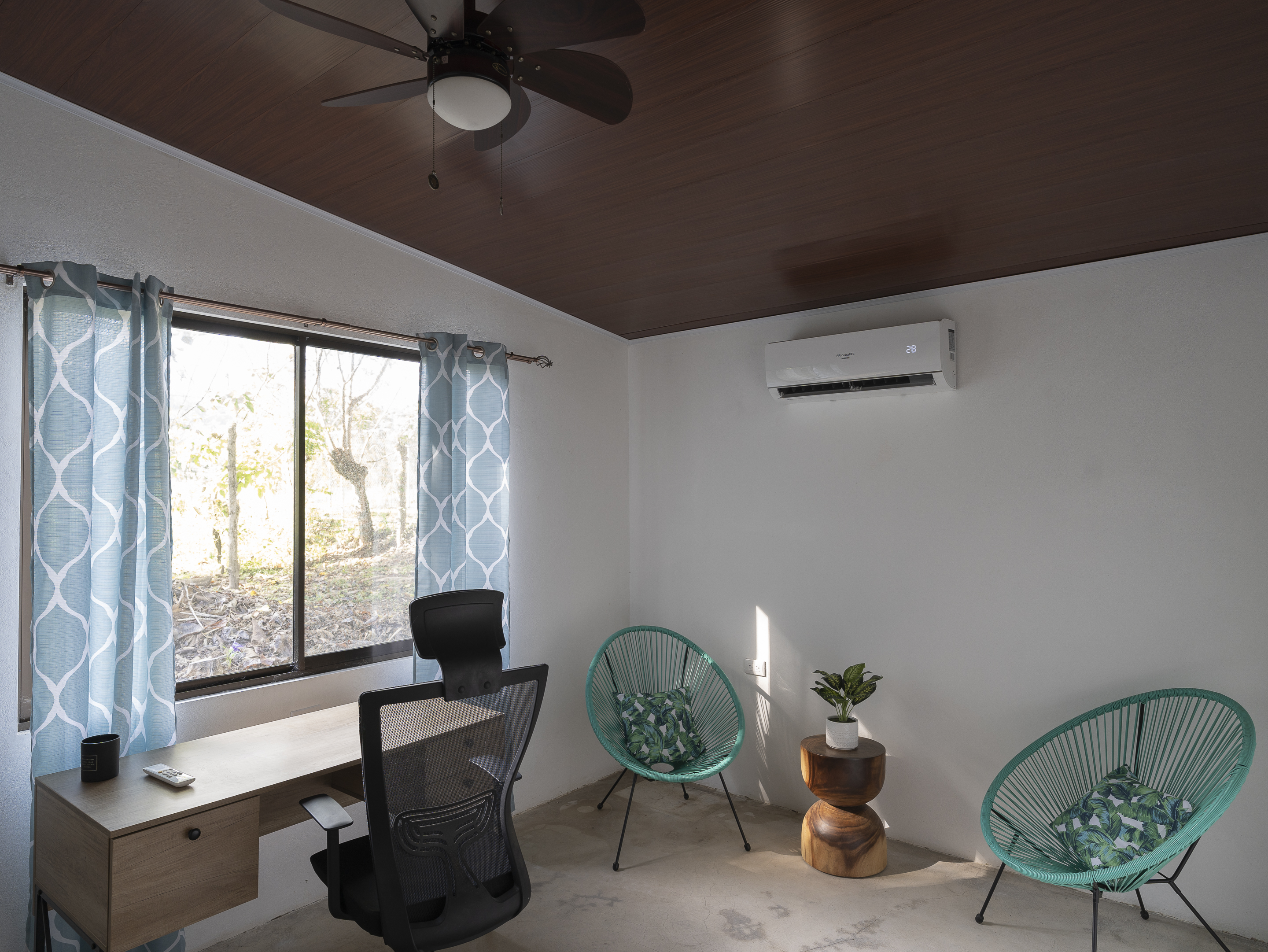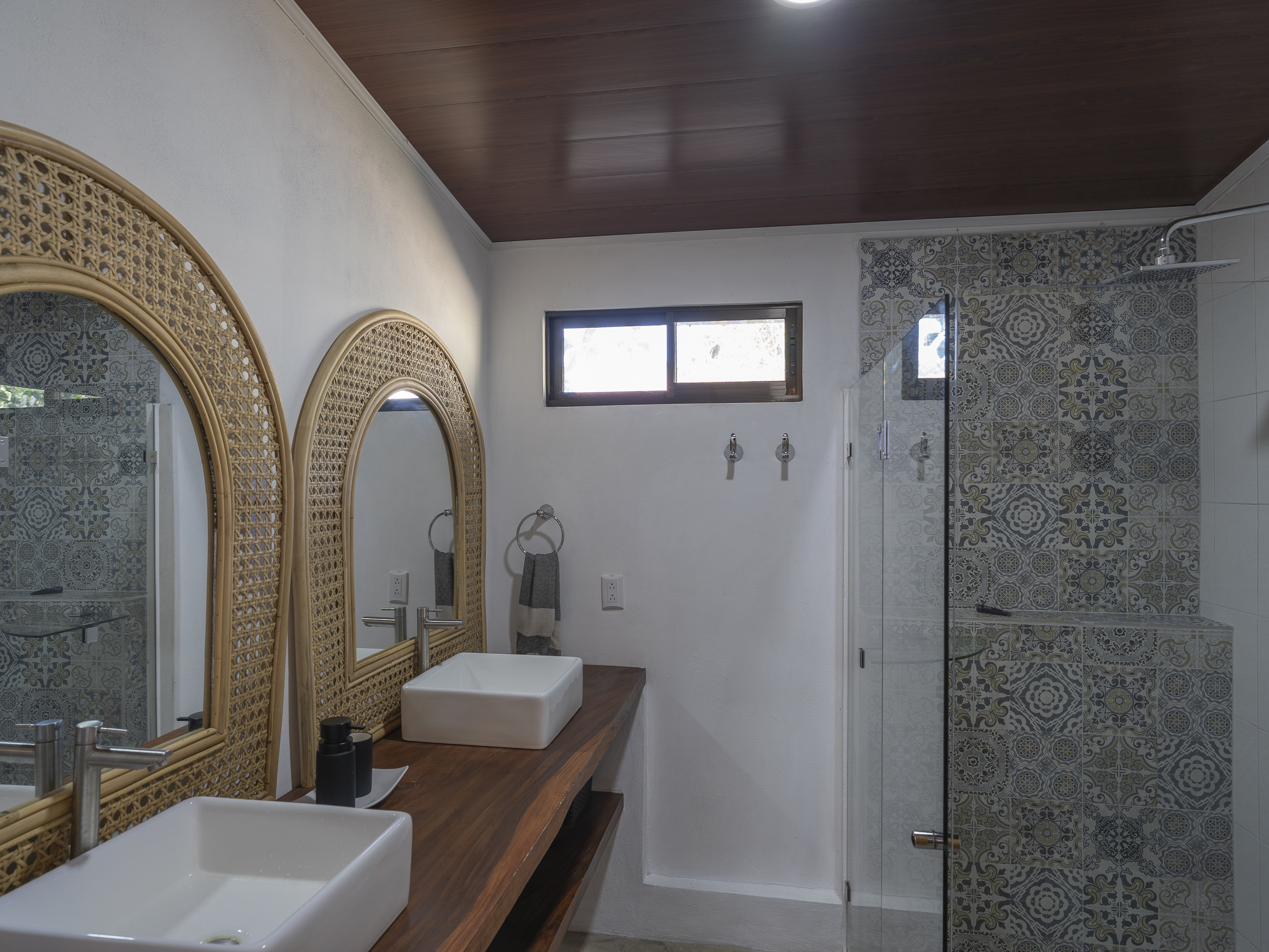 Casa Estrella features 3 bedrooms and 2 bathrooms, with air conditioning in every room to keep you comfortable year-round. The house is equipped with brand-new, modern appliances, including a front-loading washer and dryer. The covered outdoor dining area allows for seamless indoor/outdoor living, while the tall ceilings with skylights let you enjoy stargazing at night. Additional highlights include Bali light fixtures, a double shower in the master bathroom, and double sinks in the bathrooms for added convenience.
