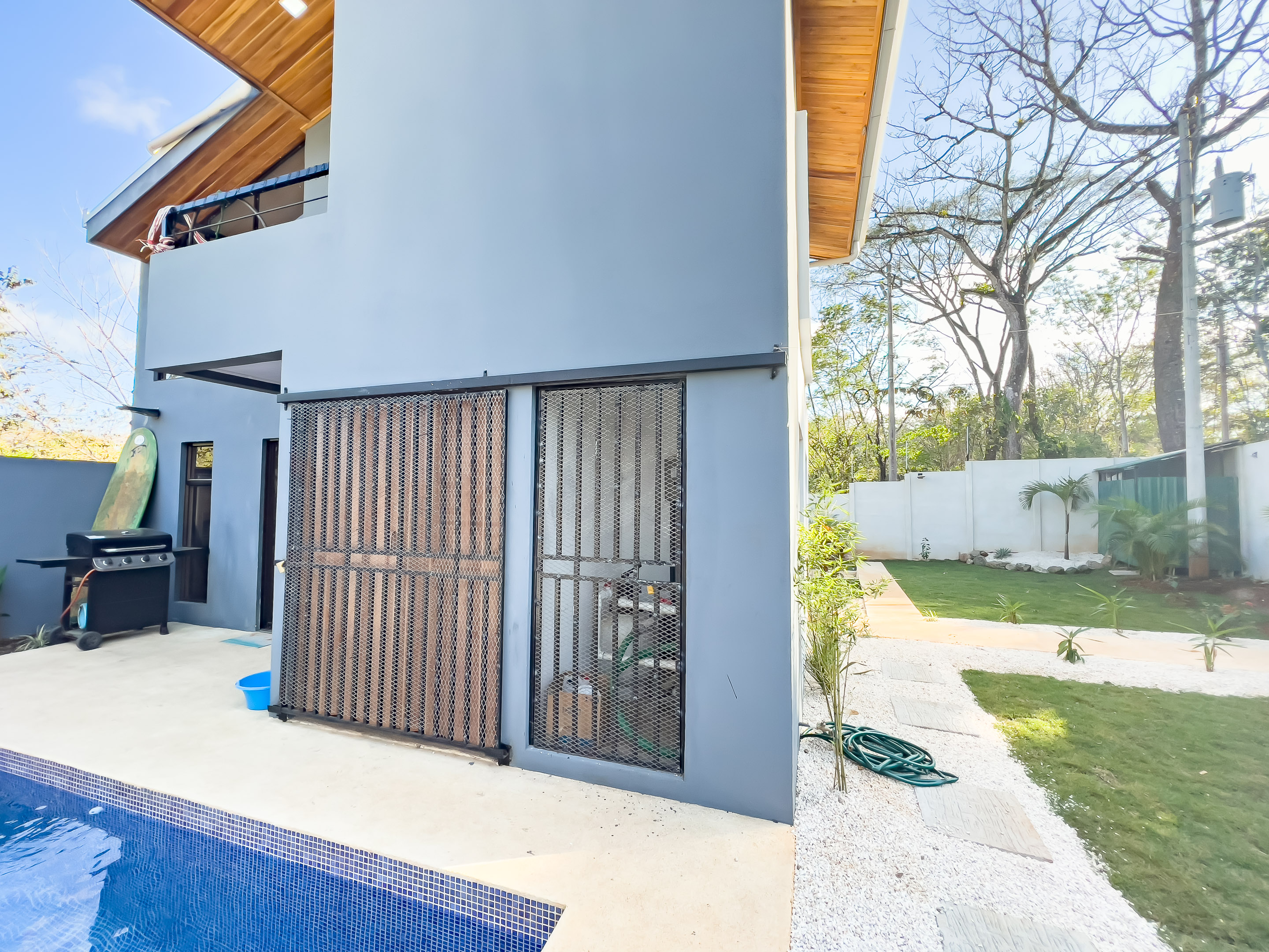 The lot of Turnkey 3-Bedroom Home with a Pool measures a total of 375 square meters. With enough room to park several cars and enjoy a nice yard. The entire property is fenced. The property is connected to ICE electricity and Internet, and ASADA water.