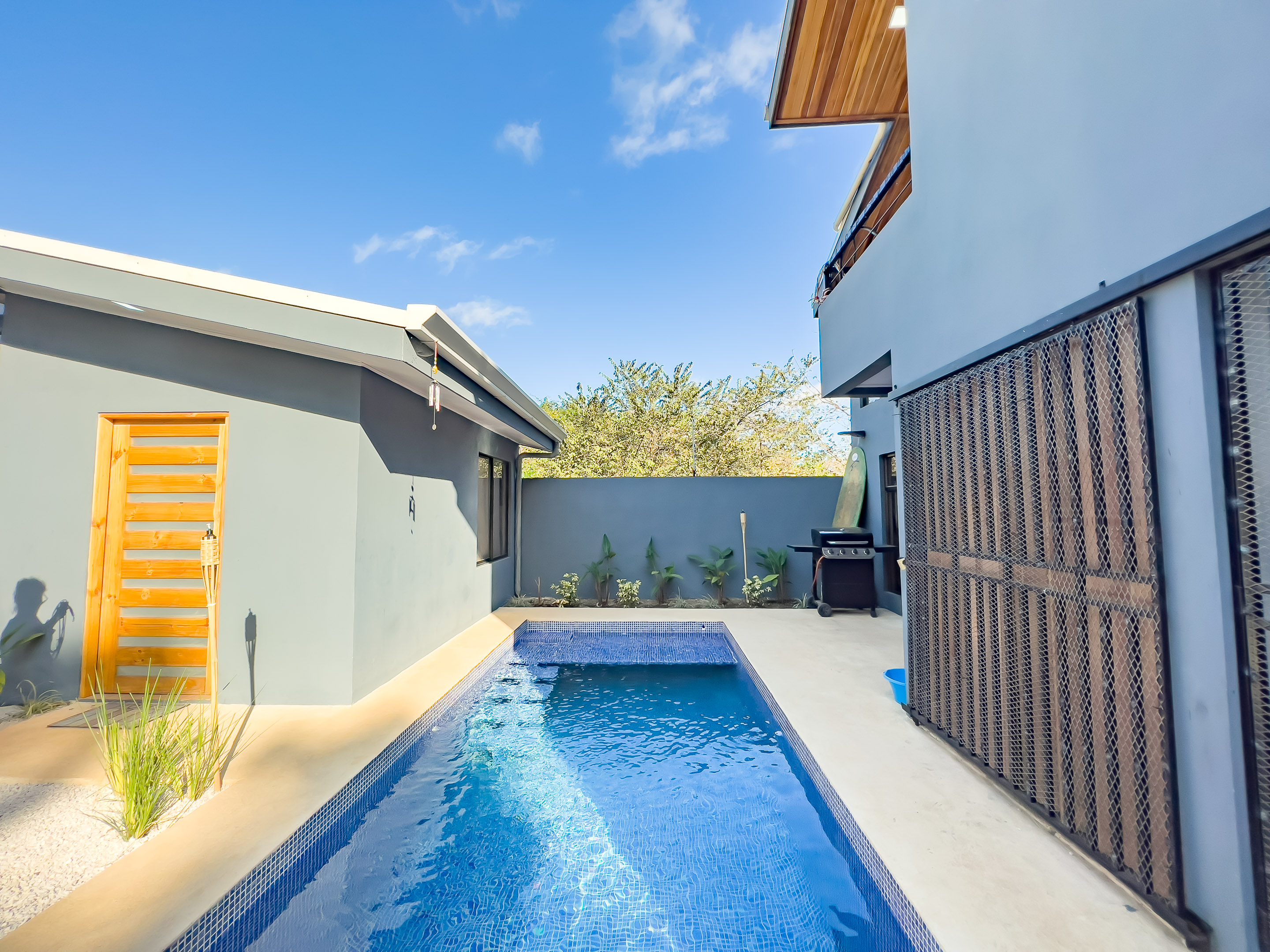 This home is approximately 135 square meters. By the pool, there is a guest room completely independent of the main house. The property is located down a quiet street with a few neighbors and it’s fully turnkey.
