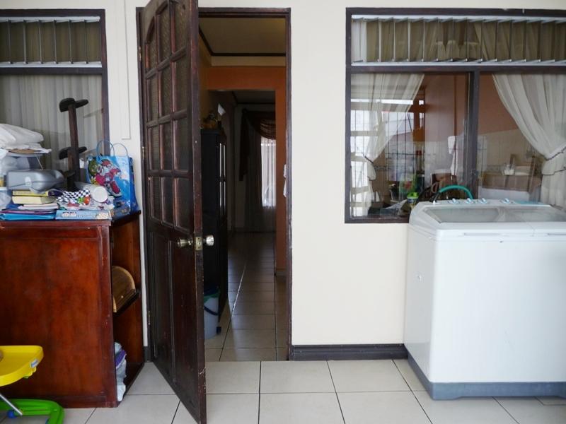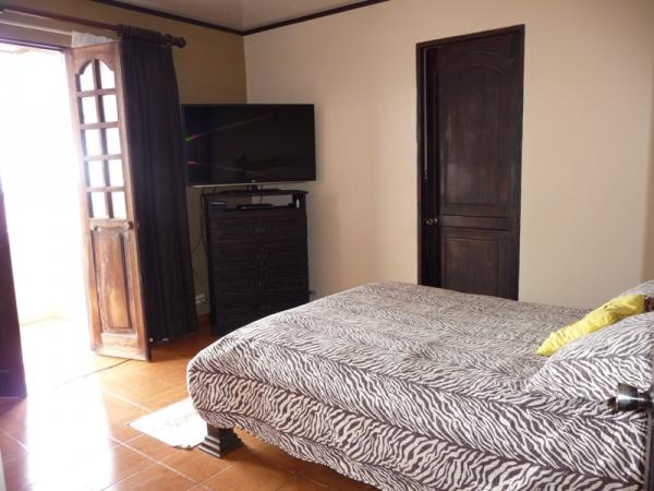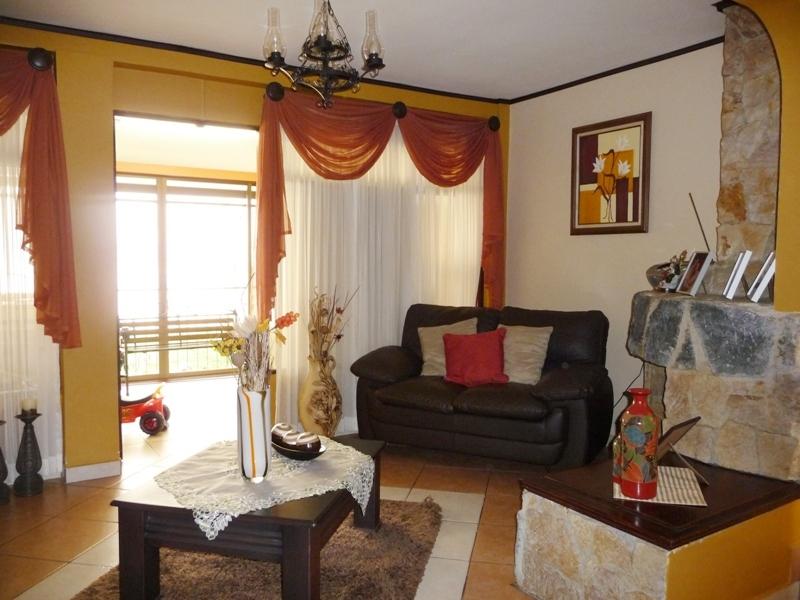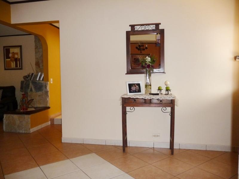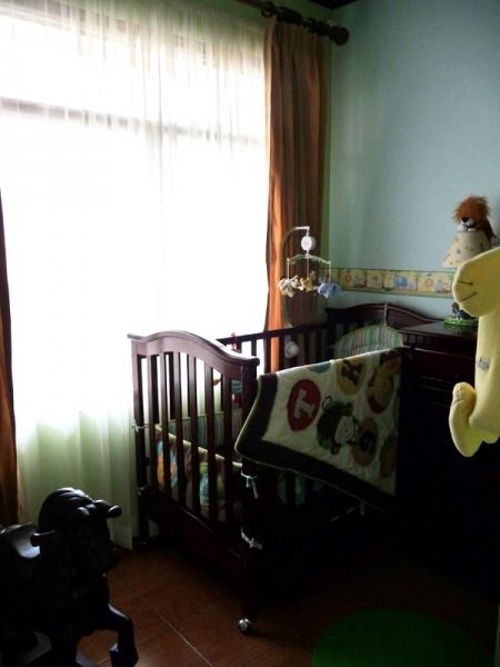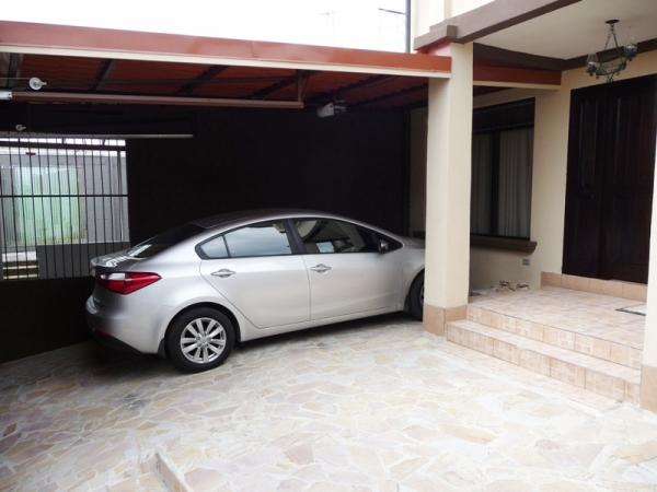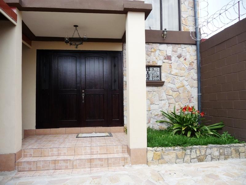 Located in a good residential area with 24/7 security with street guards. First Floor: double-leaf wooden entrance door with stone veneer on the outside, hall, living room with fireplace connected to a covered and closed terrace, large dining room, kitchen, laundry area, rear garden, covered garage with electric gate. Second Floor: desk space, 3 bedrooms, the main one with a large balcony, walk-in closet and full bathroom with tub, 2 secondary bedrooms with closet sharing a full bathroom, one of the bedrooms is small. Nice facade in front of the property with nice garden. Security fee 20,000 colones per month, pets are accepted.