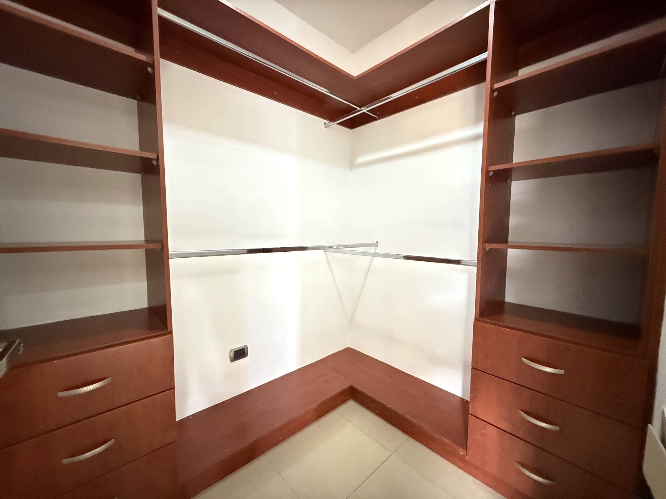 - 3 habitaciones – principal con baño privado, walk-in closet y closet adicional de madera