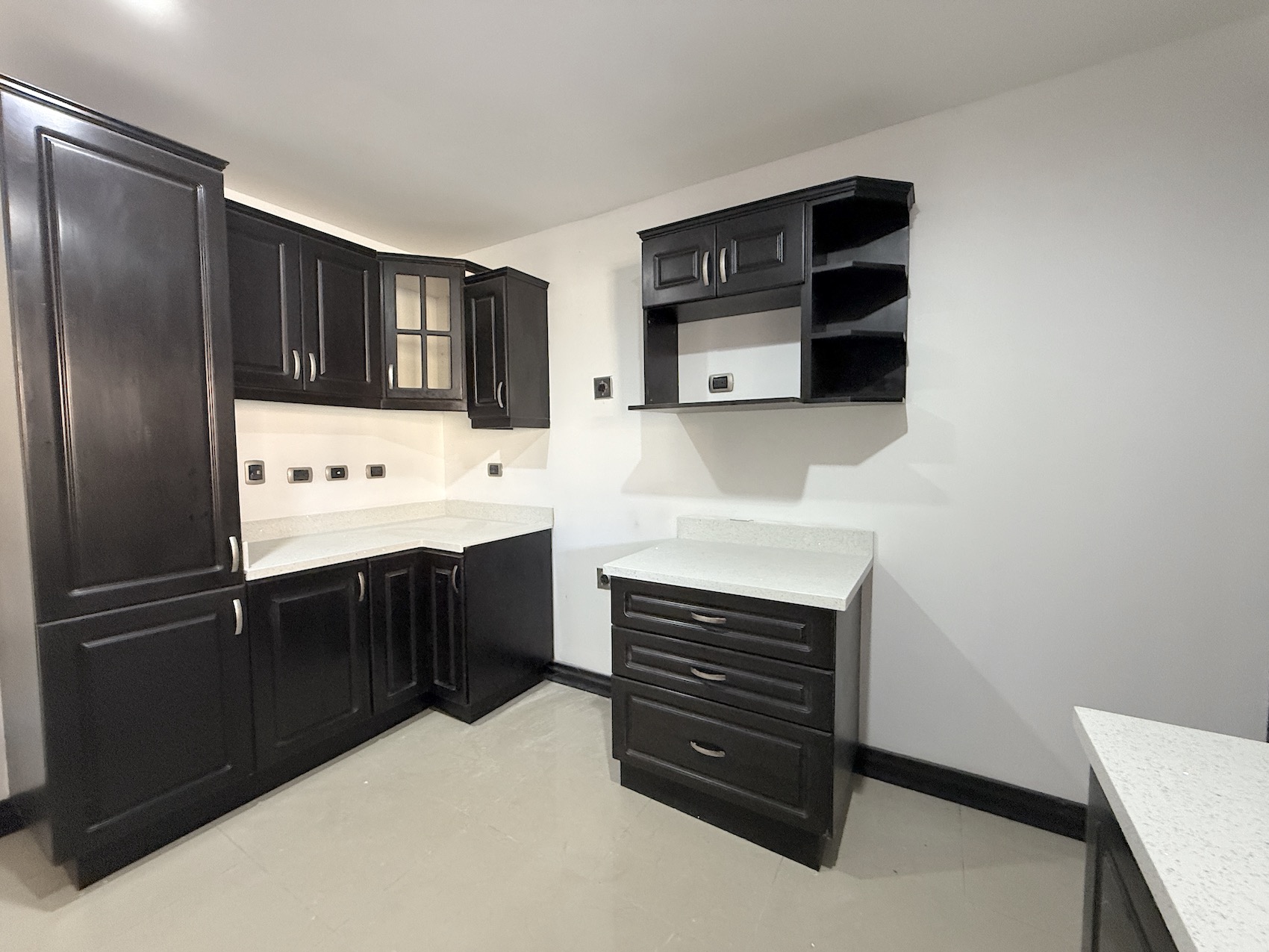 - Cocina cerrada con nuevo Sobre de Cuarzo blanco