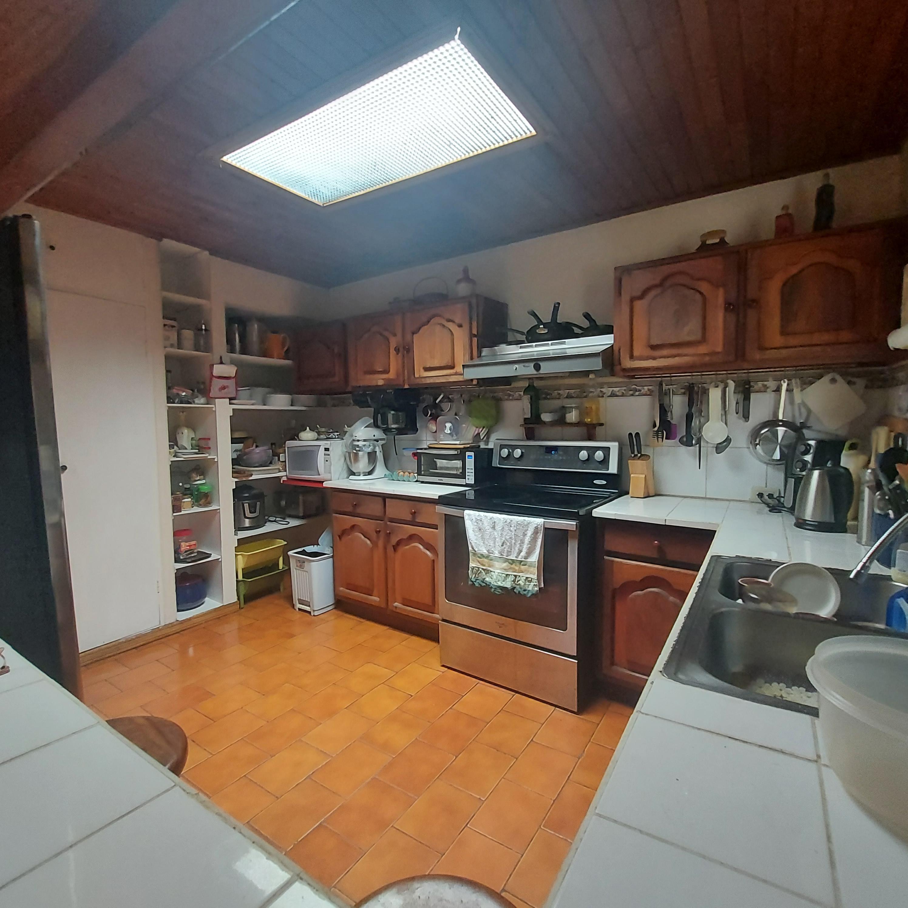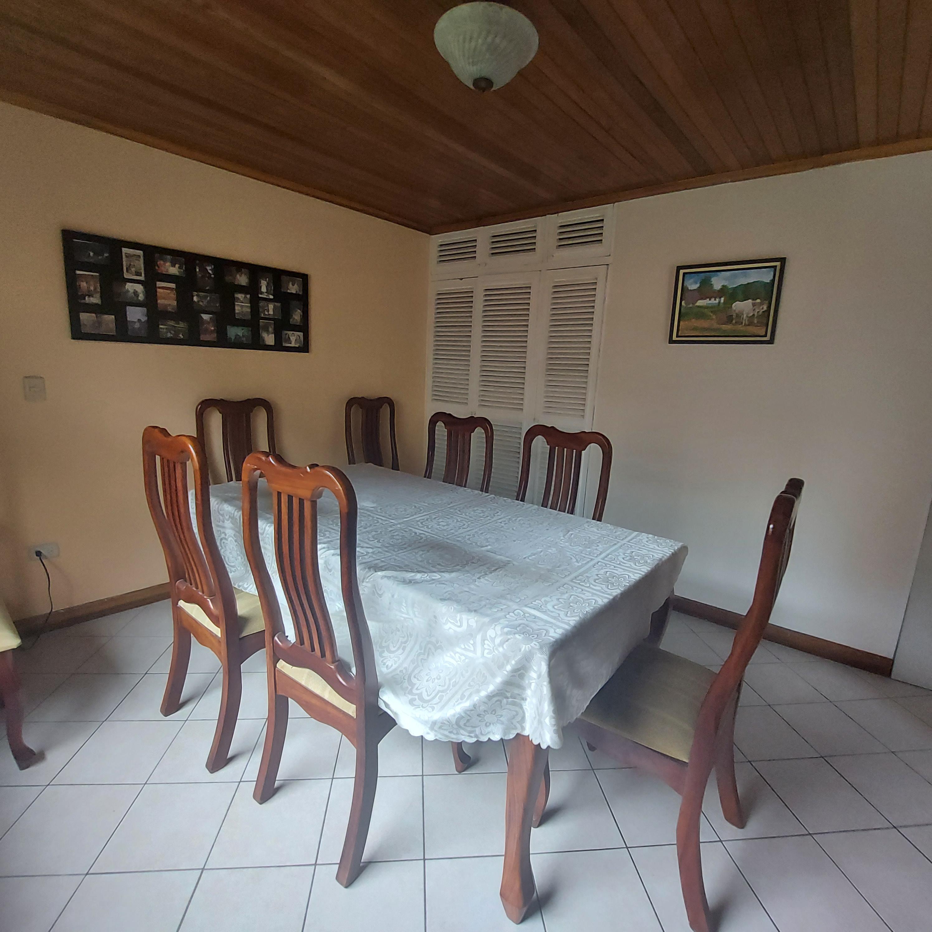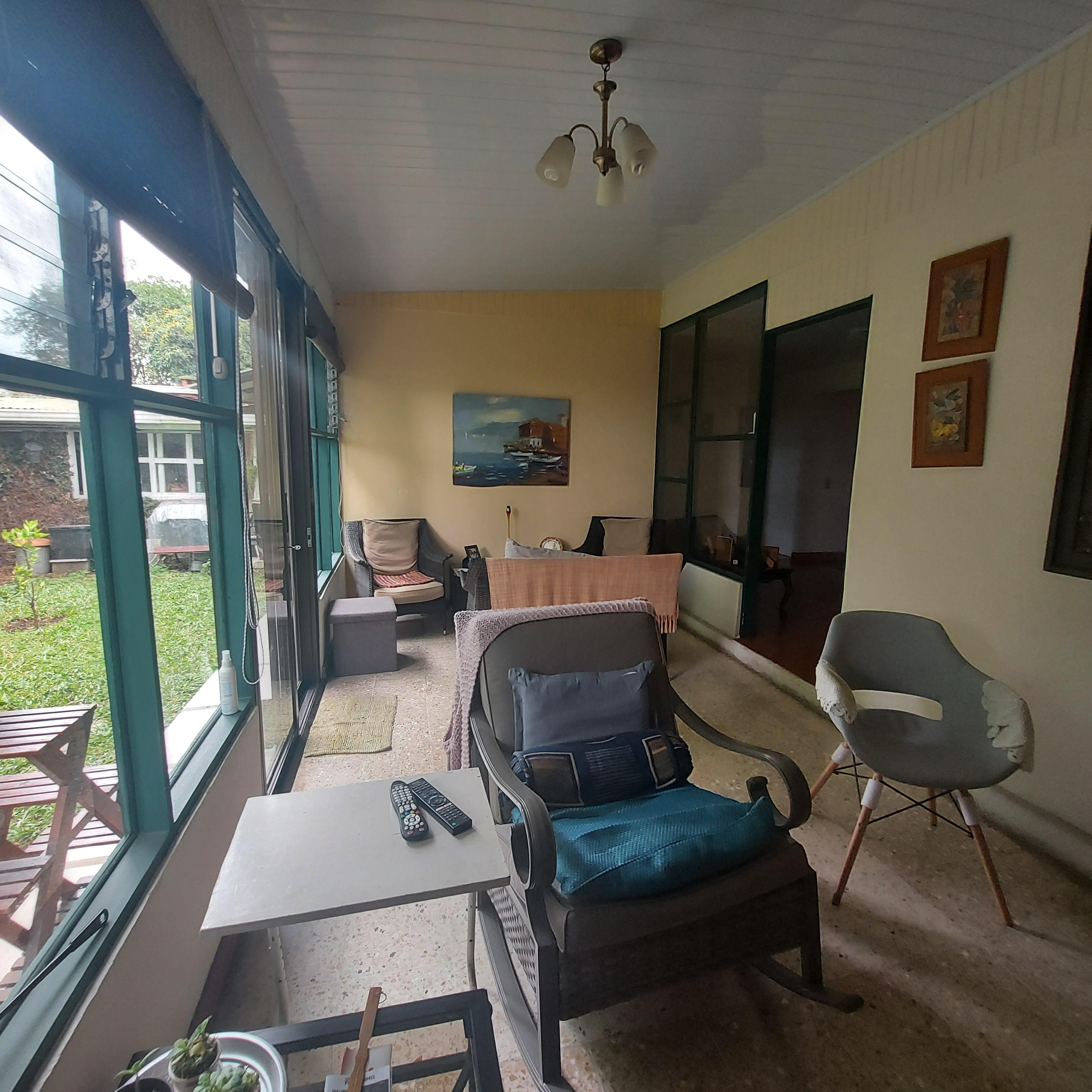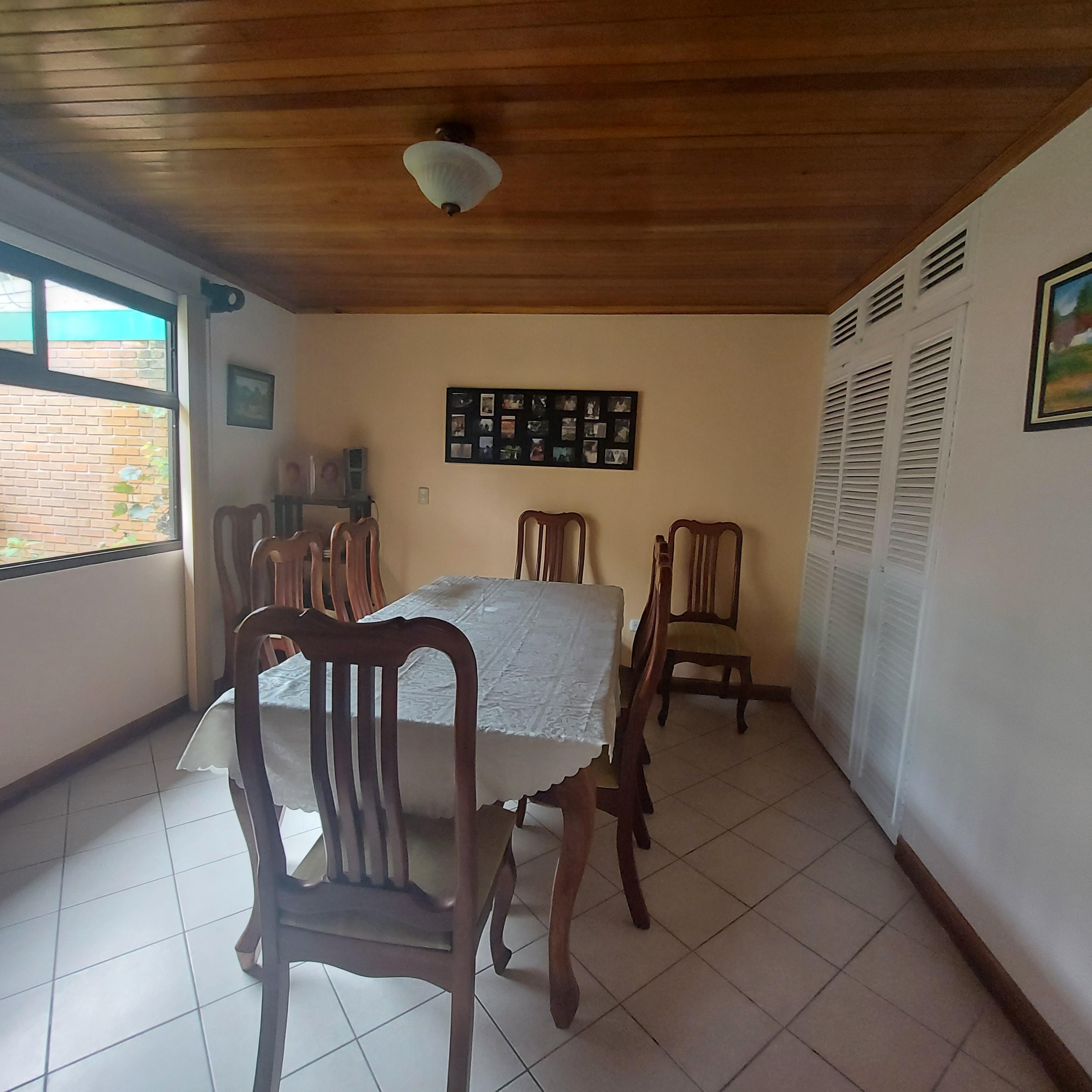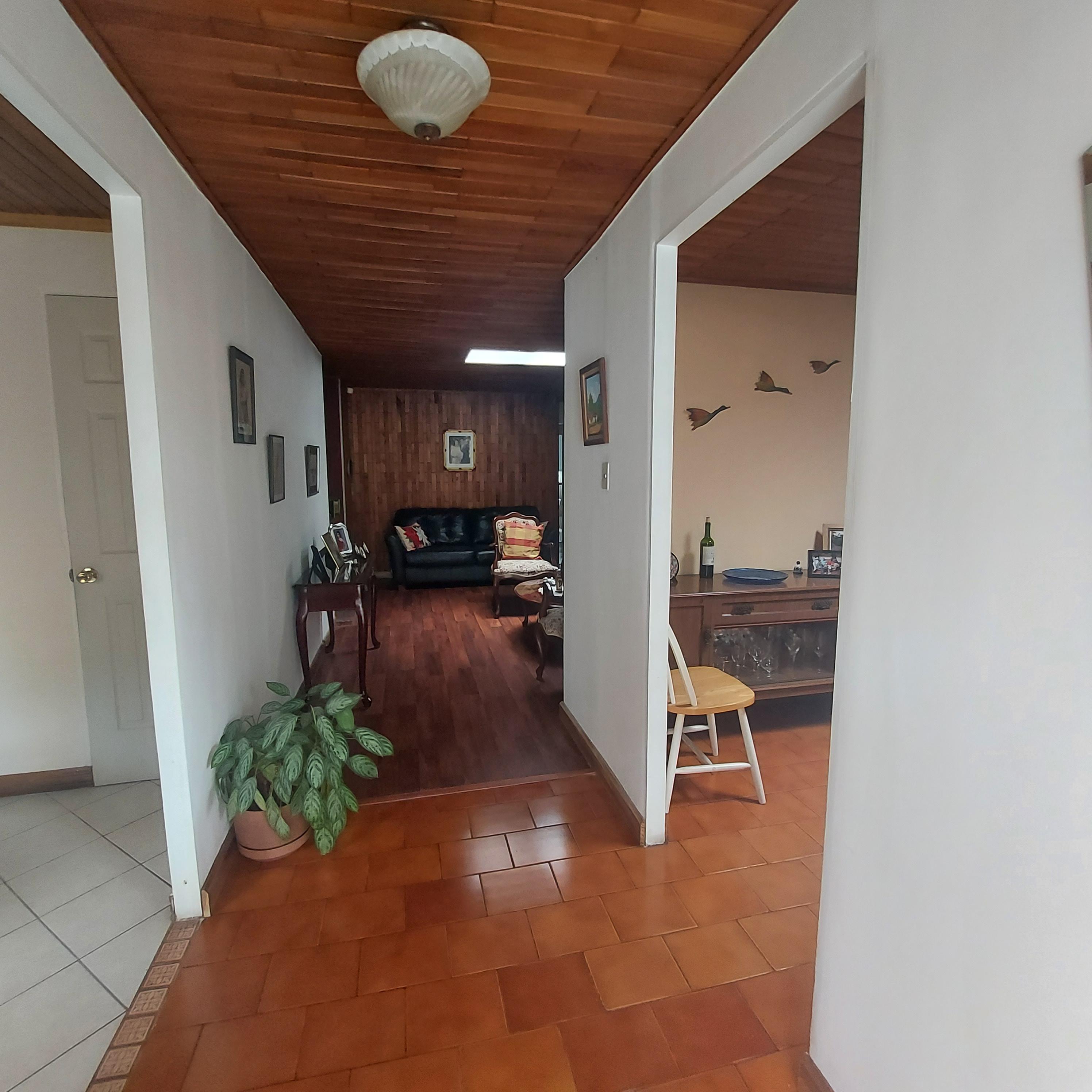 Casa de Una Planta en Curridabat, La Colina The house has a large living room with fireplace, dining room, dining room, kitchen with breakfast bar, Cristobal wood furniture, office, guest bathroom. TV room or library, terrace overlooking the large garden, cellar. Battery area. Two secondary rooms with closet sharing a full bathroom. Large master bedroom with walking closet and full bathroom with internal garden. The house is all concrete, the ceilings are teak, decorative teak walls. There is a street guard with a monthly payment of 30,000, located in a very quiet and safe residential area. Very close to the main shops, educational centers and exits to San José and its surroundings.