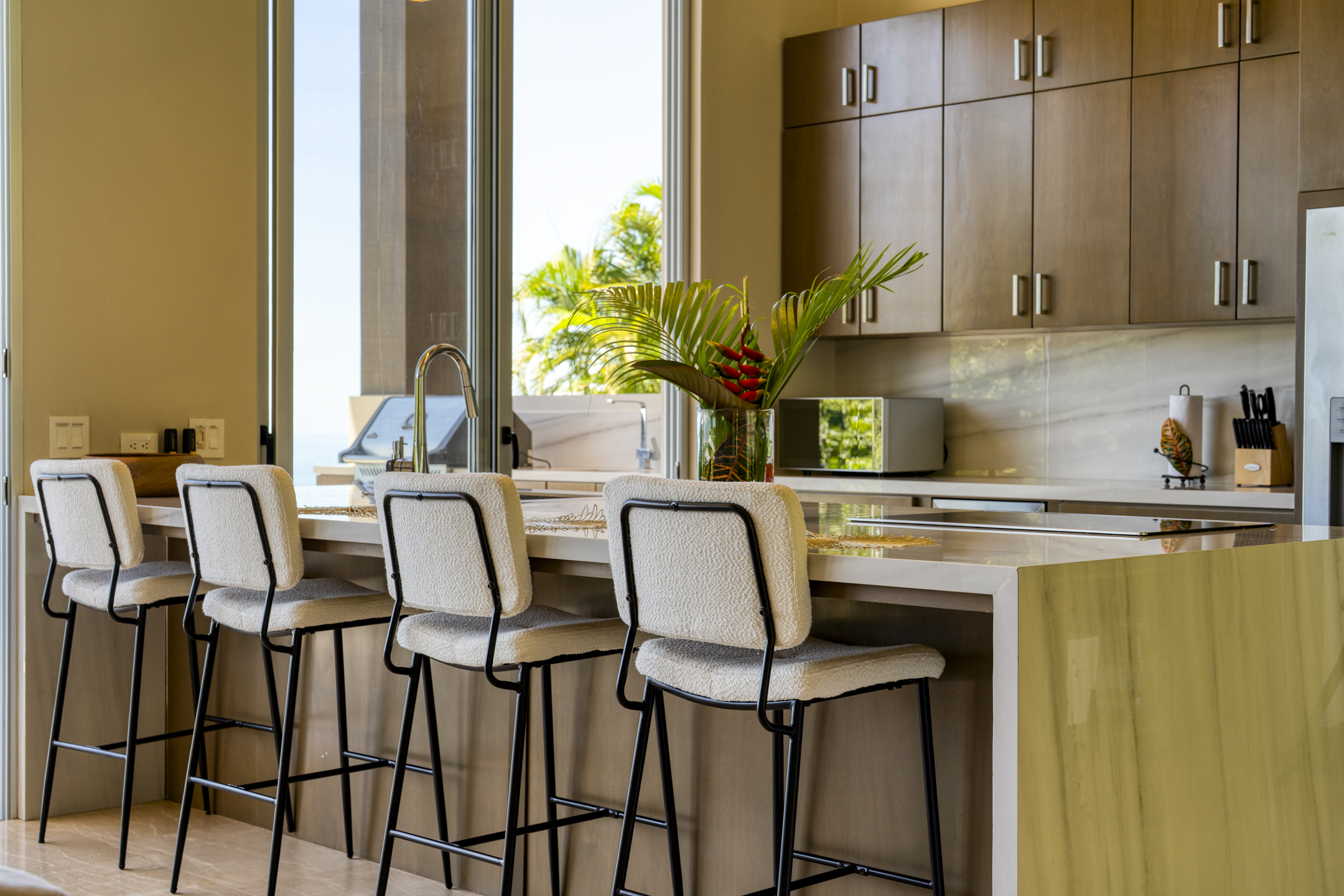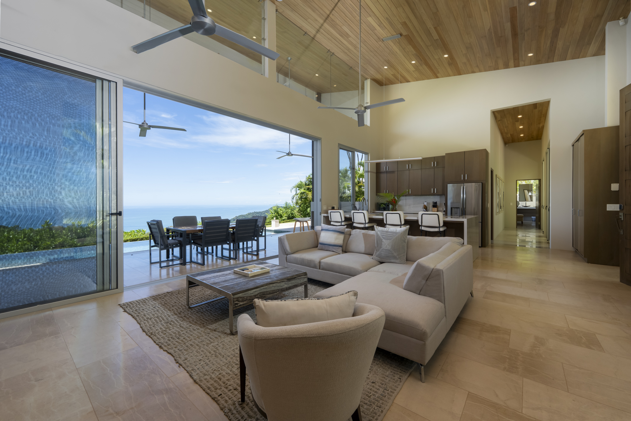 Set at elevation to capture year-round sunsets and the lush vibrancy of the jungle canopy, the home is intentionally positioned to immerse you in nature without ever leaving the comfort of refined modern living. Floor-to-ceiling glass, foldaway doors, and soaring ceilings create a fluid indoor-outdoor experience, where light, breeze, and beauty flow freely throughout every space.