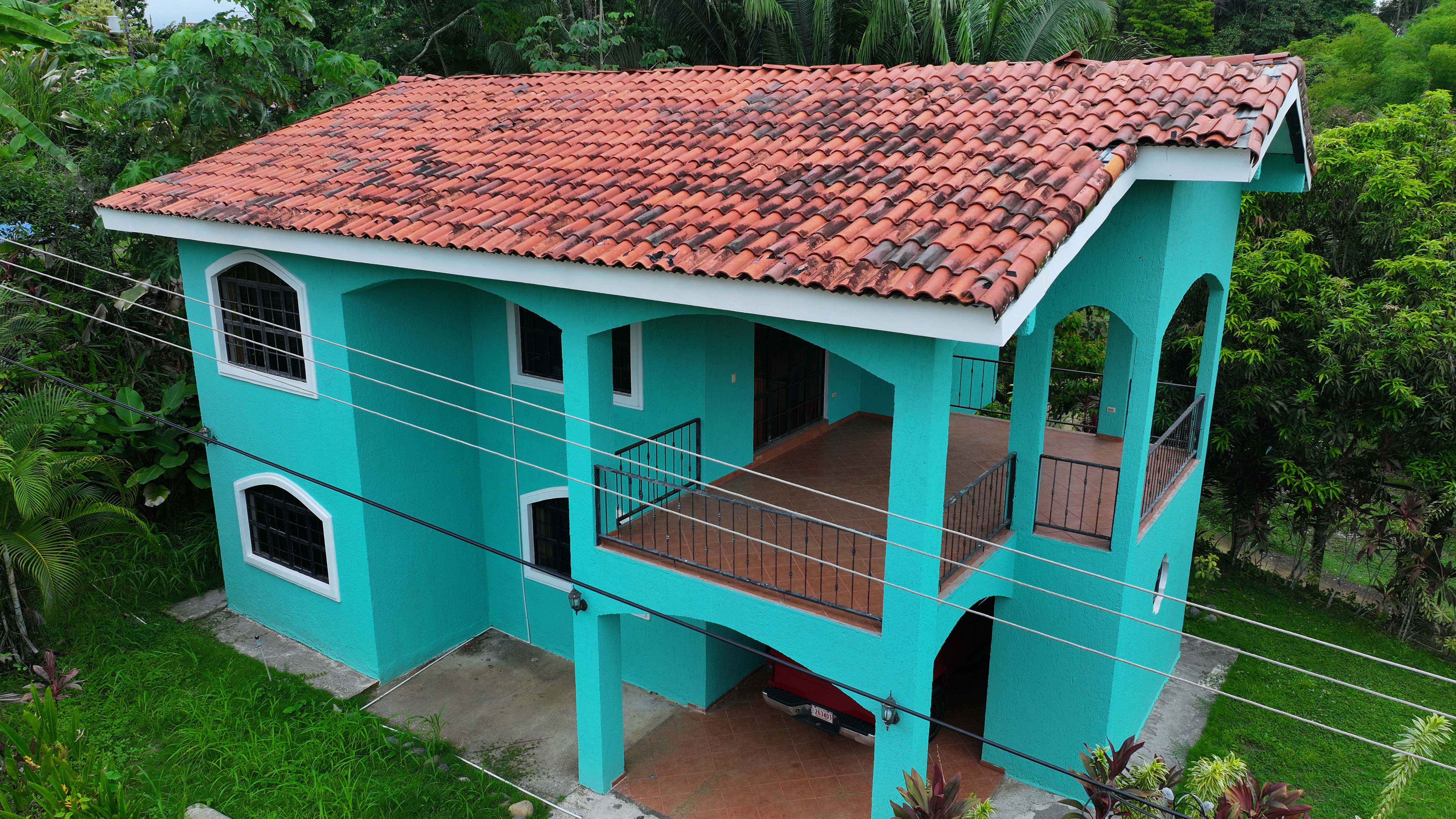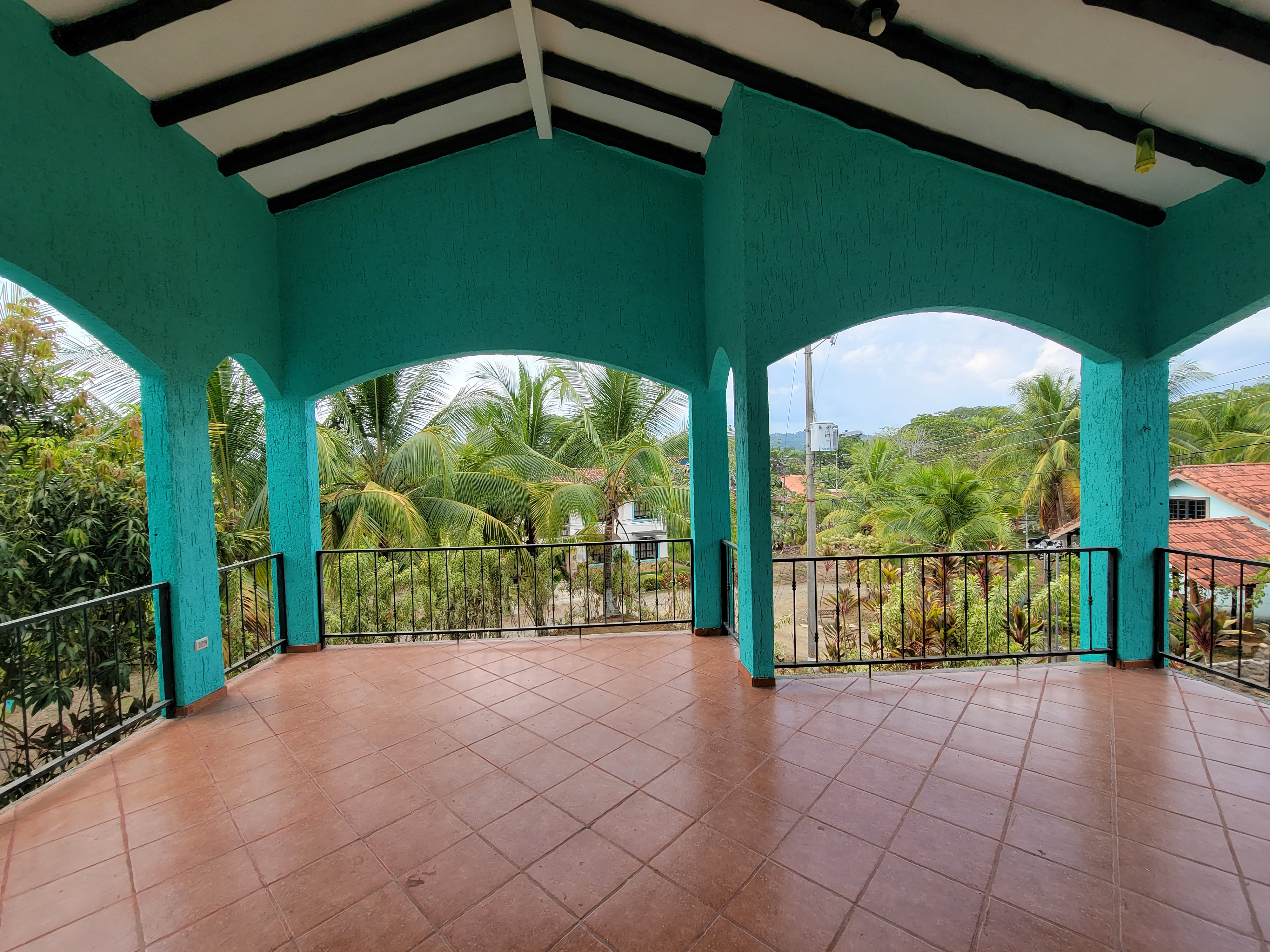 This spacious home features a large kitchen with granite countertops, two master bedrooms each with en suite bath upstairs, another guest bedroom and bath downstairs, a laundry room, carport, storage bodega, two upper balconies, including a huge entertainment deck upstairs where you can sit and enjoy tropical birds flying by and the beautiful mountain and ocean breezes as the community sits just a short distance from the shoreline with rainforested mountains surrounding it in the near distance.