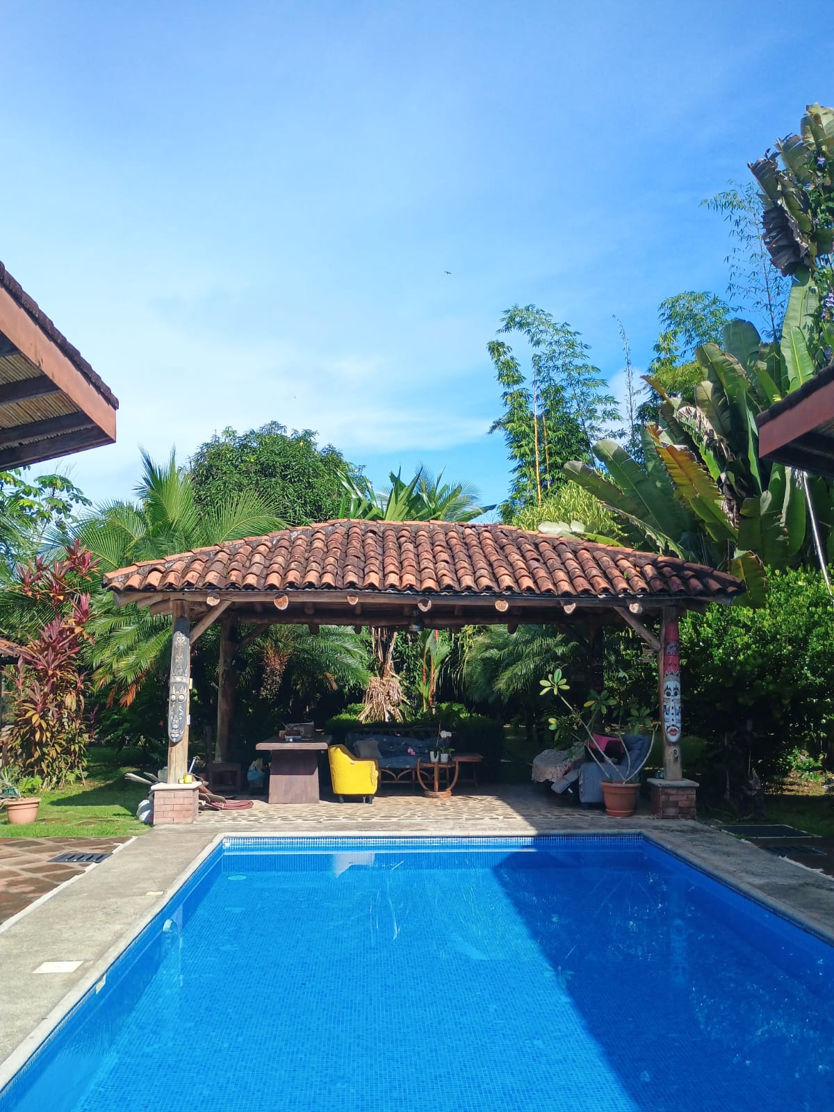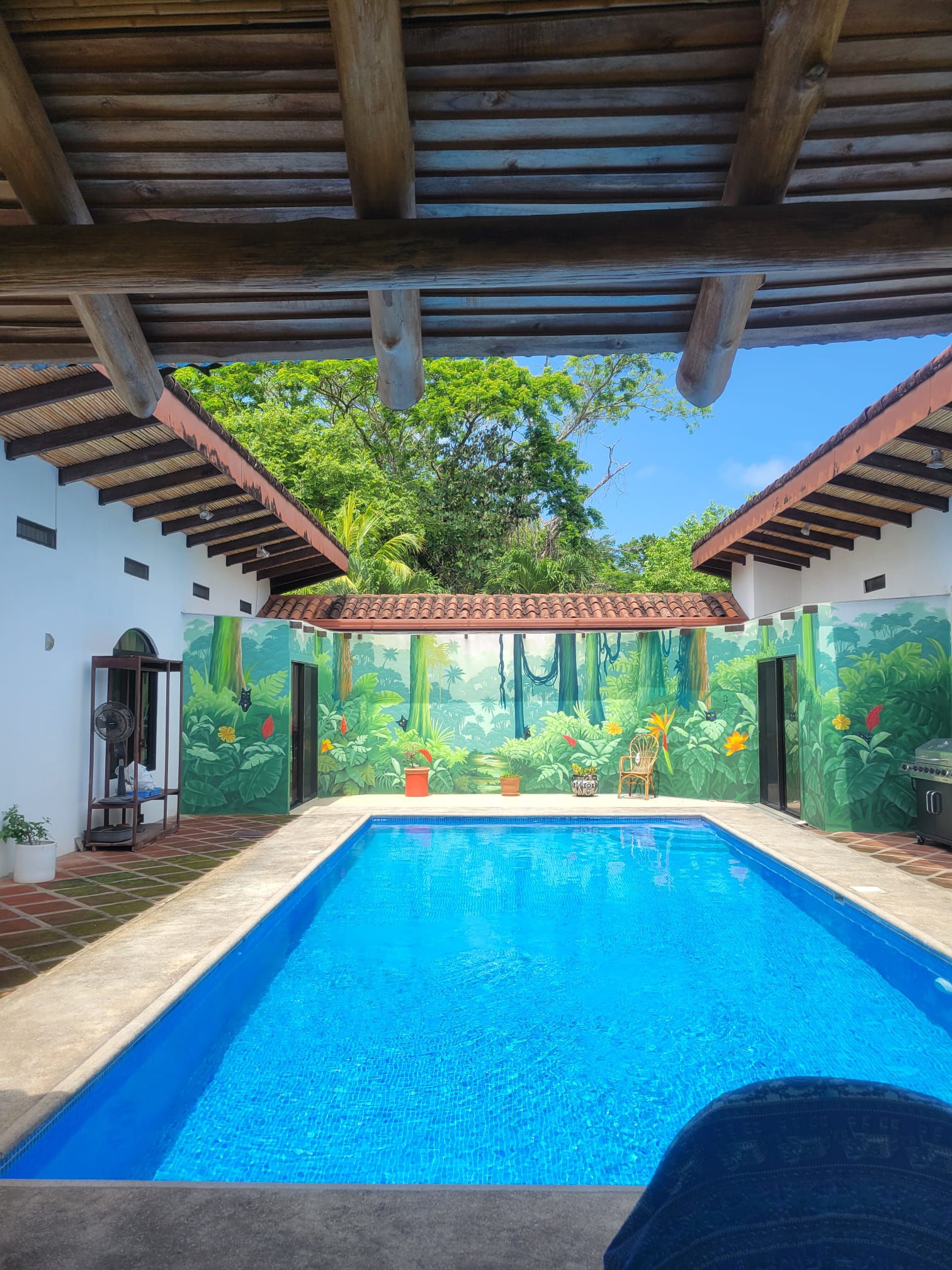 The property is fully fenced, featuring a carport, bonfire space, and fruit-producing mango and coconut trees. Beautiful tropical murals throughout the home add artistic charm and a touch of pura vida personality. With AyA water, community security at $70 a month and no HOA fees, you’ll enjoy freedom, peace, and privacy without sacrificing comfort.