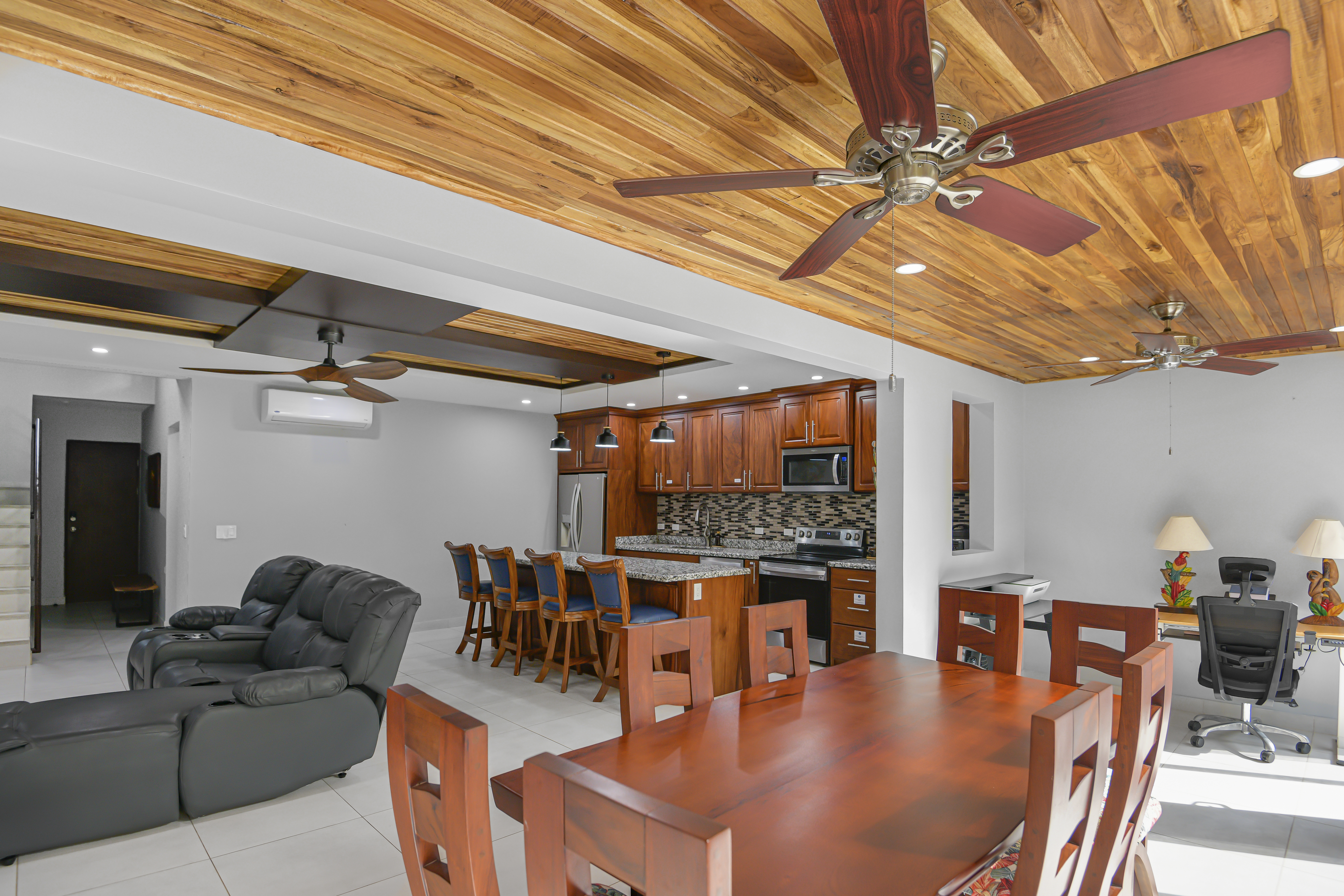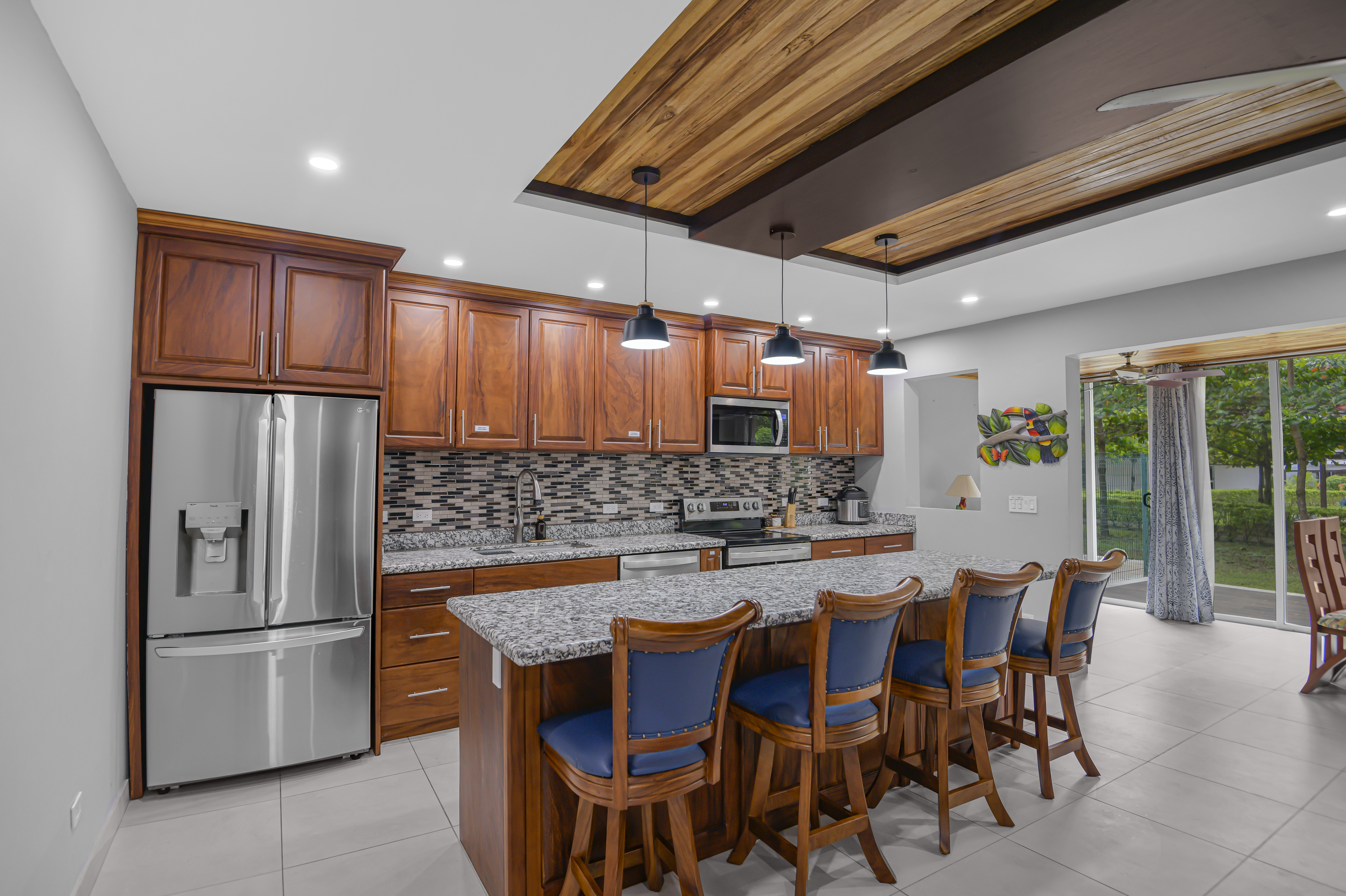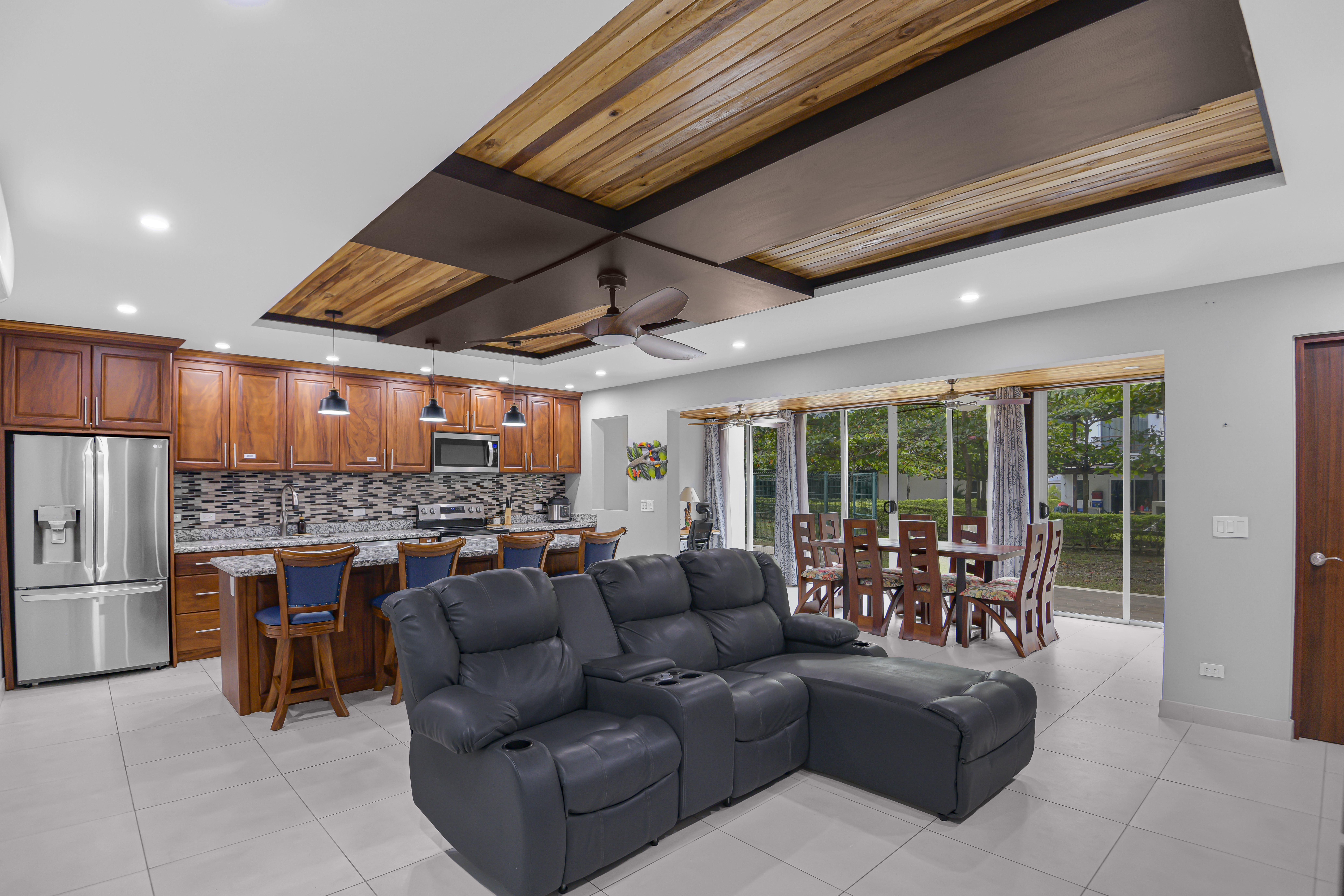 The living room has been expanded to accommodate larger families or provide additional personal space, making it perfect for entertaining or unwinding. All cabinetry throughout the home has been upgraded to custom teak wood, adding a luxurious touch. Unlike most homes in the community this home has a two-car garage providing you ample storage and protection from the beautiful Costa Rican sun and rain we love. Just a 5-minute walk to the beach and a 10-minute walk to downtown Jacó, giving you the best of coastal and urban living. Enjoy unparalleled community amenities—from the multiple pools and recreational areas to lush green spaces—while benefiting from low HOA fees.