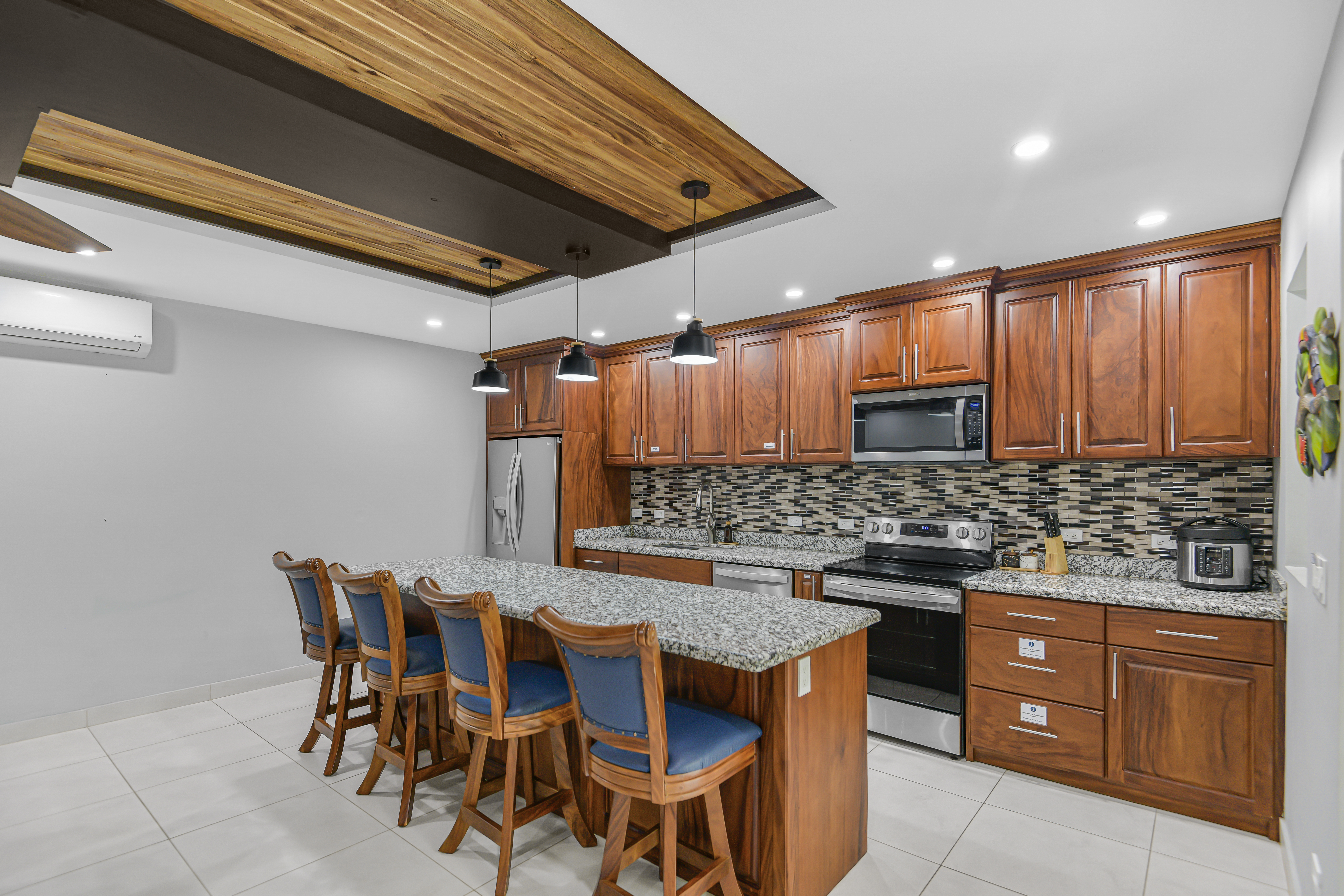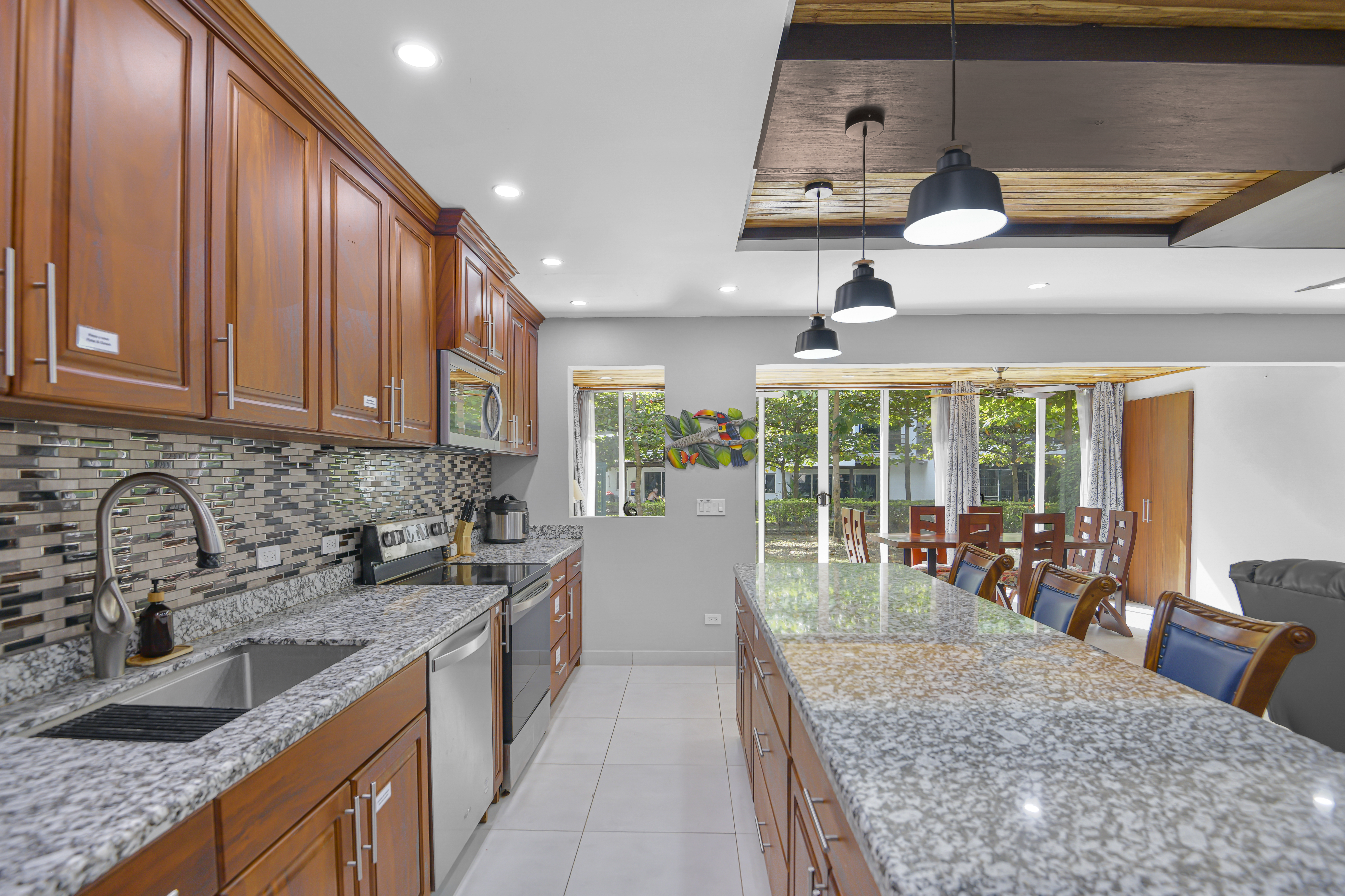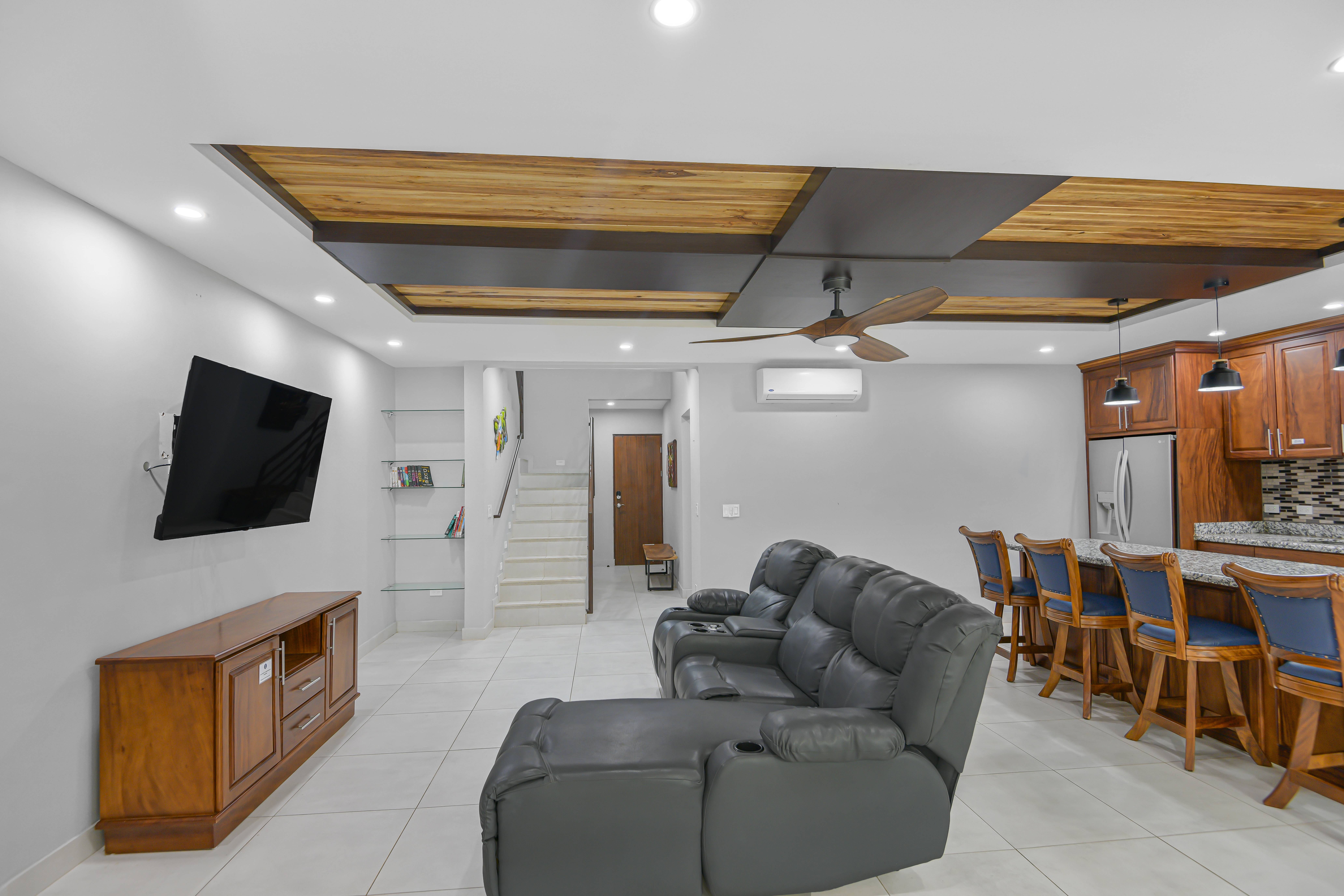 The living room has been expanded to accommodate larger families or provide additional personal space, making it perfect for entertaining or unwinding. All cabinetry throughout the home has been upgraded to custom teak wood, adding a luxurious touch. Unlike most homes in the community this home has a two-car garage providing you ample storage and protection from the beautiful Costa Rican sun and rain we love. Just a 5-minute walk to the beach and a 10-minute walk to downtown Jacó, giving you the best of coastal and urban living. Enjoy unparalleled community amenities—from the multiple pools and recreational areas to lush green spaces—while benefiting from low HOA fees.