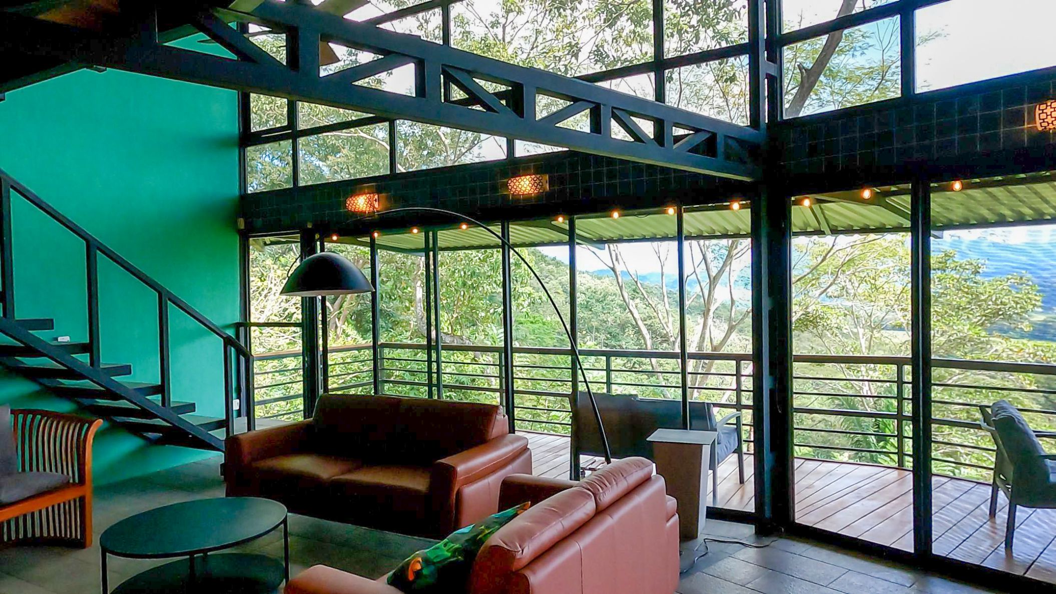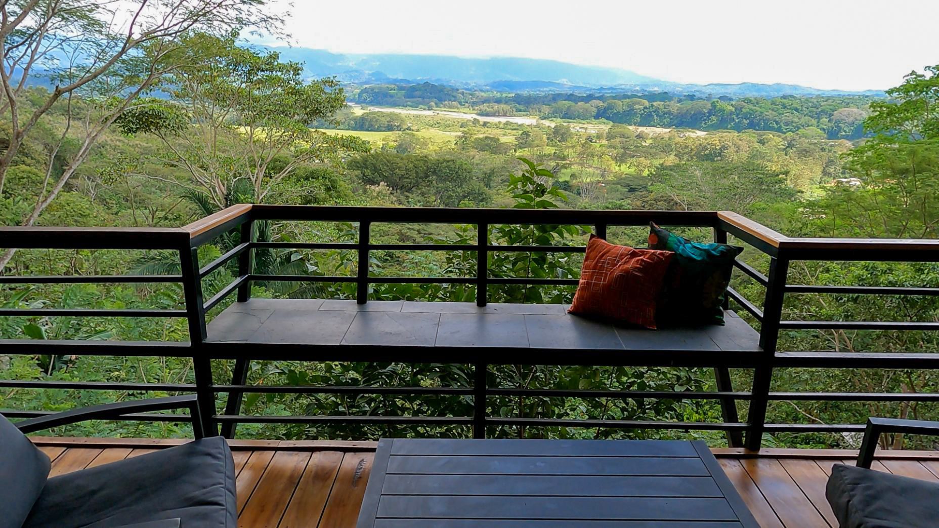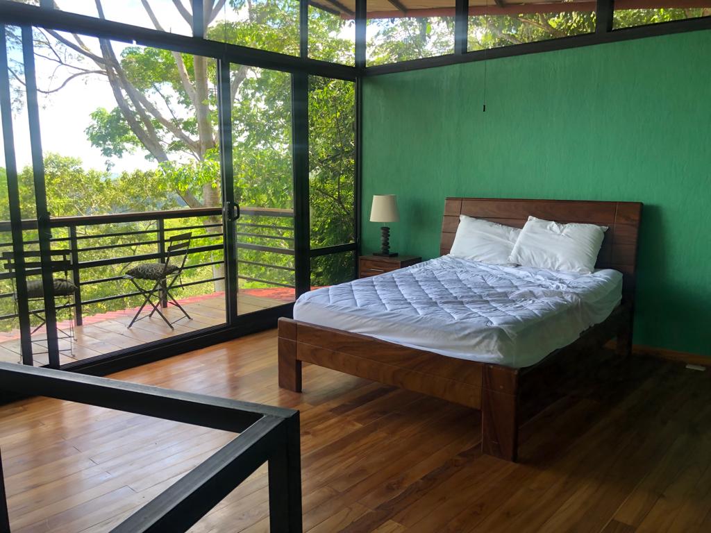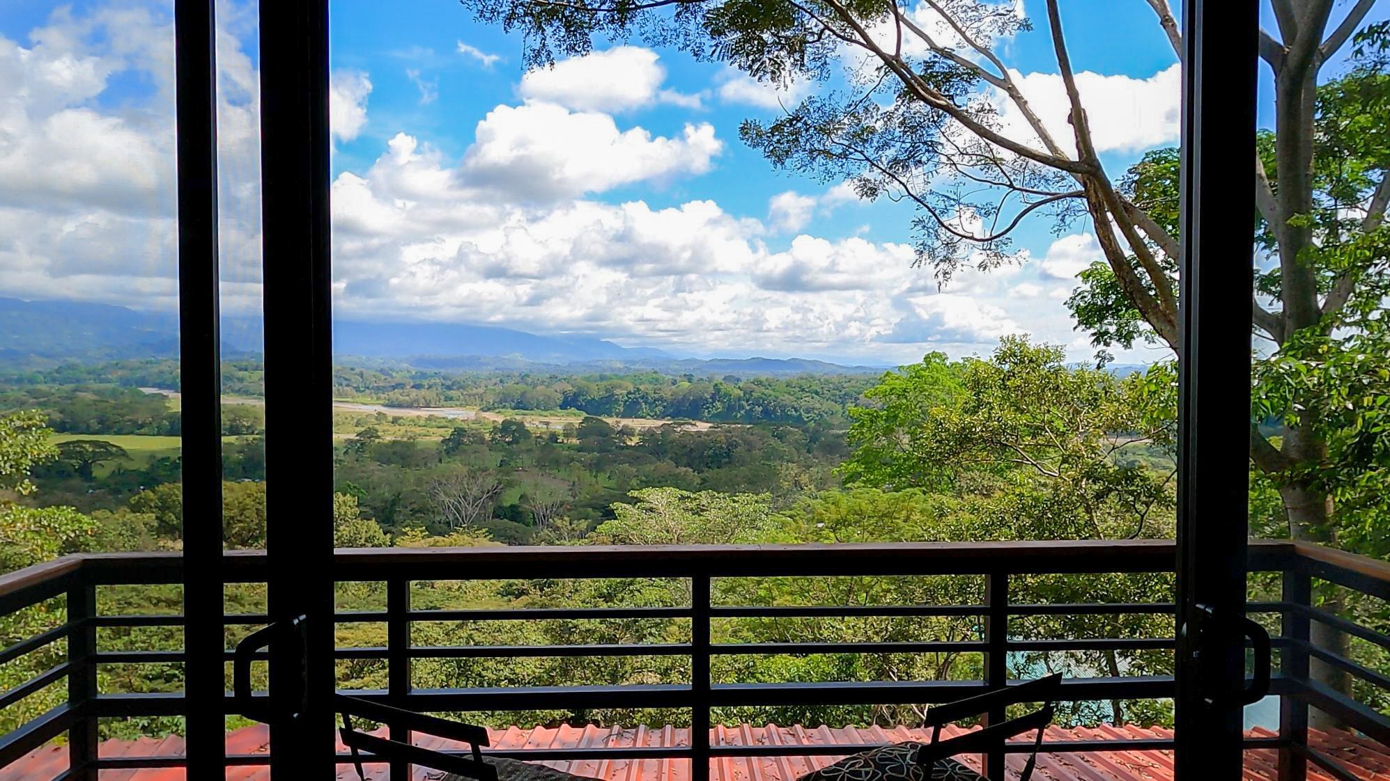 Upstairs there are three bedrooms with one full bath and an additional half bath. All three rooms upstairs are accessed directly by stairs and also by a catwalk running the length of the upstairs. All three upstairs rooms overlook the living room below with glass sliders and curtains to close the view if needed for sleep. When opened they offer the same stunning valley, river, and mountain views as the floor below. You will delight in waking up each day to the most expansive and amazing sunrise view! And a brand new balcony was recently added so you can enjoy your morning coffee perched high above the rainforest canopy and stunning river valley view. The home is designed for energy efficiency and is cool, even at midday. The master bedroom suite is air-conditioned. With small modifications, the remaining living space in the house can be air-conditioned with split AC units. Built with galvanized steel beams and panels, the home is easy to maintain with no worries about mold or termites in the tropical environment.