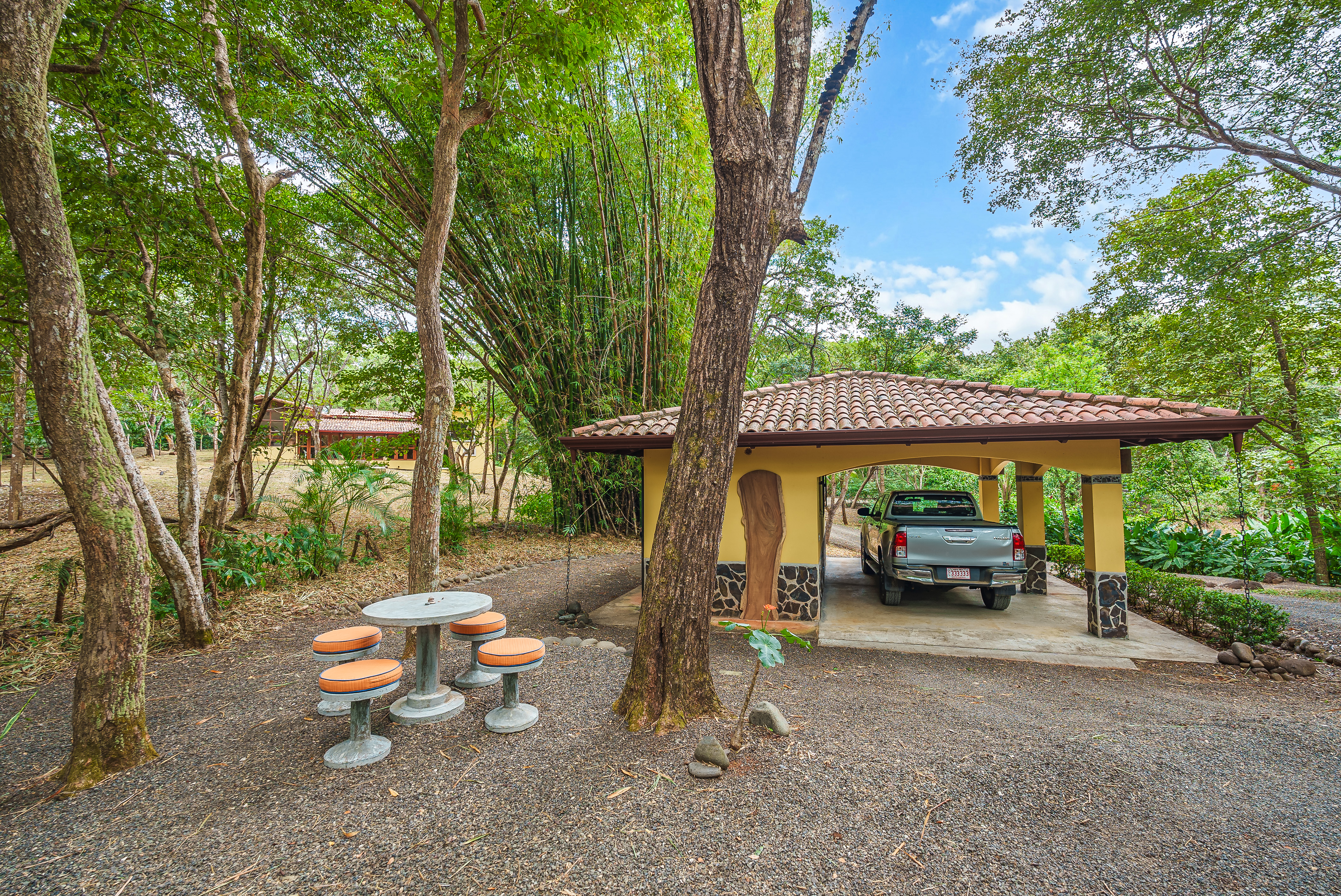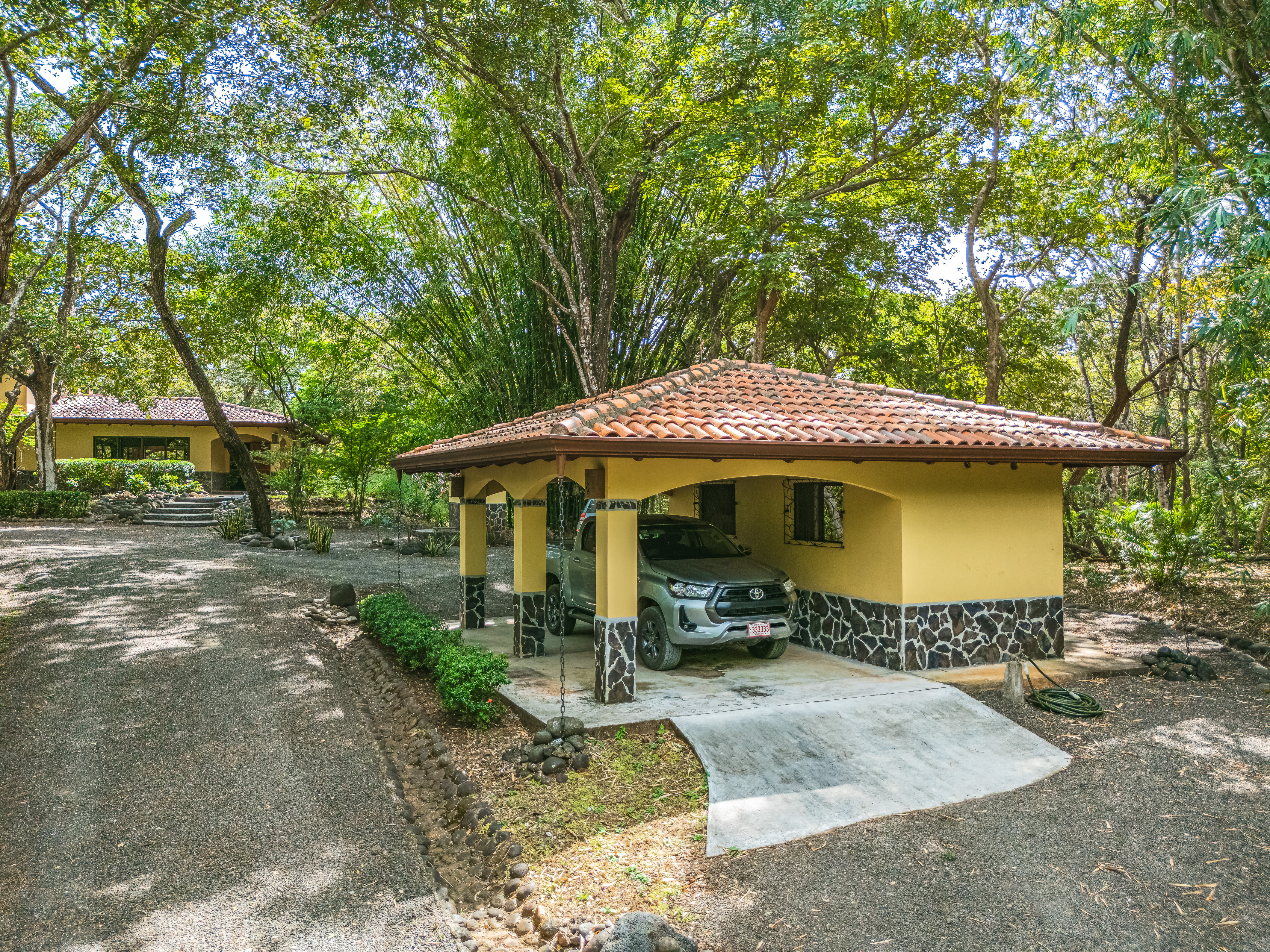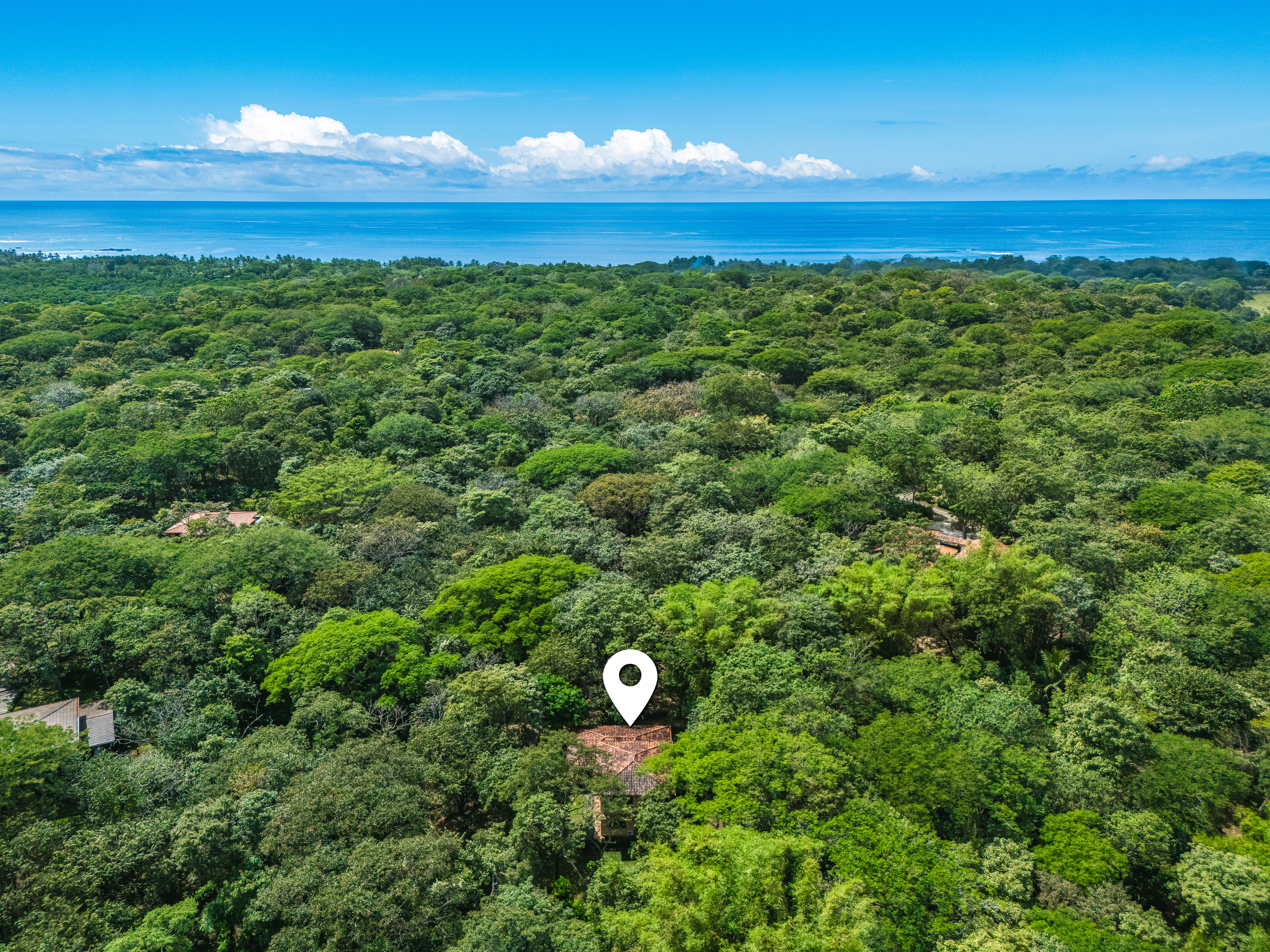 Centrally located within Tierra Pacifica on a 6,500 square meter lot (+/- 1.62 acres), the property is bordered by dedicated green zones, increasing the home’s privacy. Paths through the dry tropical forest connect to the community nature trails. Walk seven minutes in one direction to Club Arbol and community amenities, or twelve minutes in the other to sand and Playa Junquillal.
