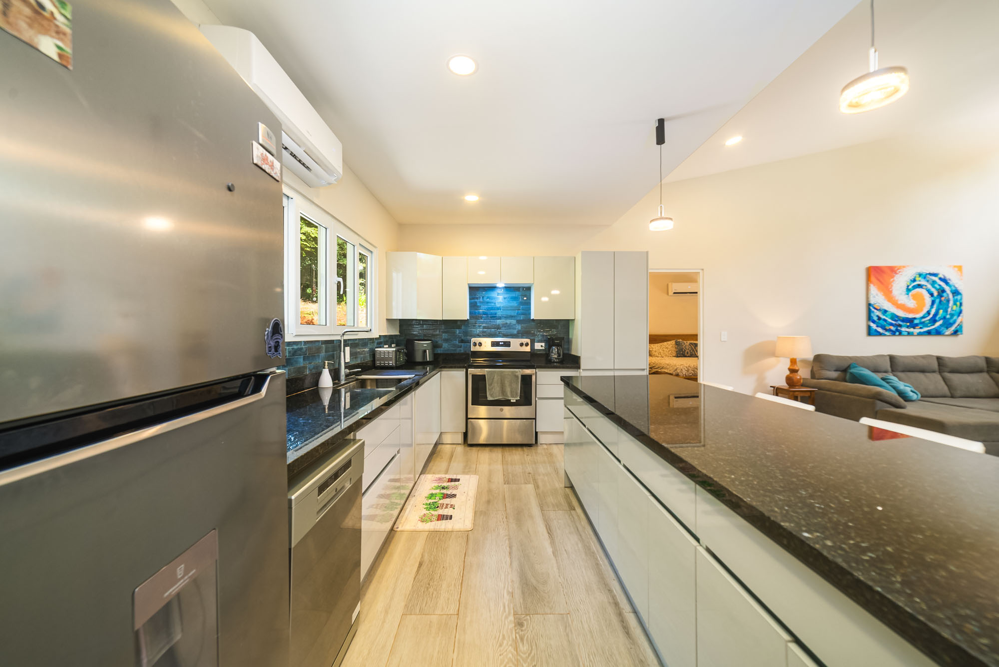 Completed in 2023, this single-level residence offers a fresh, modern aesthetic in one of Guanacaste’s most renowned ecological communities. The home is set on Lot #14, a generous 9,397 m² (2.32 acres) parcel, providing privacy, forested views, and close proximity to the community’s resort-style amenities.
