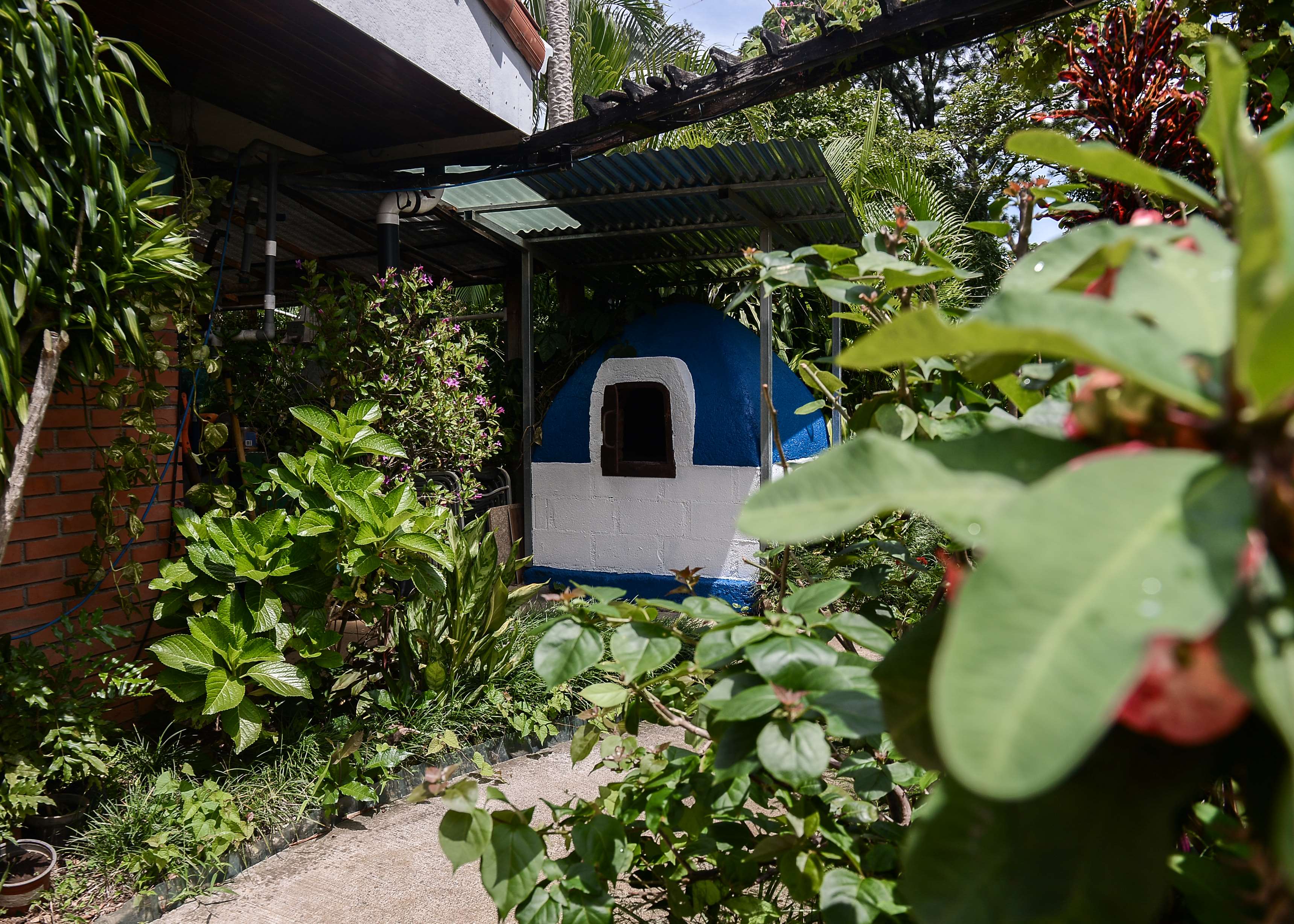 Rodeada de un ajardinamiento exquisito, podrás disfrutar de un hermoso estanque con una fuente para peces en el jardín, creando un ambiente de serenidad y belleza natural. Además, cuenta con un horno de pizza perfecto para reuniones y eventos al aire libre.