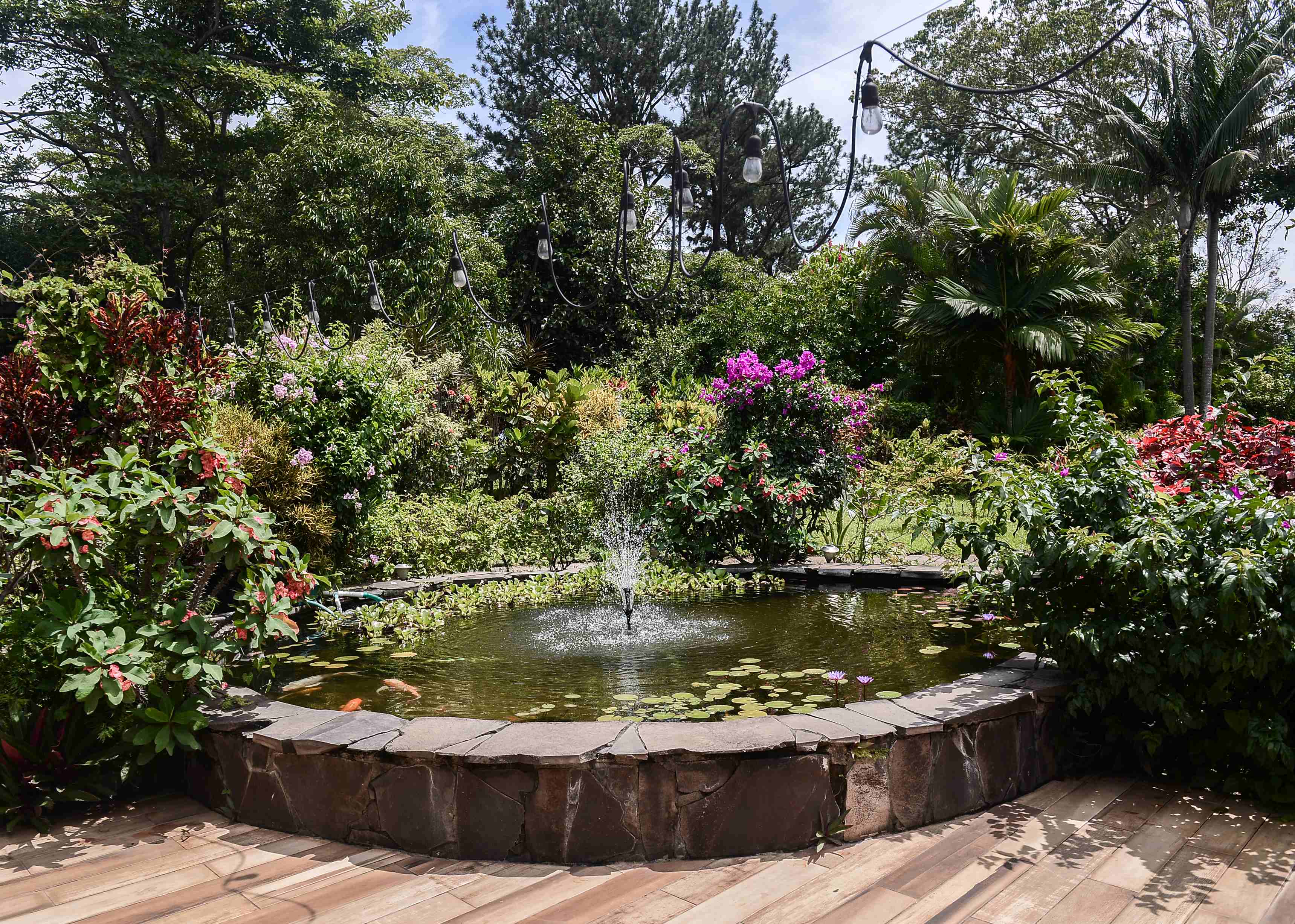 Surrounded by exquisite landscaping, you can enjoy a beautiful pond with a fish fountain in the garden, creating an atmosphere of serenity and natural beauty. Additionally, it features a pizza oven perfect for gatherings and outdoor events.