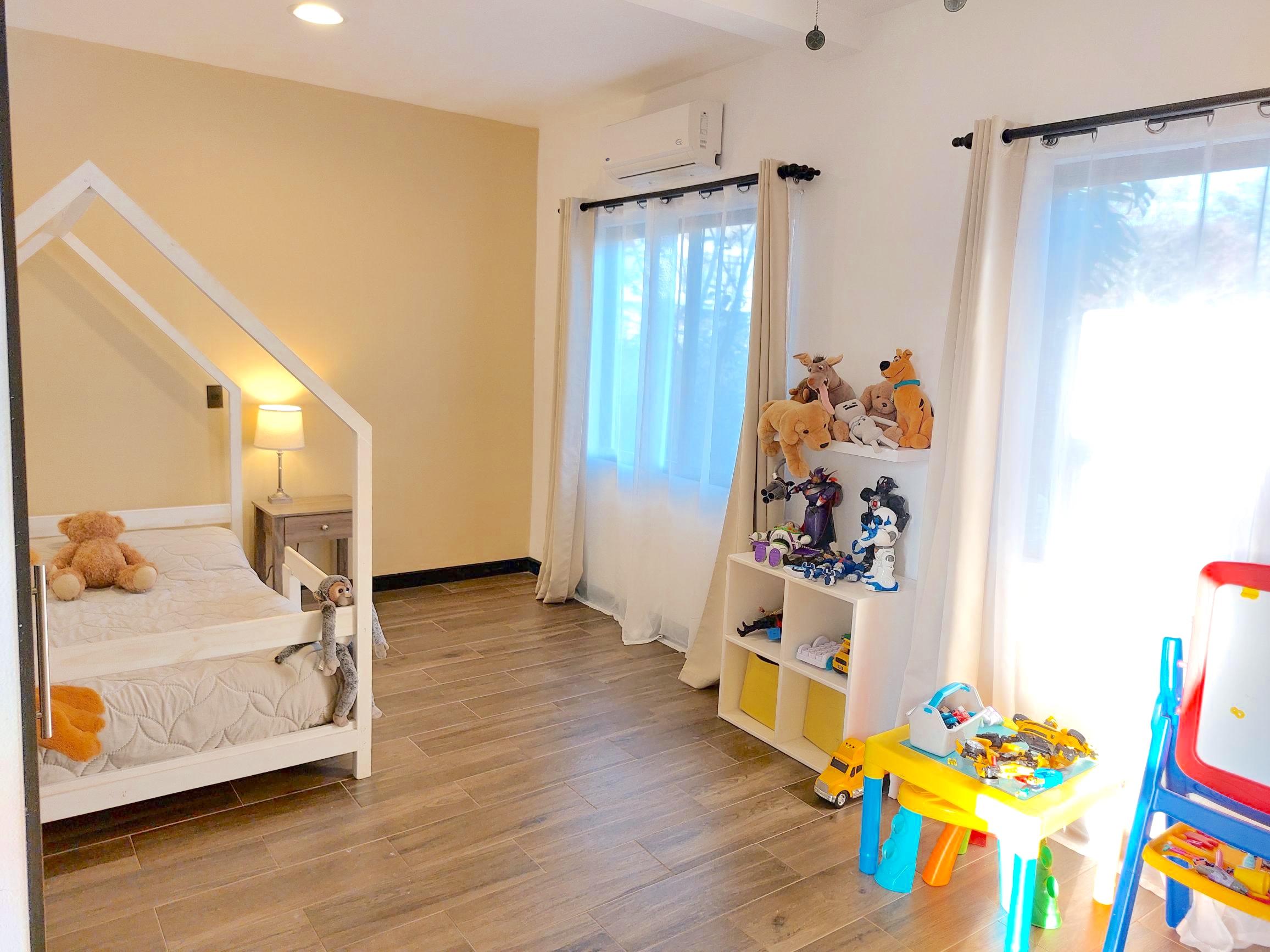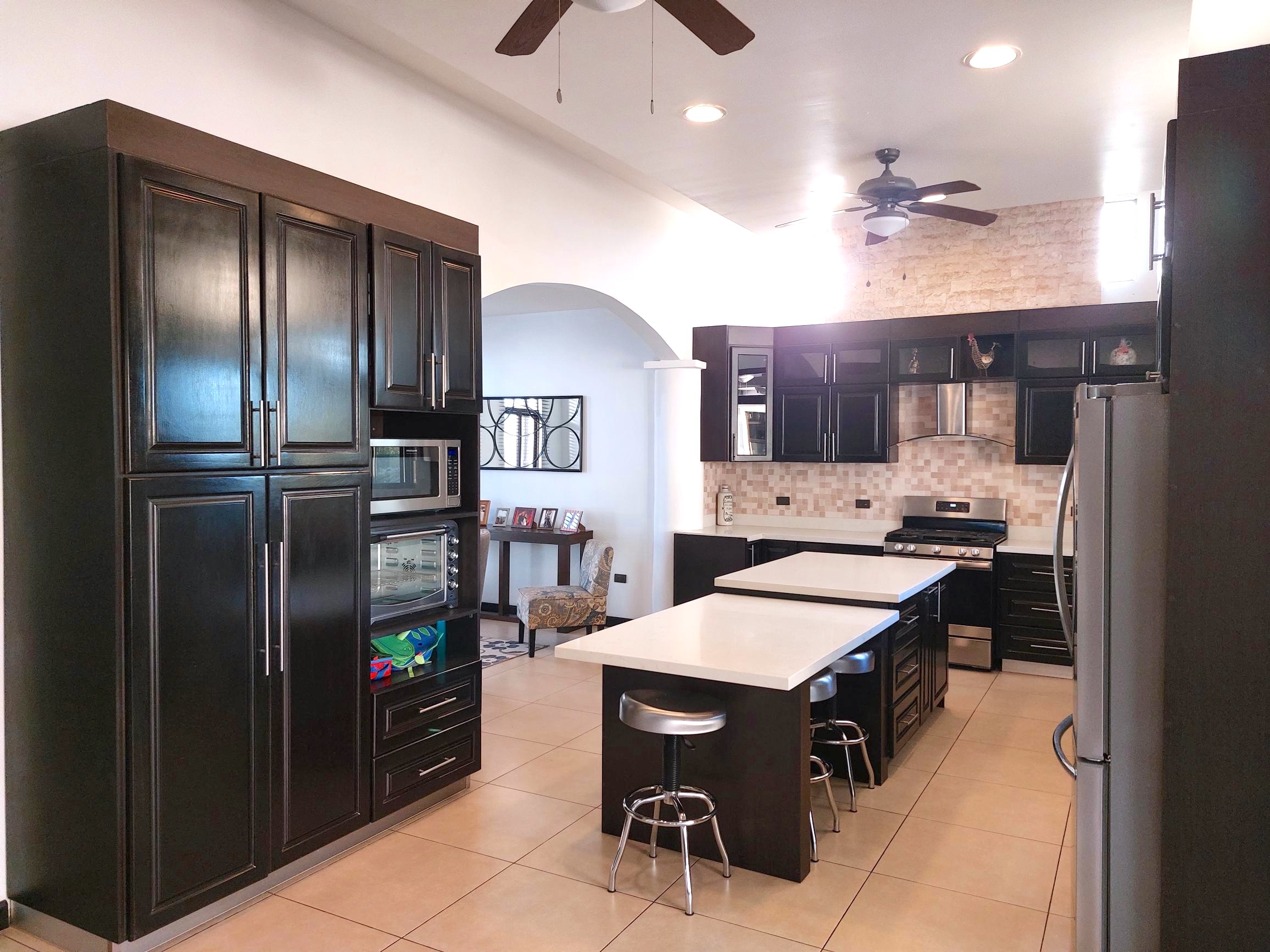 This house is in a fabulous gated community with flat topography, inside Hacienda Los Reyes. The House is one level, and it also allows building a second floor in the future. There are three bedrooms and one office. Two full bathrooms and a half guest bathroom. Covered terrace, covered deck, small kids pond, and garden area. It has an enclosed garage, lots of storage space and an excellent distribution plan. Also, need to mention beautiful sunsets.