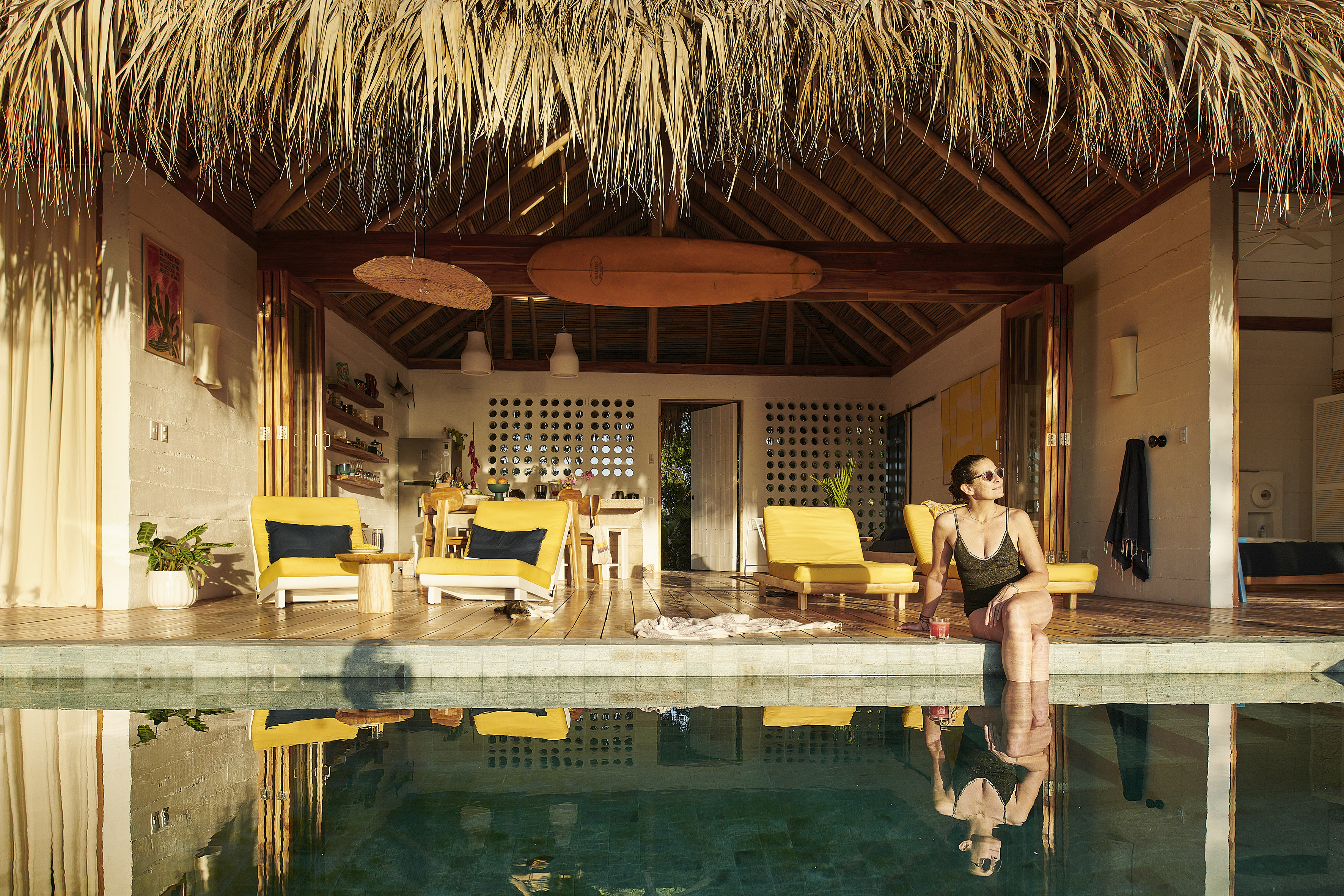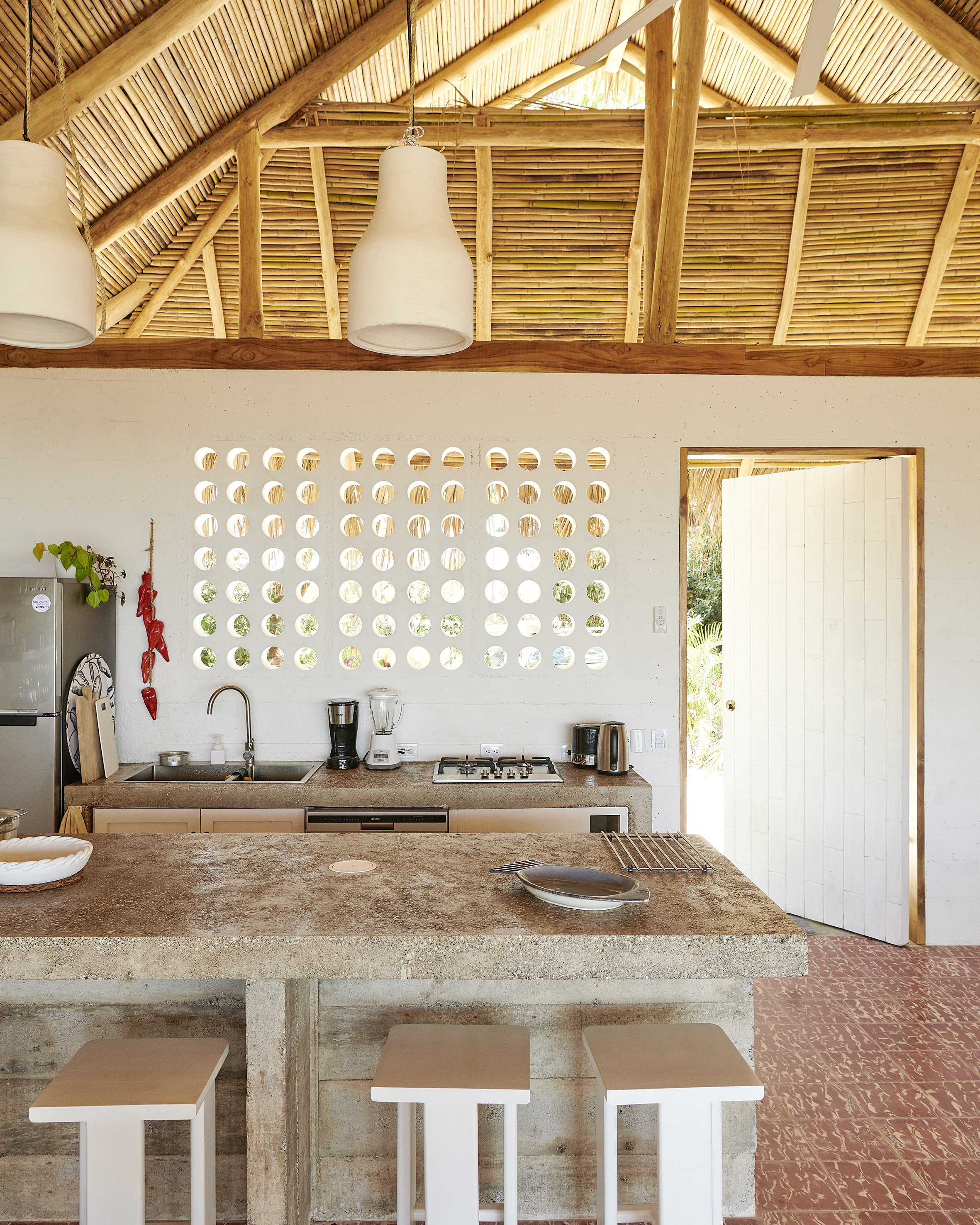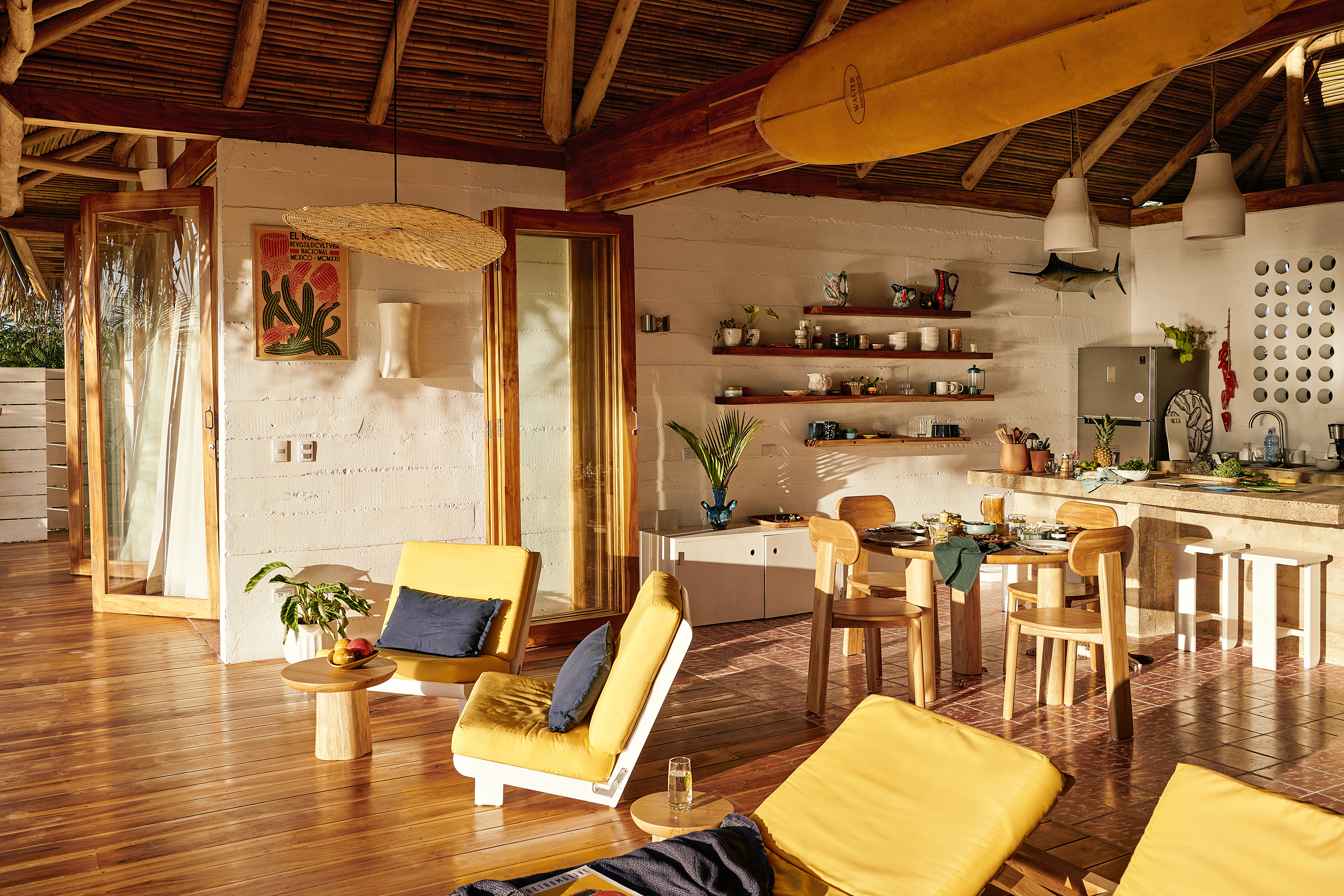 The kitchen is equipped with state-of-the-art appliances and high-quality finishes, perfect for meeting the needs of any amateur or professional chef. From here, you have access to a private backyard patio, ideal for enjoying outdoor meals or relaxing in the sun while gazing out at the breaking waves on the coast and the mountains stretching across the horizon.