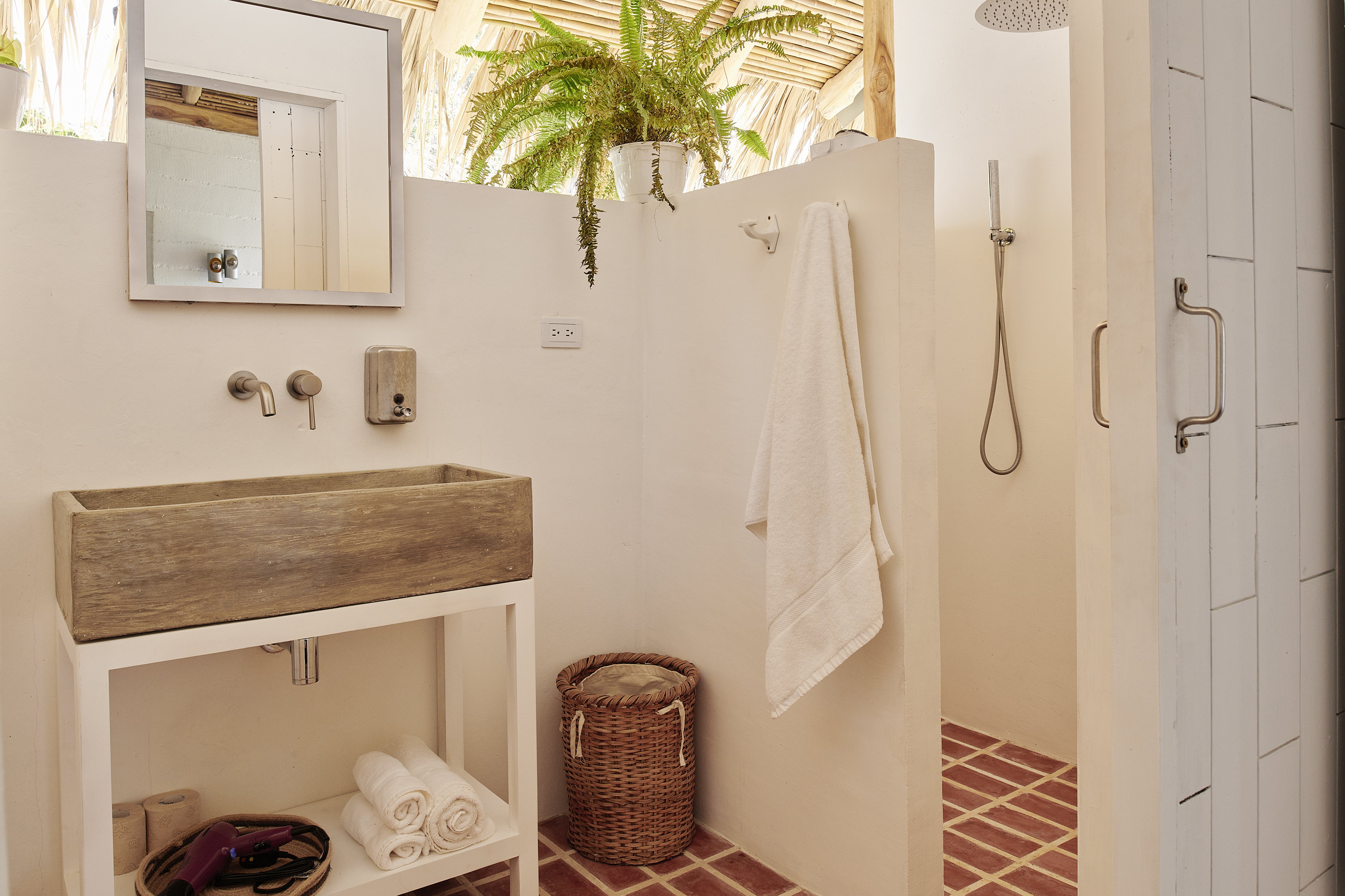 The three bedrooms are spacious and bright, each with its own full bathroom and built-in closets. The master suite offers views of the sea and mountains from its window, providing a tranquil and serene retreat to rest after a day filled with activities.