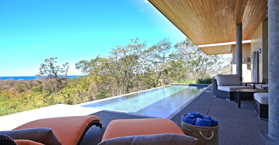 You see sweeping Pacific views from inside and outside this home on the jungle mountaintop. Step outside under your wood-lined patio overhang and immerse yourself in the infinity pool. The modern kitchen complete with high-quality granite countertops and the finest appliances, includes a multi purpose island/breakfast bar. Bioclimatic cooling in all home designs. Polished concrete floors in both indoor and outdoor living spaces, landscaped crushed stone patios off of second and third bedrooms, Venetian stucco exterior finishes for high quality visual aesthetics and low maintenance upkeep. 24 hour staffed guardhouse, underground utilities.