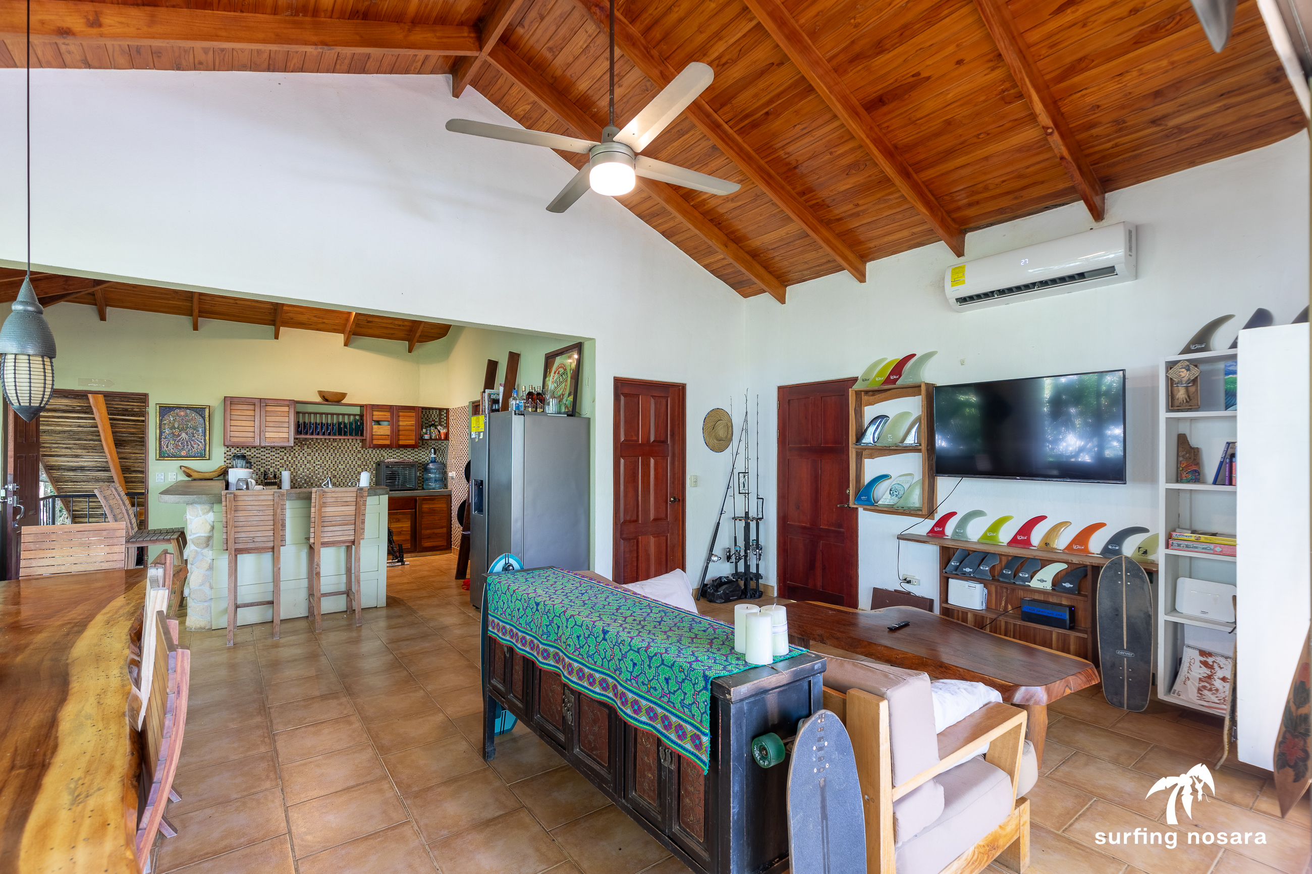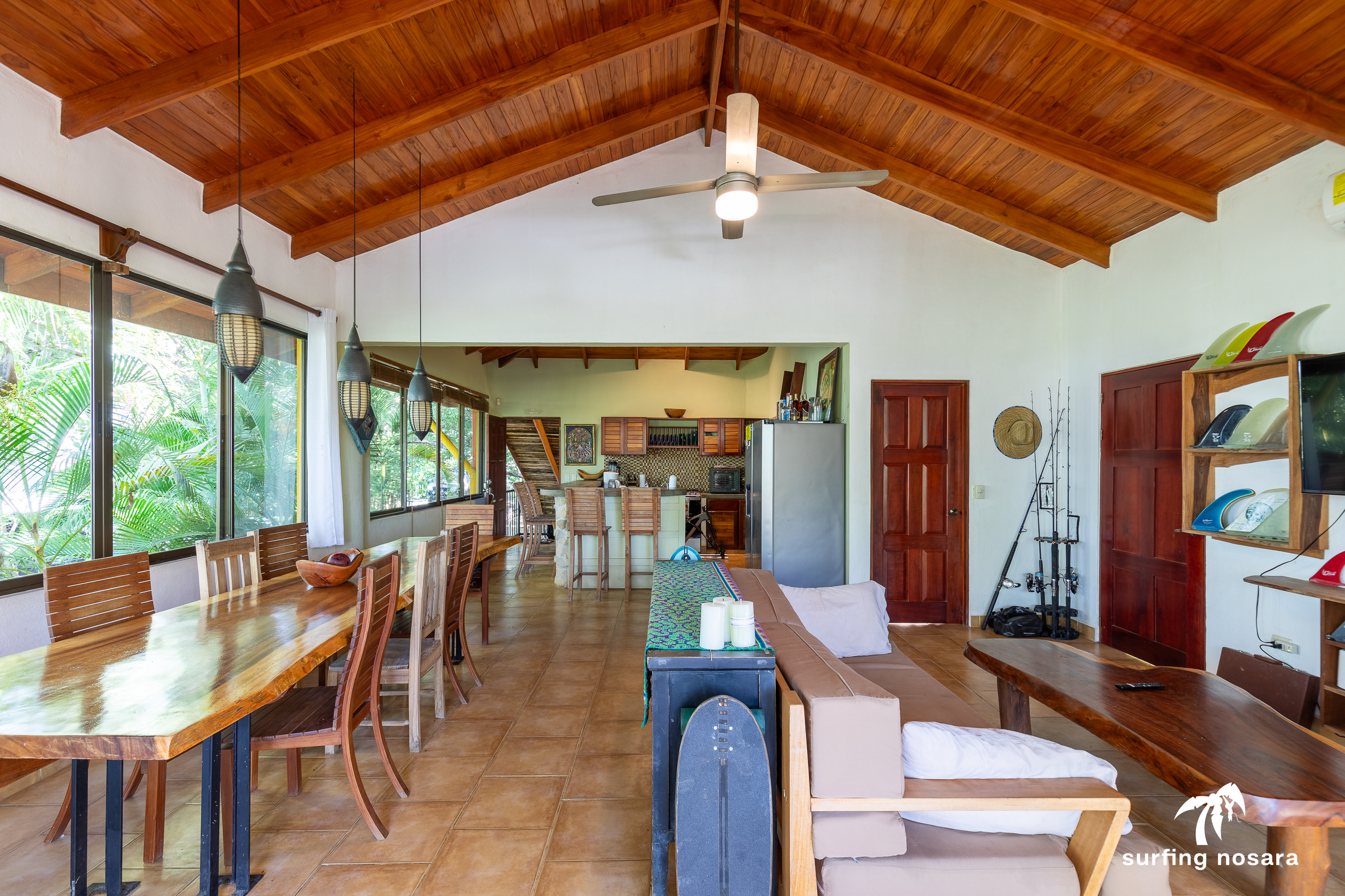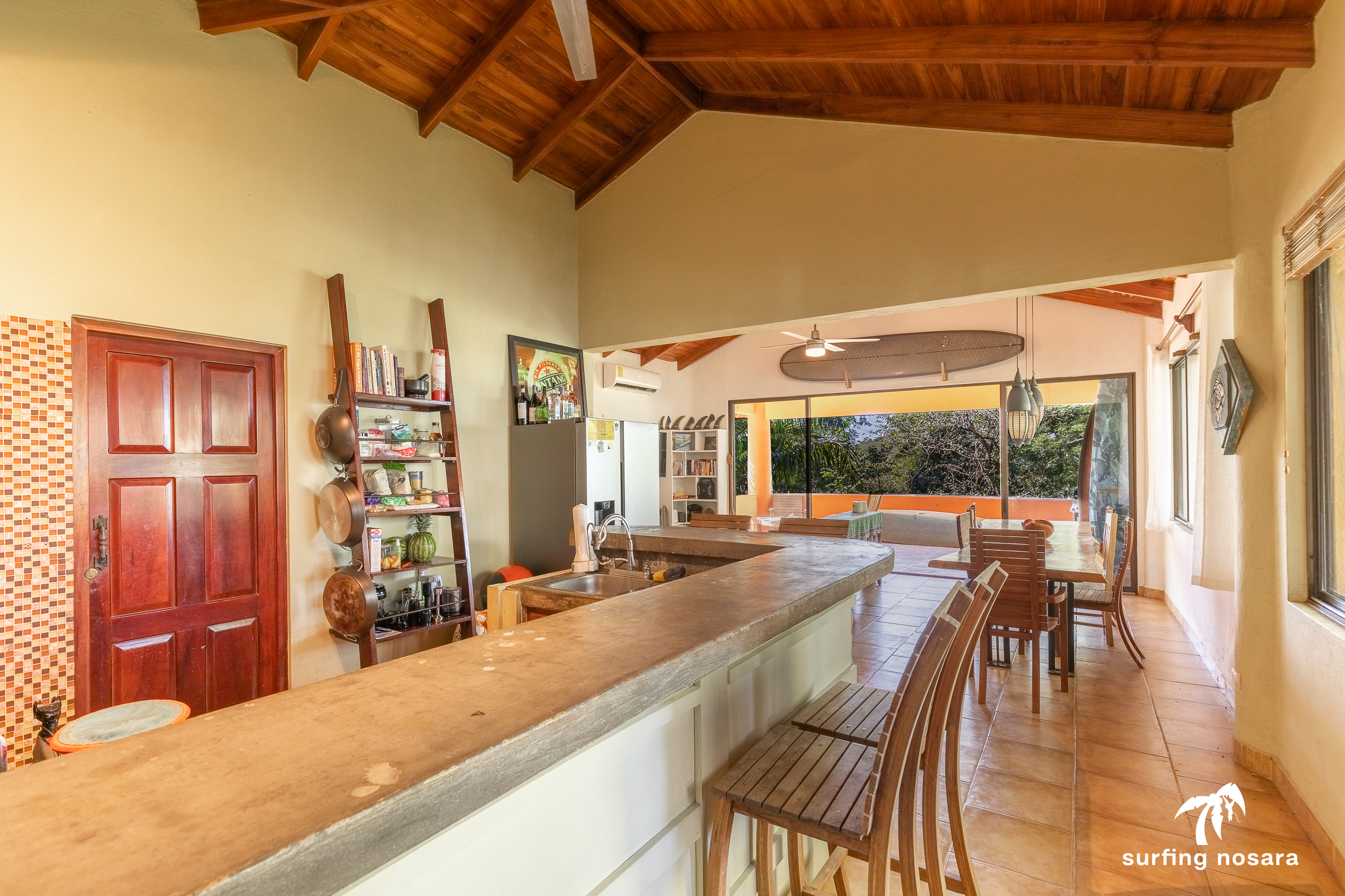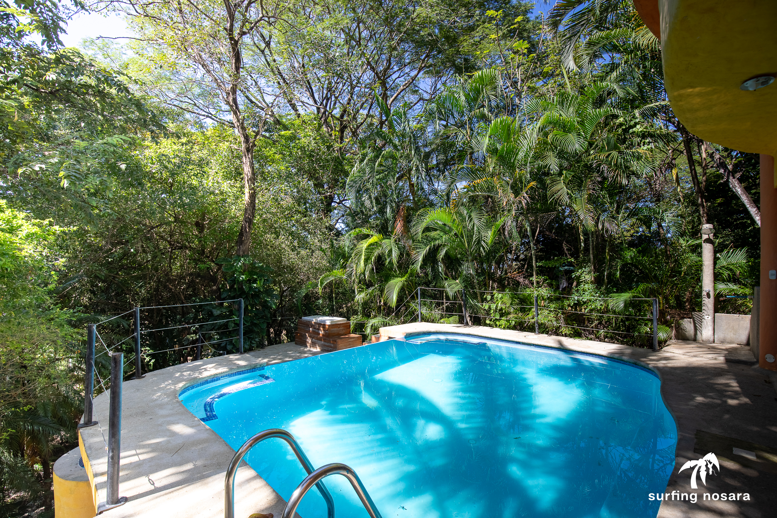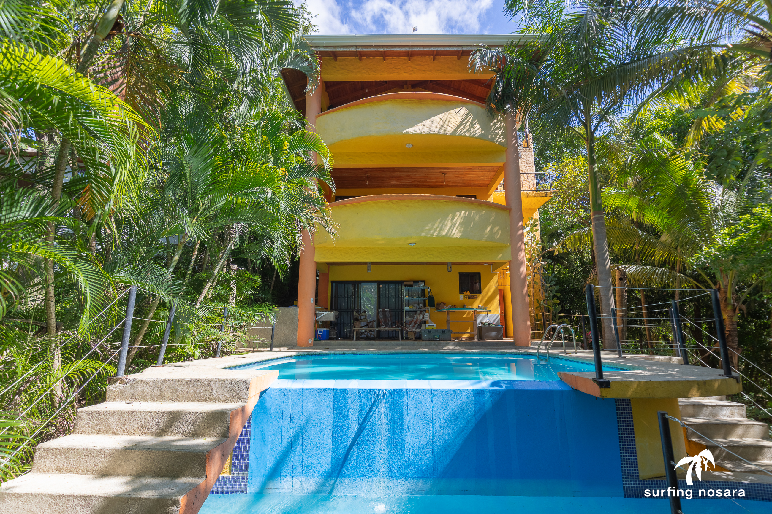Just a 4-minute walk to Pelada Beach and seasonal ocean views! This ready to move into property sits a short 4 min walk from the beach, and has ocean views from the crow's nest and high season views from the balcony. This large 830-meter property is accessible from two roads (both above and below). It may make it possible to add an additional living structure for rental income. What is best is the layout of the lot would still provide privacy to both houses. Unknown if the lot is subdividable. The existing house is thoughtfully laid out with the main living area being the highest point and accessible from the upper road. This is also where you find the kitchen and the half bath as well as access to the covered crow's nest deck. The bedrooms and 3 other bathrooms are spread over two additional floors. All of these combine to provide great space for entertaining while also having privacy for the sleeping areas. This is a property that is ready as is to be lived in or rented. Or, bring your vision and update to your own tastes. Spend your days relaxing on the balconies while enjoying the breeze, watch the monkeys climb through the trees right outside the windows, or entertain all afternoon by the pool. Email for more information.