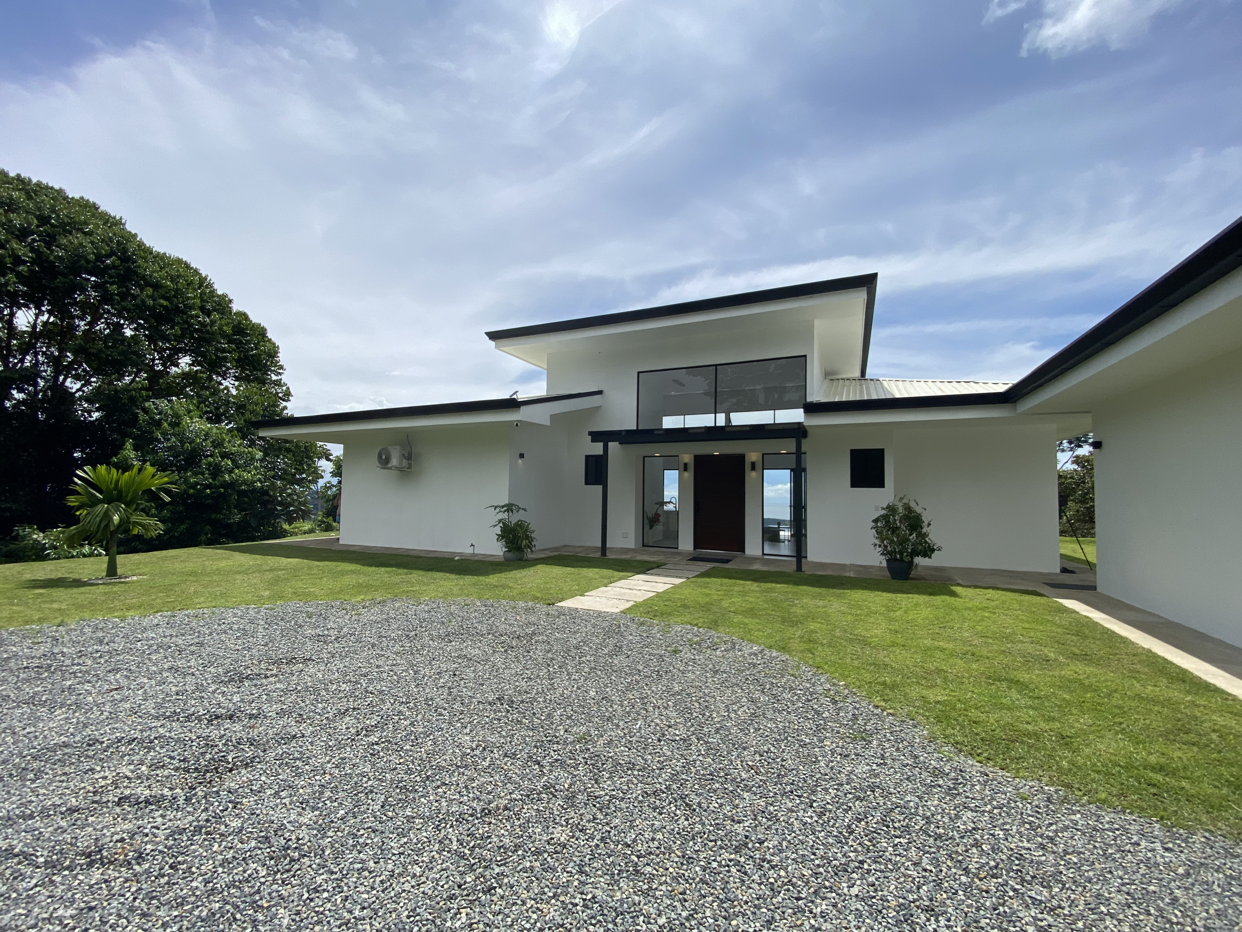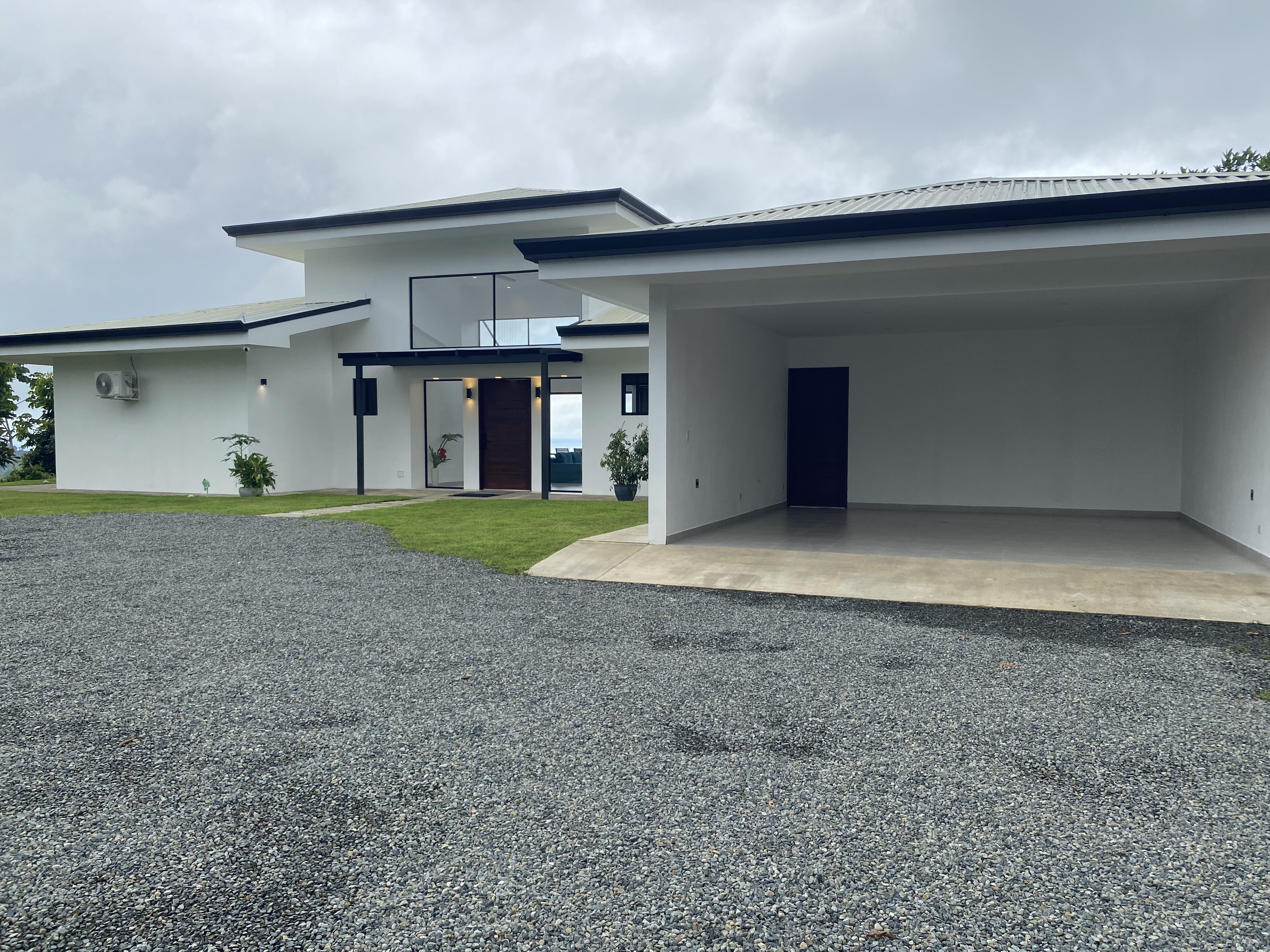 This contemporary open-concept residence features high ceilings and expansive glass walls with sliding doors that flood the home with natural light while framing 180-degree views of the Pacific Ocean, Osa Peninsula, Caño Island, and the Térraba River. The master suite offers a stunning ocean panorama, a walk-in closet, and a double-sink bathroom. The master bedroom and the second guest room open directly to the terrace. A third guest room features two single beds, perfect for children or visitors. The entire house is equipped with air conditioning, washer and dryer, and a pantry for added convenience. Relax on the large terrace or in the infinity pool overlooking the breathtaking coastline, surrounded by lush tropical gardens and abundant wildlife. With more than 2 acres (8,448 m²) of land, there’s plenty of space to create a fruit orchard, botanical garden, or vegetable plot. The two-car garage can also be converted into a guest studio, offering additional versatility and rental potential. Equipped with Starlink high-speed internet, Casa Violines is ideal for remote workers seeking peace, privacy, and connection with nature. The property is surrounded by jungle and teeming with wildlife, offering an authentic Costa Rican experience. Located in Tres Ríos, known for its untouched nature, rivers, and waterfalls, this home is just 15 minutes from the nearest hospital, 20 minutes from the beach, and 35 minutes from the local airport on Costa Rica’s stunning southern Pacific coast.
