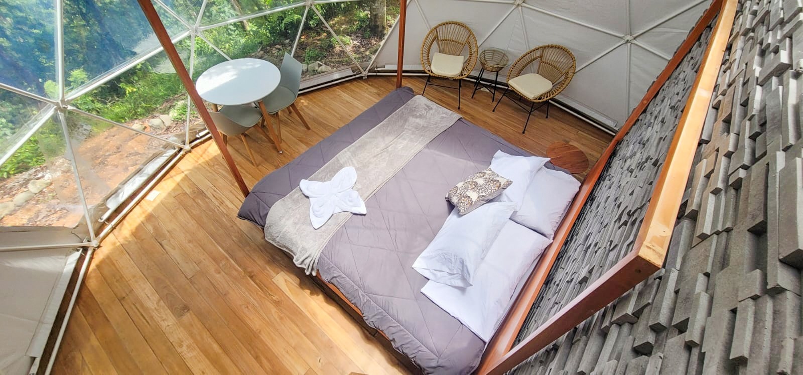 Whether stargazing from the king-size bed or unwinding outdoors, the glamping dome offers a unique and unforgettable experience. Natural Surroundings and Wildlife: Toucan Valley, a birdwatcher's paradise, hosts toucans, hawks, parakeets, and diverse fauna, creating an enchanting environment. Community Amenities: Down the mountain, Toucan Valley Eco Resort offers a vibrant community of friendly expats with amenities such as a pool, pool table, ping pong table, community gardens, and a food forest for an affordable $100 per month.