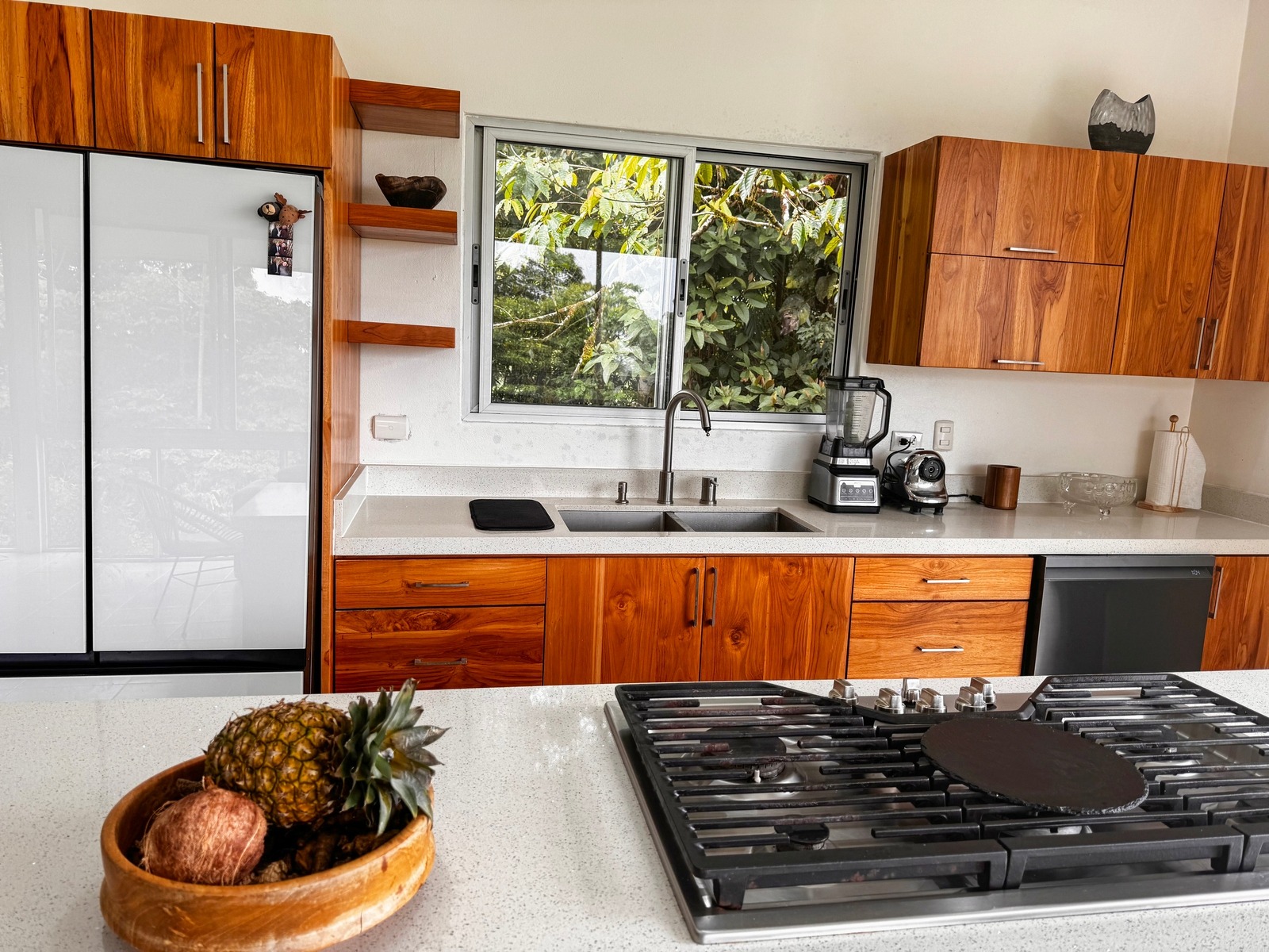 The House: This modern 2-bedroom, 2-bathroom residence boasts contemporary design and comfort. Floor-to-ceiling windows frame the unparalleled ocean view, infusing the living spaces with natural light. The main bedroom, featuring an ensuite bathroom, offers a window that gazes into the jungle. The second bedroom, centrally located, shares the same bathroom. The heart of the home lies in the open-concept kitchen, fully equipped with state-of-the-art appliances and a sleek design, seamlessly connecting to the living and dining areas. Step outside to the expansive garden and the infinity pool overlooking the vast ocean, creating a seamless transition between indoor and outdoor living.
