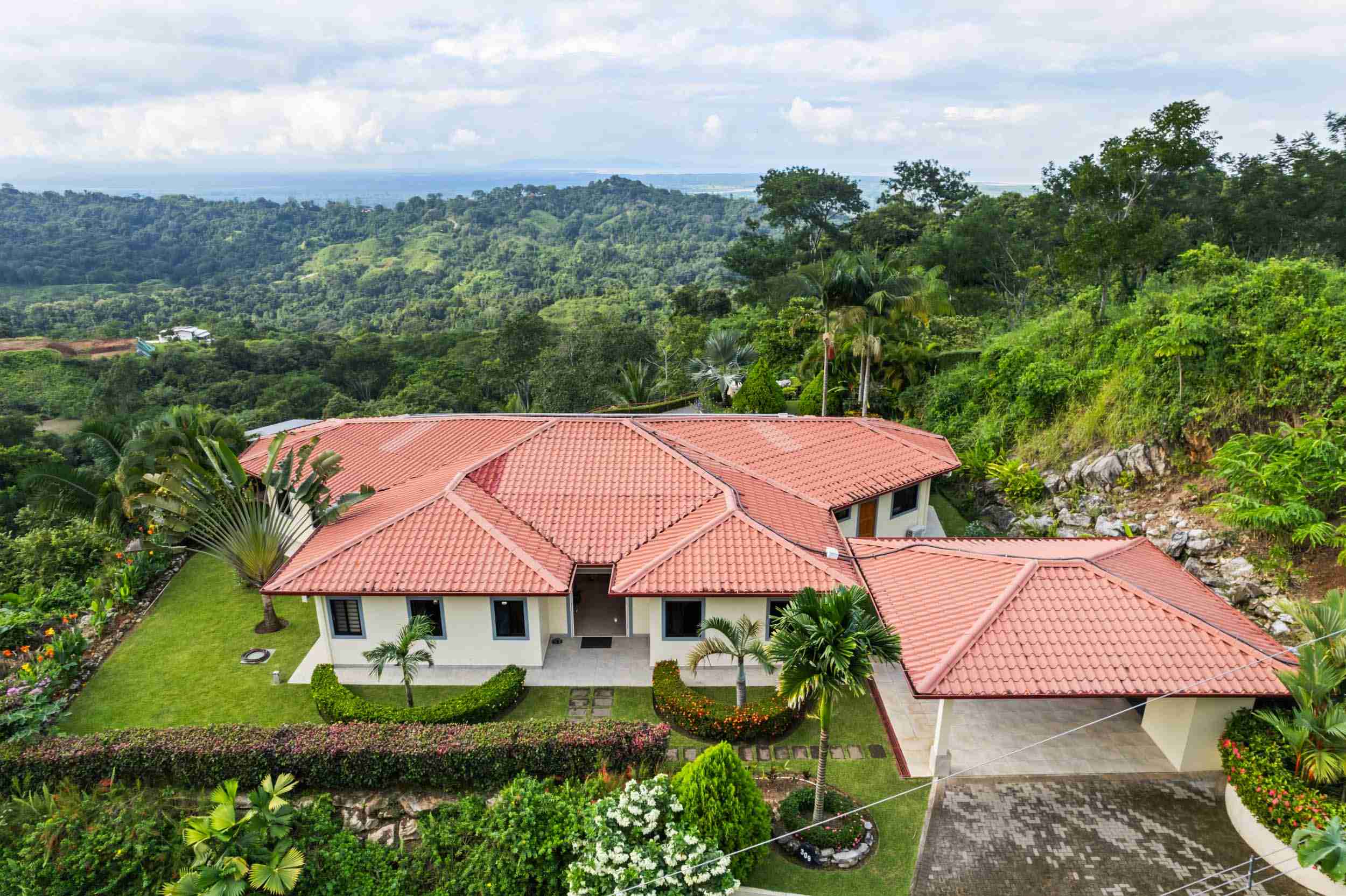 The Community of Chontales Chontales Costa Rica Ocean View Home for Sale. This bright, spacious and open 3-bedroom home is perched within the prestigious “Sueños del Tropico” community in Chontales which is near Ciudad Cortez and Ojochal, Costa Rica. The Chontales community boasts easy access with a recently paved road that covers about half the distance from the highway with well-maintained gravel the rest of the distance. The other existing homes include beautiful high-end luxury homes as well as stunning ocean and mountain views that the Costa Rica southern pacific zone is known for. This home features high-end finishes and a seamless blend of indoor/outdoor living with views of the sparkling Pacific Ocean and the lush jungle-covered mountains surrounding Chontales. Additionally, the community is gated for your security and peace of mind, making the community perfect for full or part time residents. The neighborhood is perfectly placed between Ojochal (great restaurants and activities) and Palmar Norte (full services, grocery stores, etc) while being just a 10 minute drive to the closest hospital in the area which is in Ciudad Cortez.