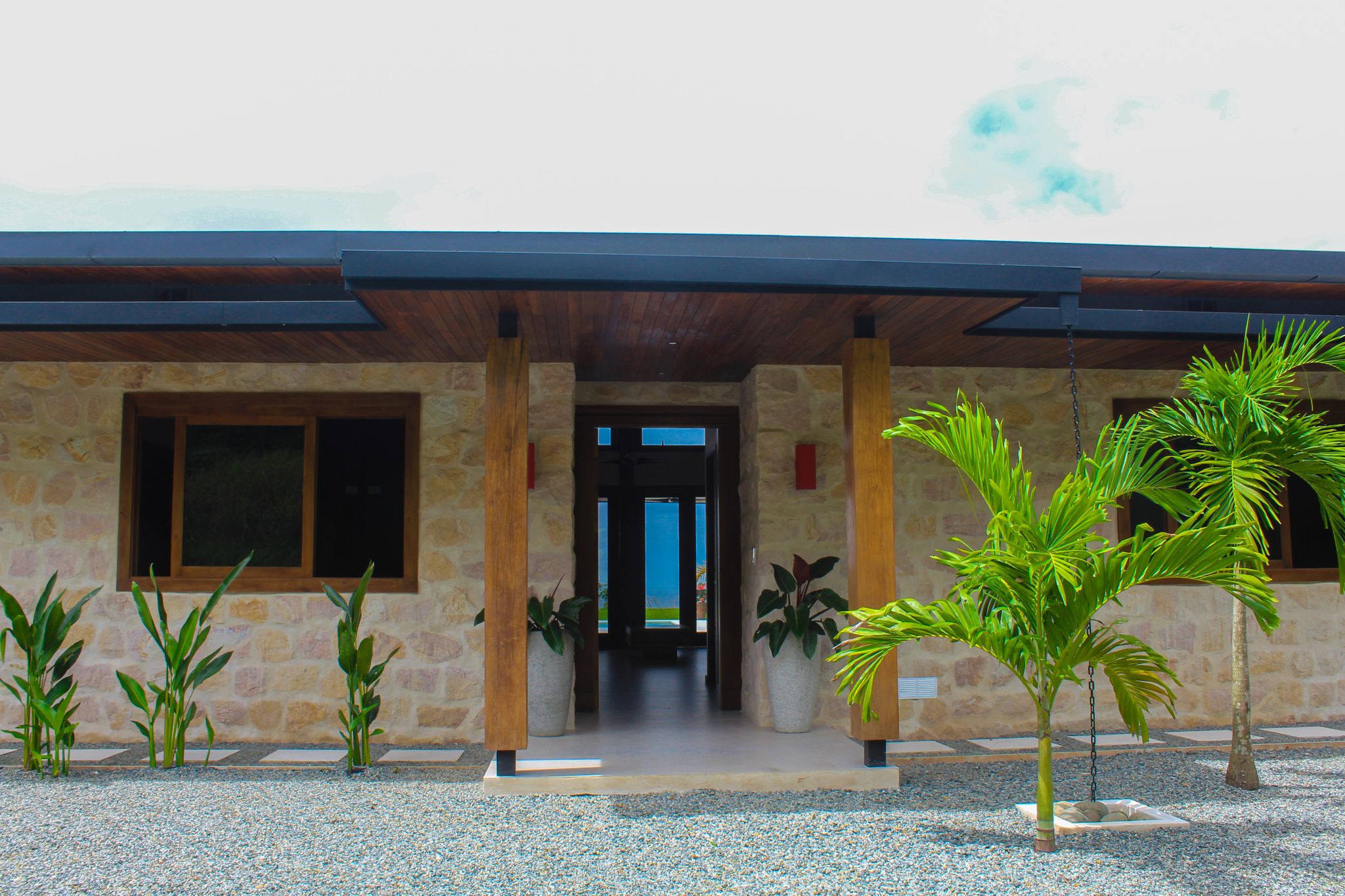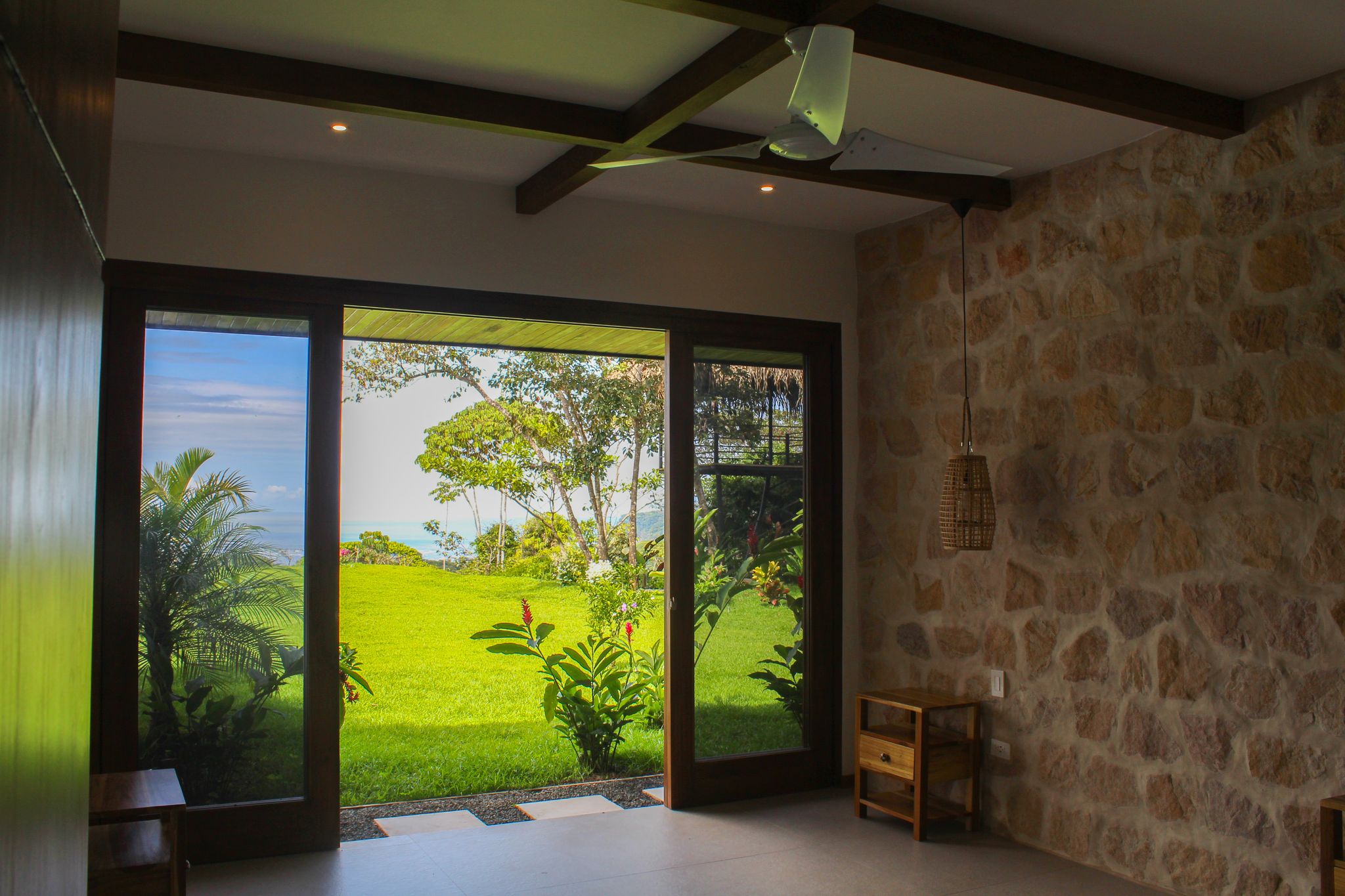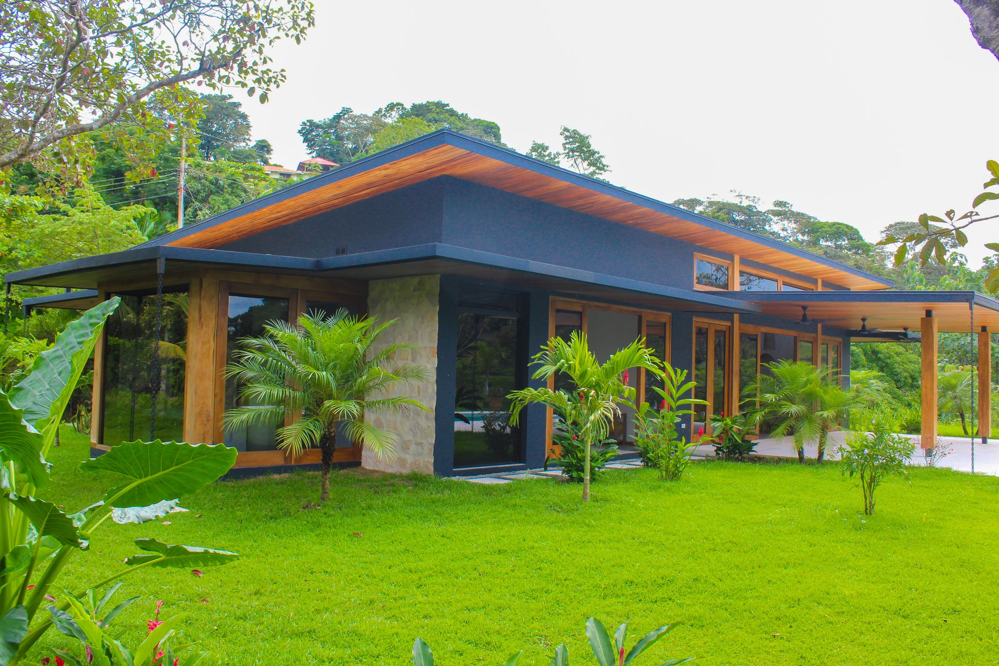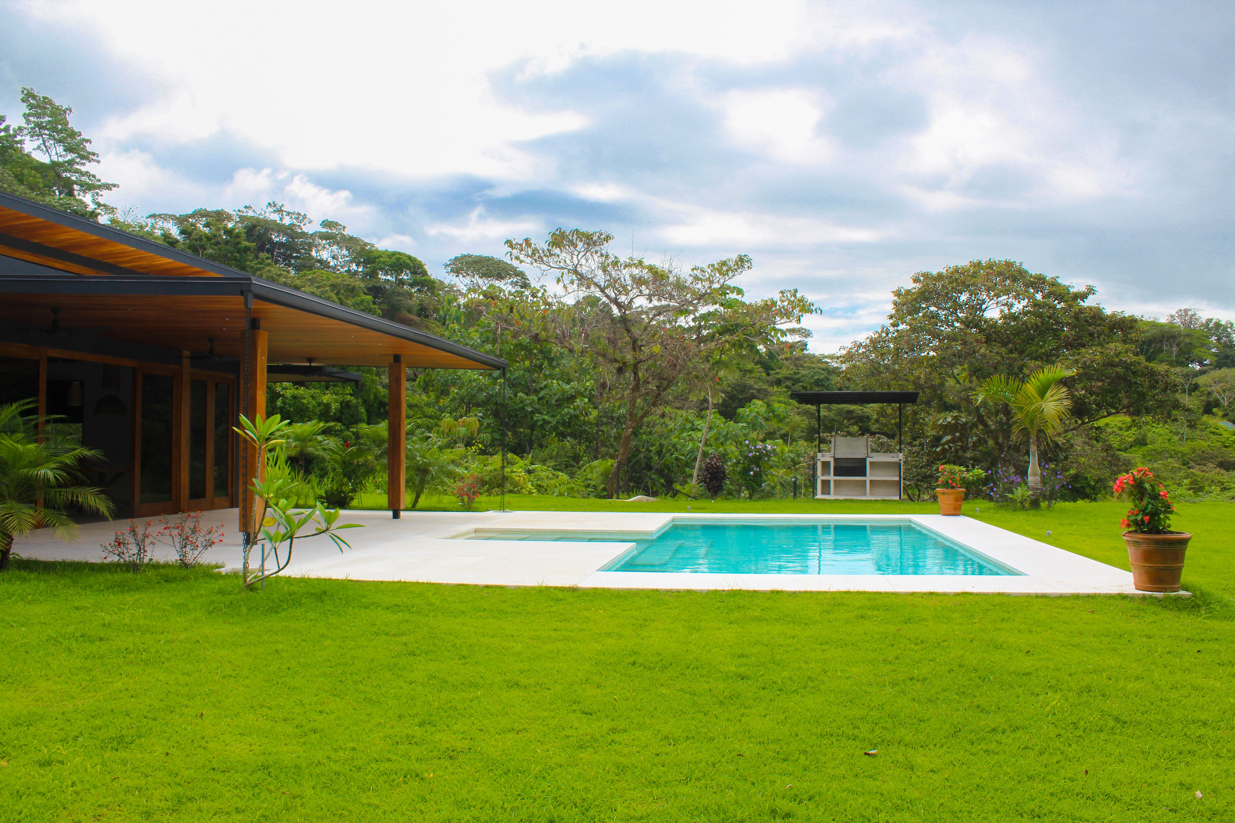 The yard is beautifully landscaped and perfectly designed to enjoy a relaxed tropical lifestyle entertaining family and friends by the pool. Spacious covered terrace and built-in BBQ from which to enjoy sunset dinners. The refreshing pool has stone tiles creating an inviting clear blue color water. This is where you will spend most of your time with ample cover from the sun or rain, gazing at the Pacific Ocean and panoramic stars at night. Bonus elevated tropical rancho from which to further enjoy the sunsets or relax in a hammock.