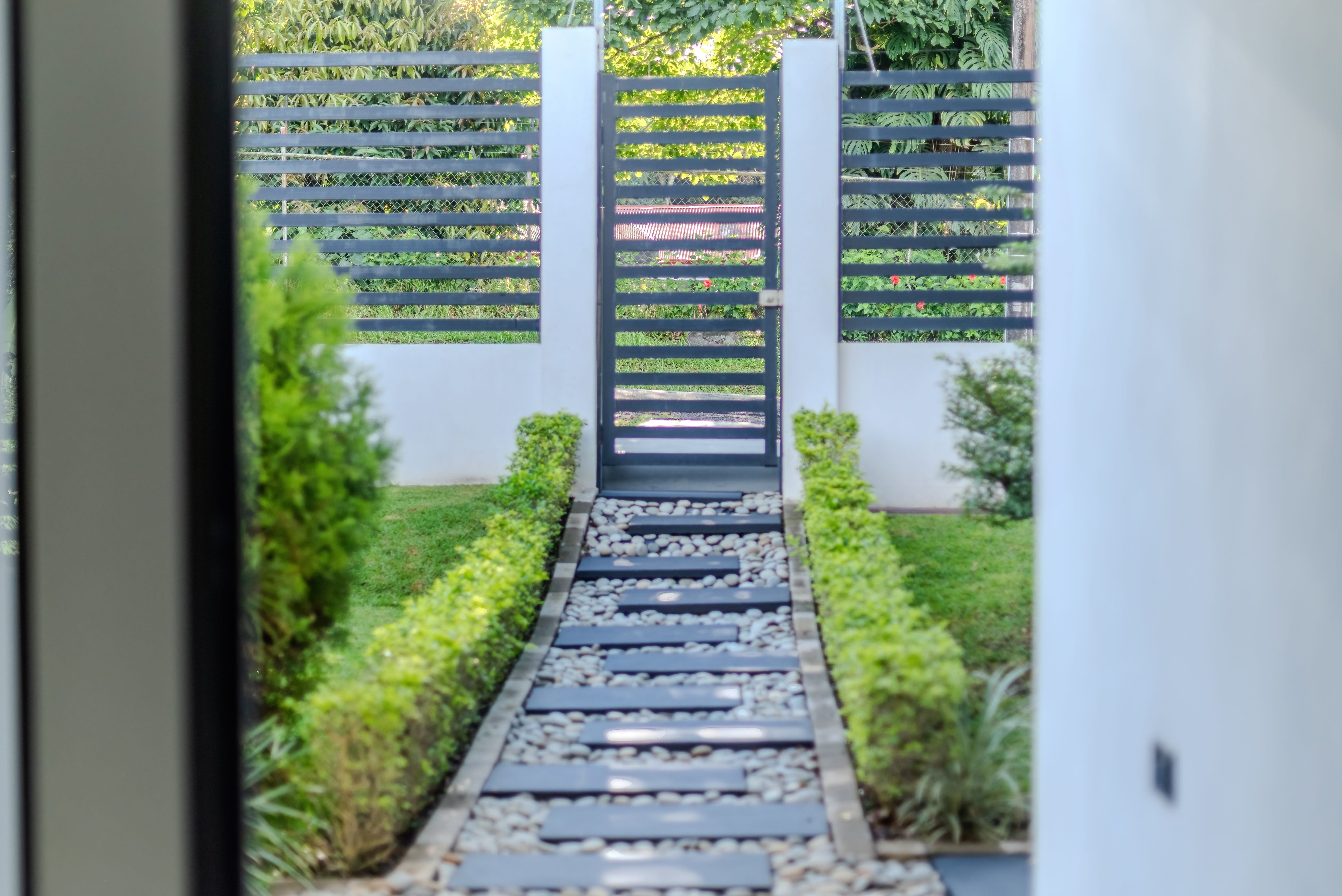 The two secondary bedrooms each feature built-in wardrobes, while the entire home reflects thoughtful upgrades like granite countertops, modern lighting, and quality finishes. The property is fully fenced, with an electric gate for security and privacy. A natural wall of trees along the perimeter (out of the property) enhances the sense of seclusion, bringing shade, freshness, and birdsong right to your doorstep. Most of the furniture is included, making the home move-in ready.