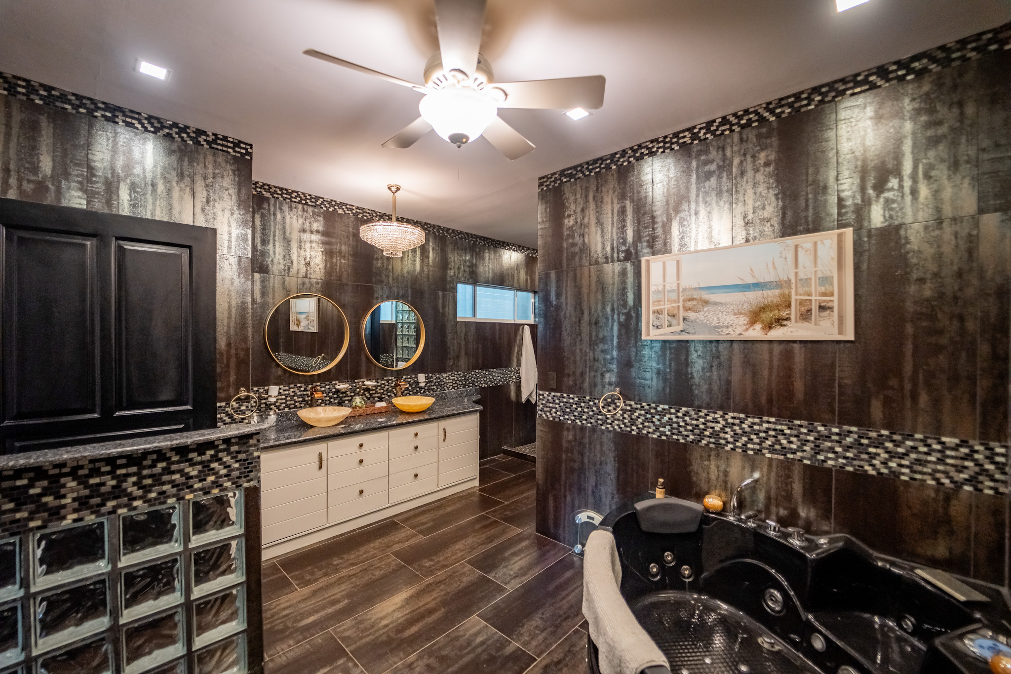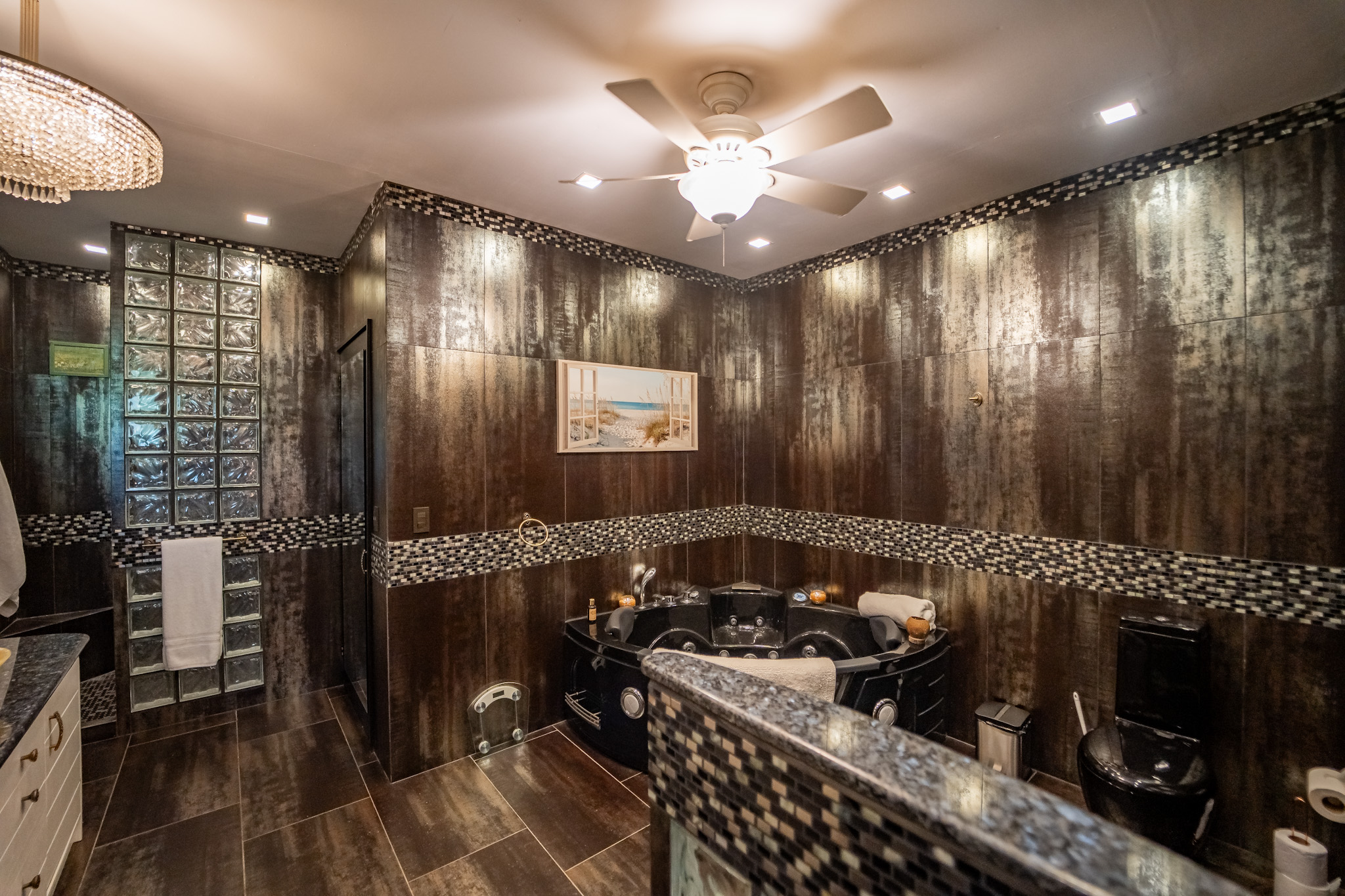 The primary bedroom features a huge bathroom complete with jacuzzi tub, shower, a double vanity, and walk-in closet. The two additional bedrooms are generously sized, offering plenty of flexibility—perfect for hosting guests, creating a home office, or accommodating family. A second spacious, well-appointed bathroom ensures comfort and convenience for everyone.
