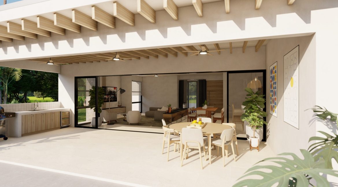 - Covered outdoor dining areas with kitchens and BBQ spaces