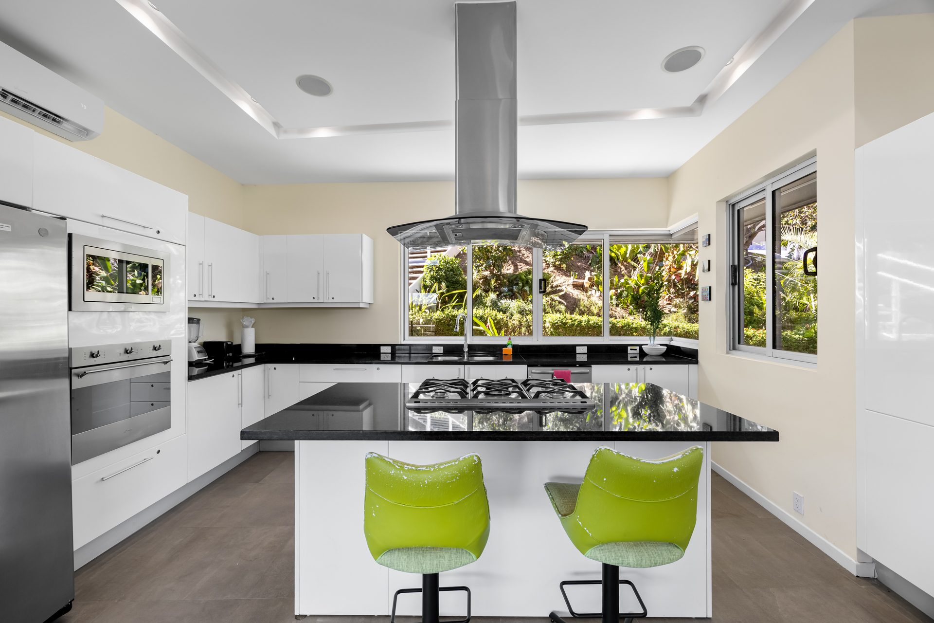 Step inside to discover a home designed for both comfort and style. Imported Italian porcelain tiles flow seamlessly throughout the entire residence, while the gourmet kitchen is equipped with top of the line Smeg appliances, including a gas cooktop, electric wall oven, and a sleek stainless steel refrigerator and dishwasher. The open concept upper level family room opens to the outdoors with retractable glass doors, creating a seamless indoor-outdoor living experience with stunning ocean views. The luxurious master suite and two guest bedrooms, each with ensuite bathrooms, offer ultimate privacy and comfort. Additional highlights include a rooftop ocean view deck, central vacuum system, volcanic stone cladding, soft close cabinetry, rain showers, and a comprehensive security system. Designed for effortless living and entertaining, Casa Nalifos is a rare gem that combines beauty, functionality, and prime location truly a must see.