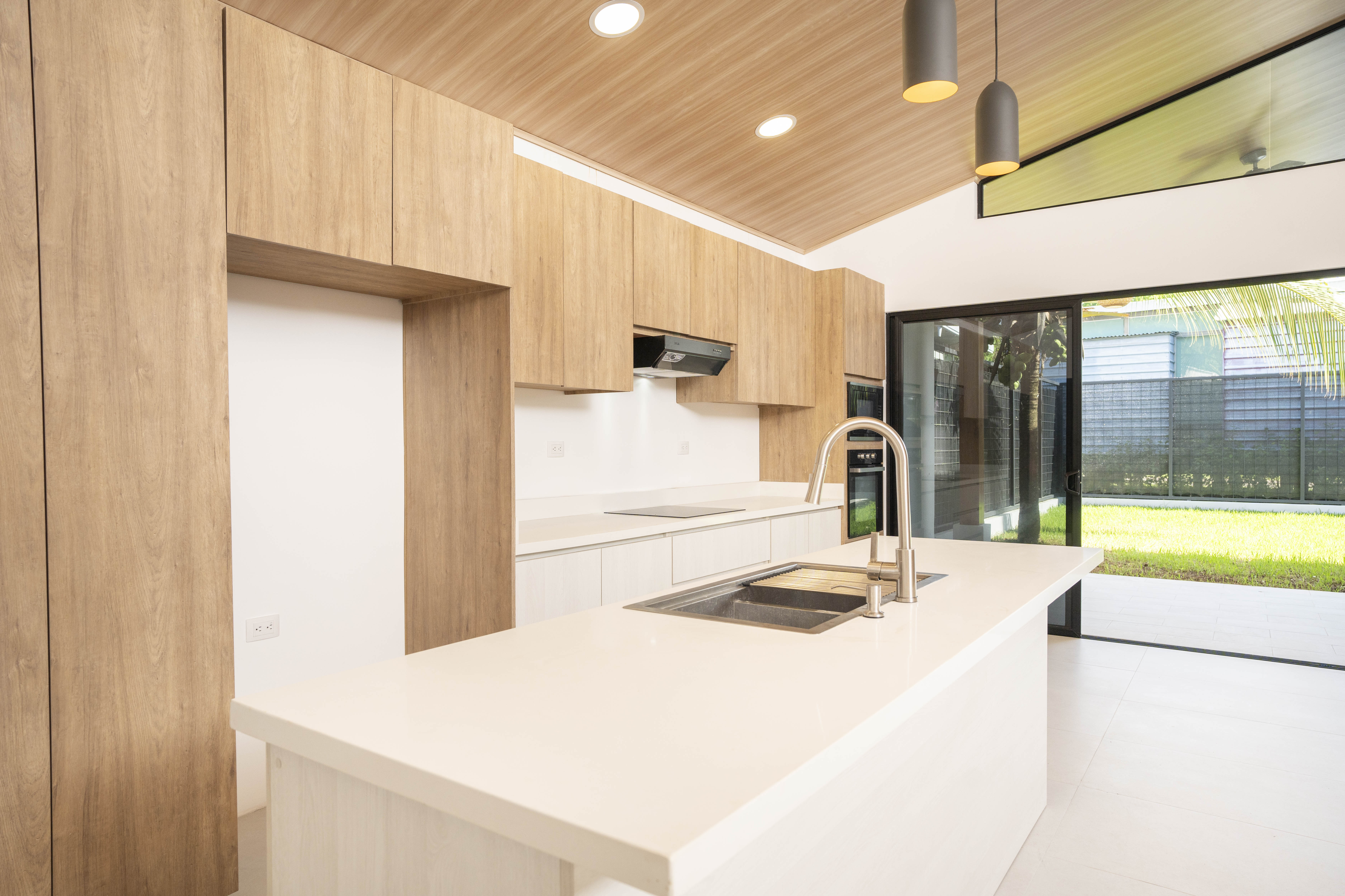 *Spacious Layout: 220m² of living space on a 320m² lot. *Master Bedroom Retreat: Walk-in closet, direct pool access, and en-suite bathroom. *Private Pool: Relax in your own tropical oasis. *Open Concept Design: Bright and airy kitchen and living areas perfect for entertaining. *High-end finishes: Quartz countertops, porcelain floors, and LED lighting throughout. *Comfort Included: Split-unit AC systems and ceiling fans for year-round cool comfort. *Practical Additions: Covered parking for 2 vehicles and a lush backyard.