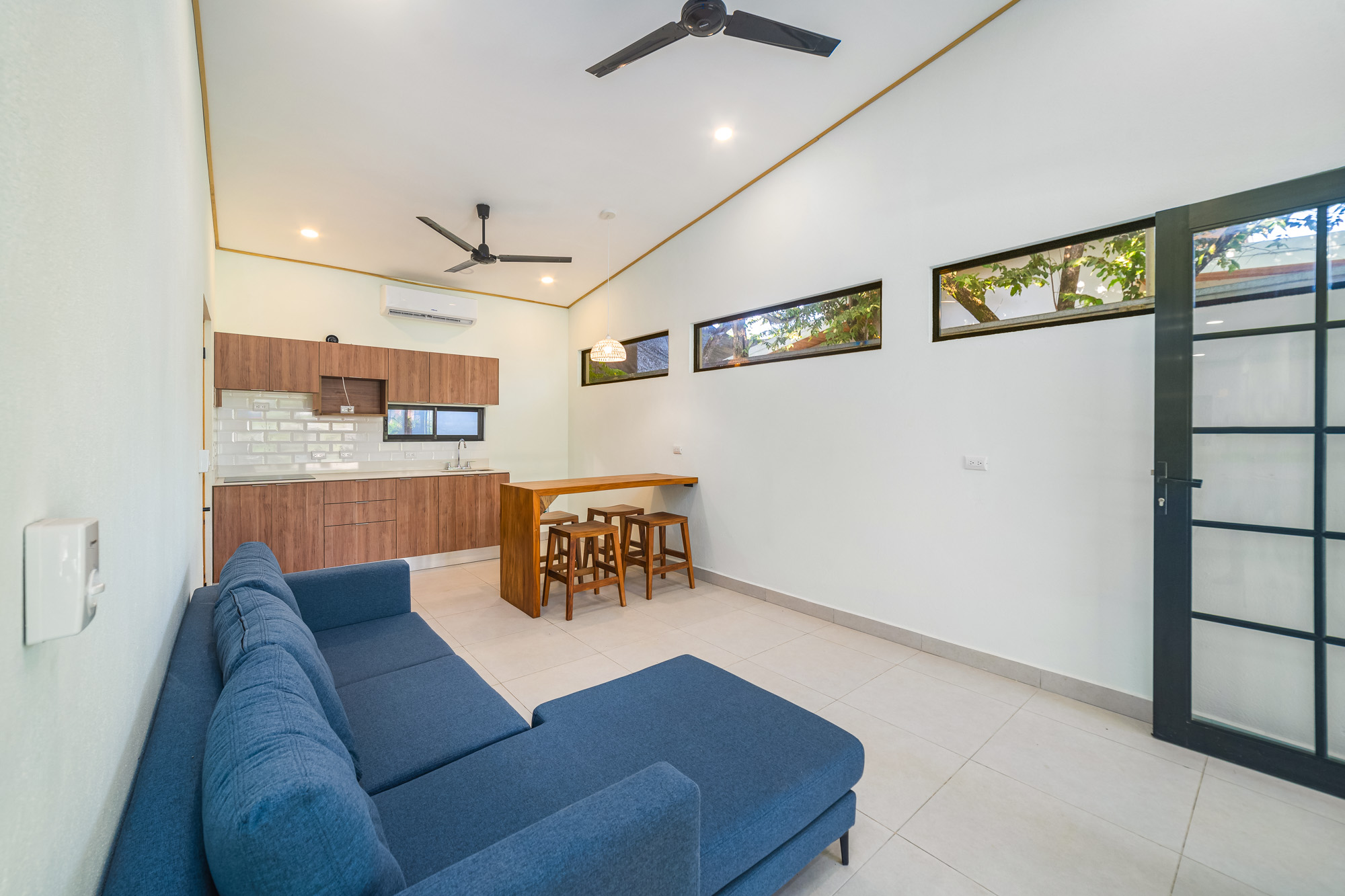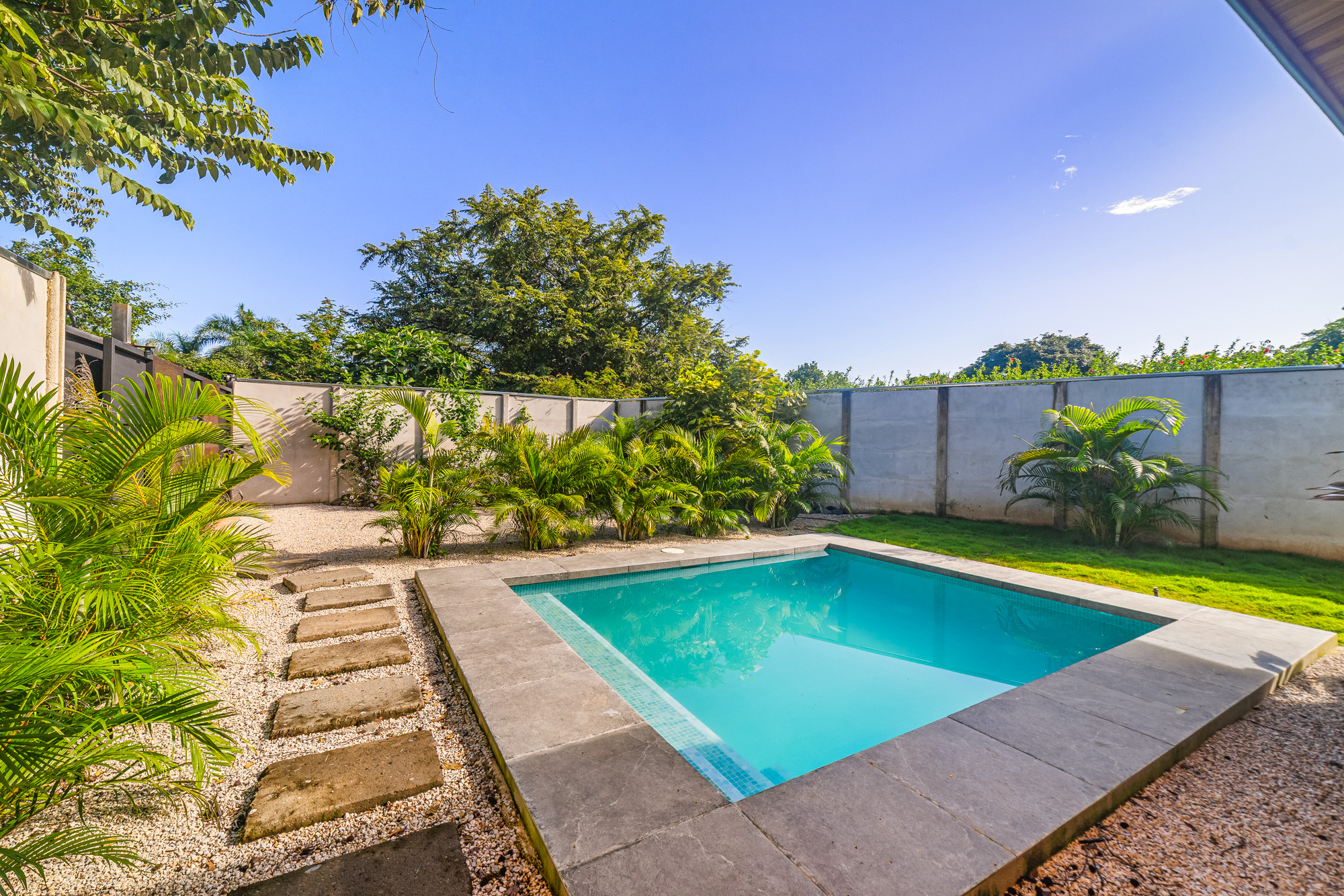 The layout has been well thought with an outdoor patio overlooking the pool, opening to the kitchen and living room area fully air conditioned and the 3 bedrooms are smartly distributed in a small hallway, allowing a quiet "sleeping quarters". It is adapted to both short term and long term rentals so you can use it at your convenience and make the best of it !