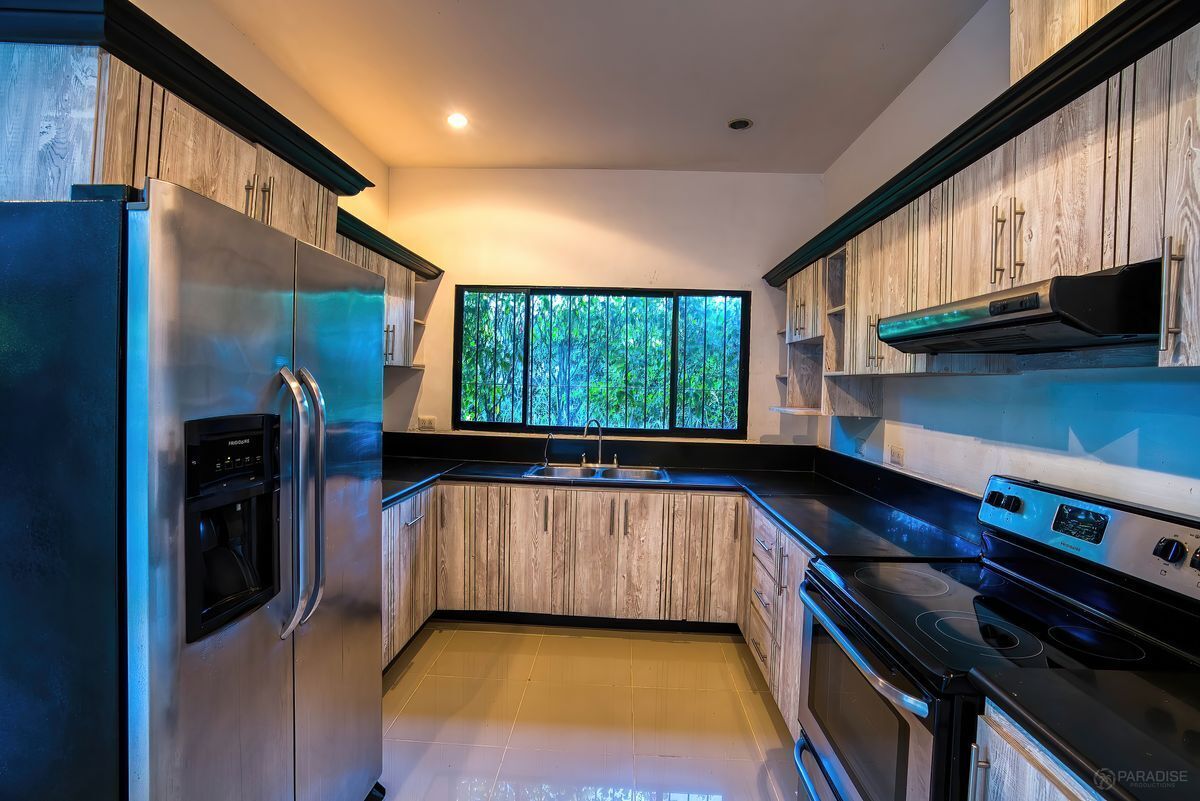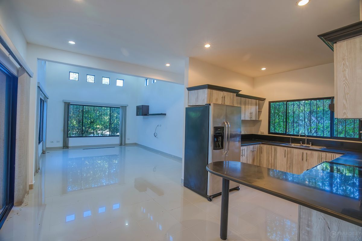 Nice family oriented community just 5 minutes to Playas del Coco Mediterraneo community, is nestled in Nazcascol, a short drive away from the bustle of town, shops and beautiful tranquil beaches. Casa Amapola offers 3 bedrooms, 2 full baths, full kitchen, living room with large windows and cathedral ceilings, laundry room and gaited patio, all on one level. The second story patio is a beautiful place to take in the jungle views but was also built for the possibility of a 4th additional bedroom. All bedrooms have ample closet space and natural light; Master suite with large walk-in closet and private bath with a two-sink vanity. The house includes newer inverter A/C units for better energy consumption, tasteful rod iron bars for security, lush hibiscus plants for tasteful privacy and parking for 4 vehicles. The community has no HOA, motor mounted surveillance personnel, access to pool and tennis courts for a fee of $50 per month to use the amenities.