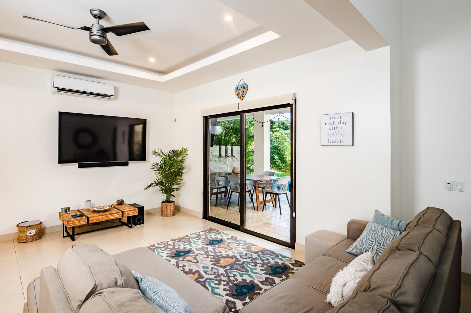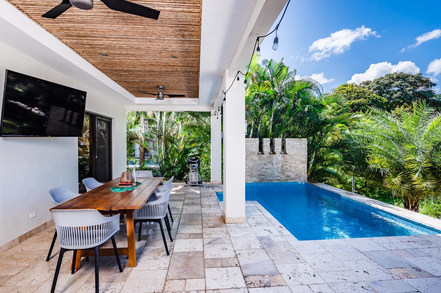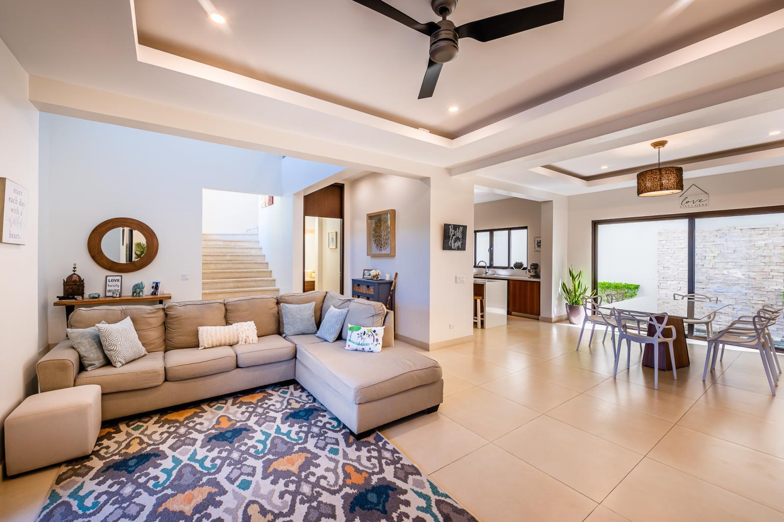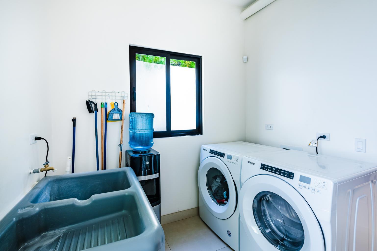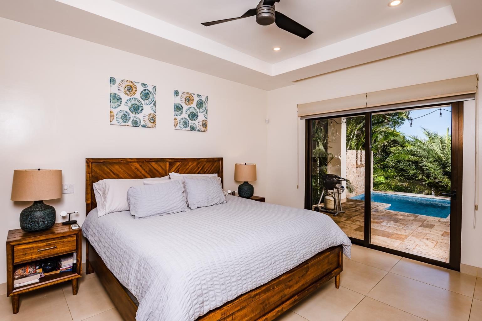 Before entering the house, you are drawn to the outdoor pool with configurable lighting and the spacious natural stone deck. The vaulted ceiling entry, open-concept living area, and sliding glass doors in the living room draw you in. The large gourmet kitchen is anchored by a marble-top waterfall edge island and includes Frigidaire Gallery appliances, a convection oven, soft close doors, ample cabinet storage, and a separate storage room just off the kitchen. The master bedroom is on the ground level and has direct access to the pool via sliding glass doors. The stairs are designed with custom coral tiles that reveal actual fossils, an open banister overlooking the living room and open entryway, and two bedrooms on the second floor. The house also has fiber internet, covered parking for two cars, and a large underground storage area for all of your Costa Rican toys. Owners and potential renters have access to the Pacifico beach club, a sports complex with tennis and pickleball courts, numerous pools and hot tubs at the lifestyle condos, hiking trails, and other amenities.