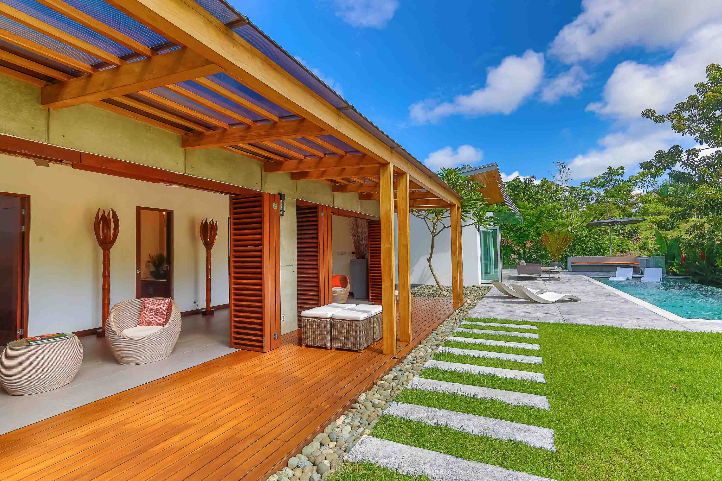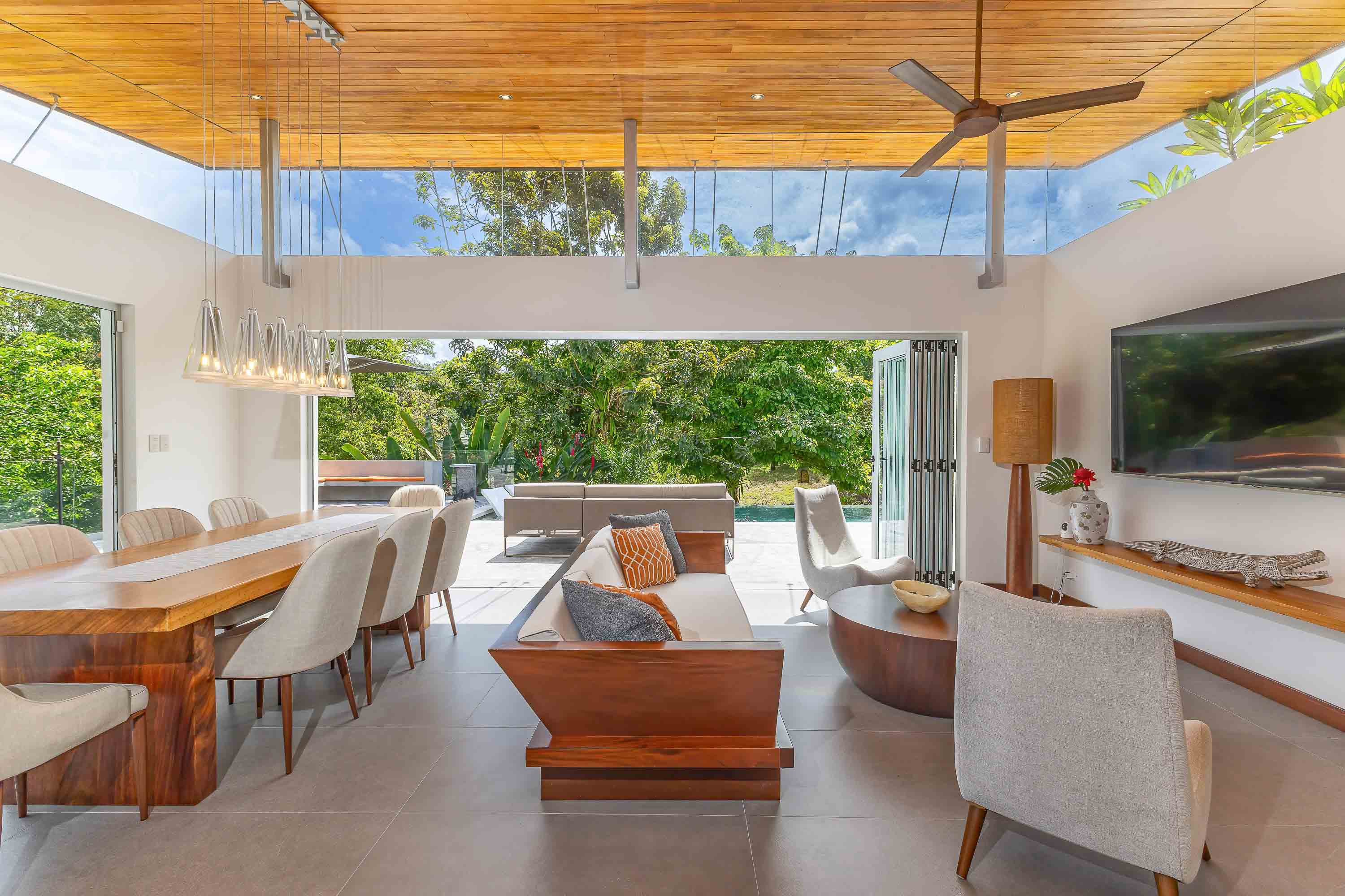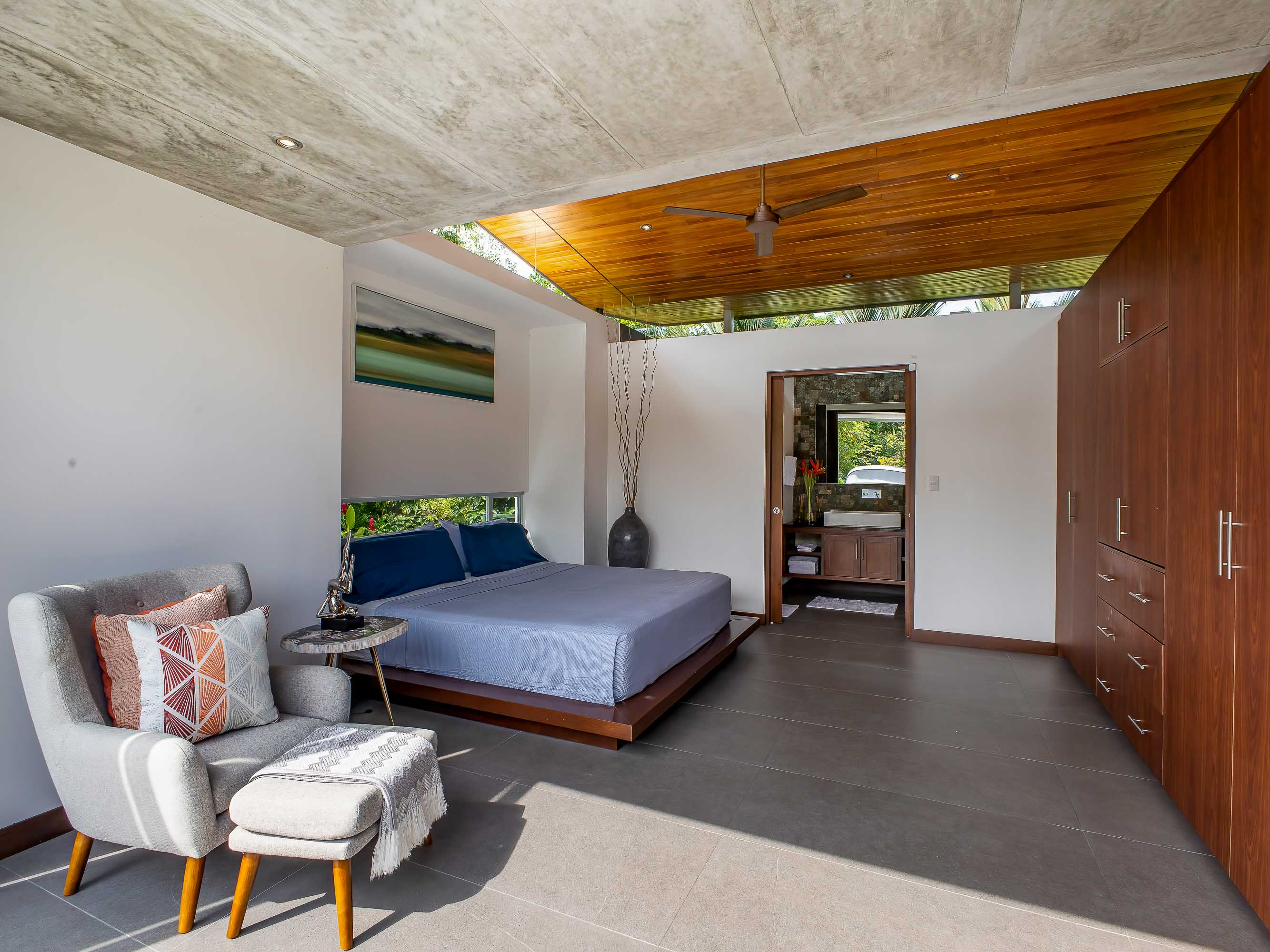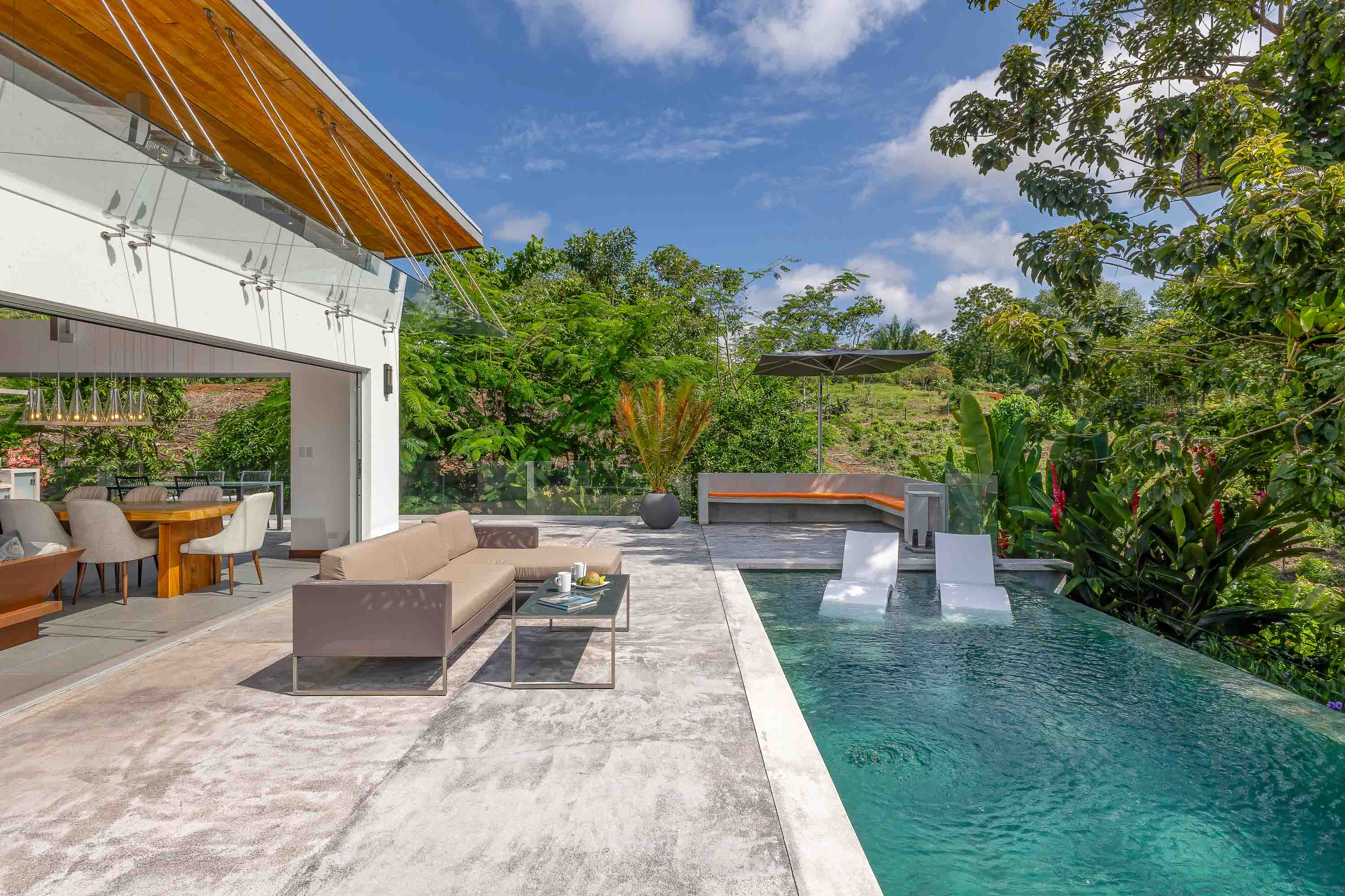 This one-level, modern luxury home is located only 10 minutes from the Marina Pez Vela in Quepos and 15 minutes from the world class beaches of Manuel Antonio. The approximately 1.5-acre property is fully fenced, and gated, and has a long internal driveway, friendly rolling topography, a dog run, mature landscaping, and beautiful mountain views. The grounds have mature fruit trees and afford plenty of additional space for further construction of additional dwellings for guests, a family compound, rental purposes, or even the creation of a wellness retreat center if desired.