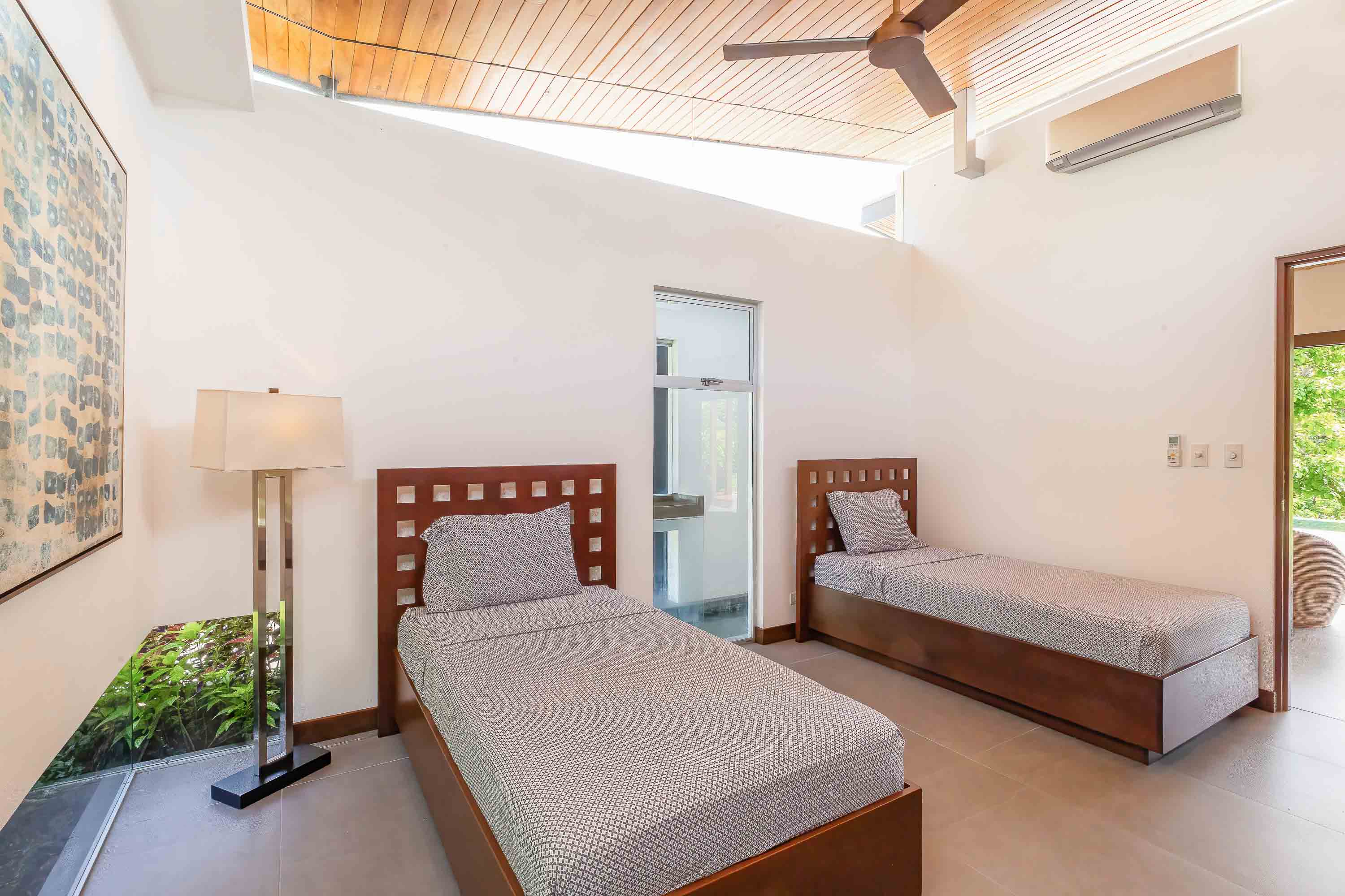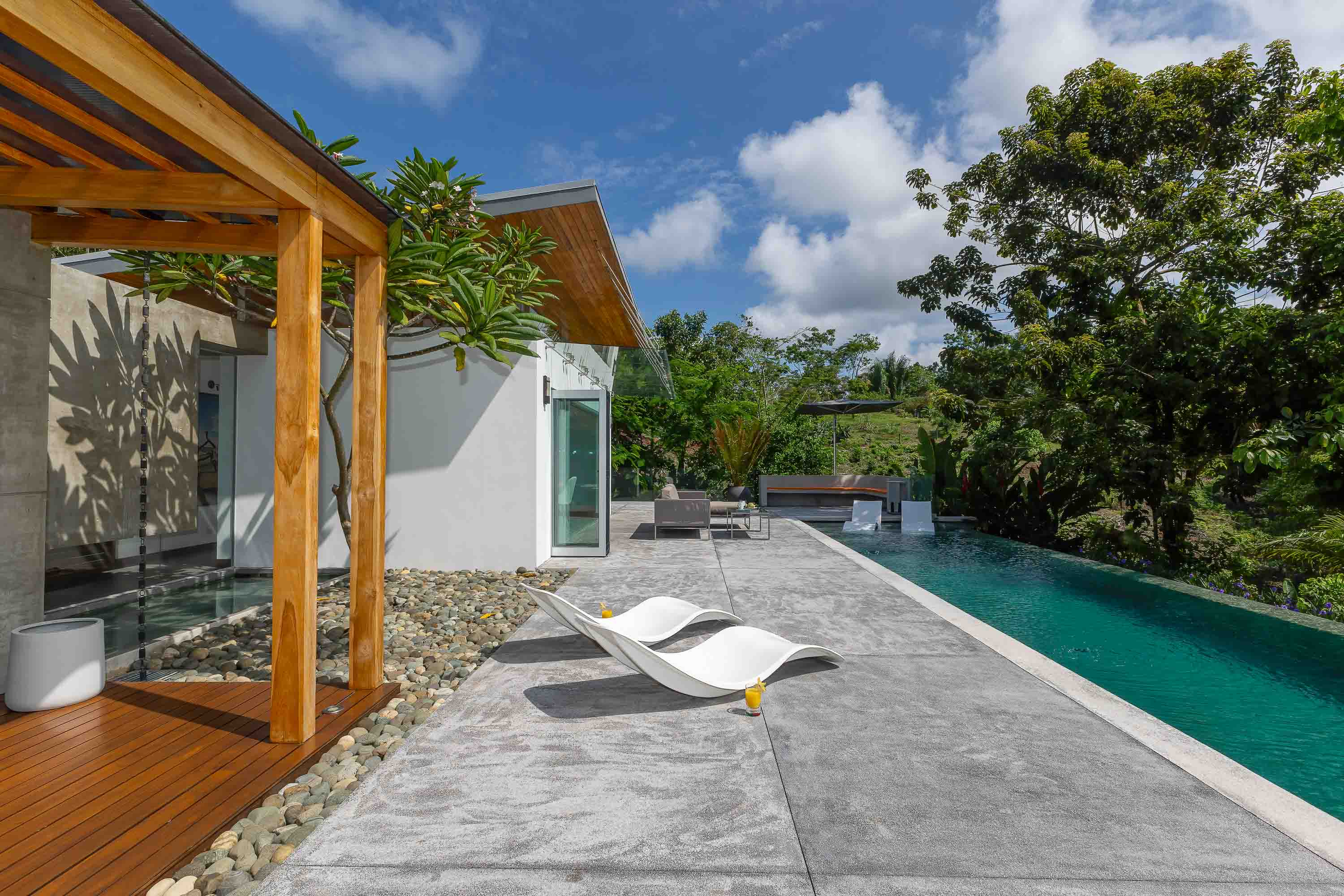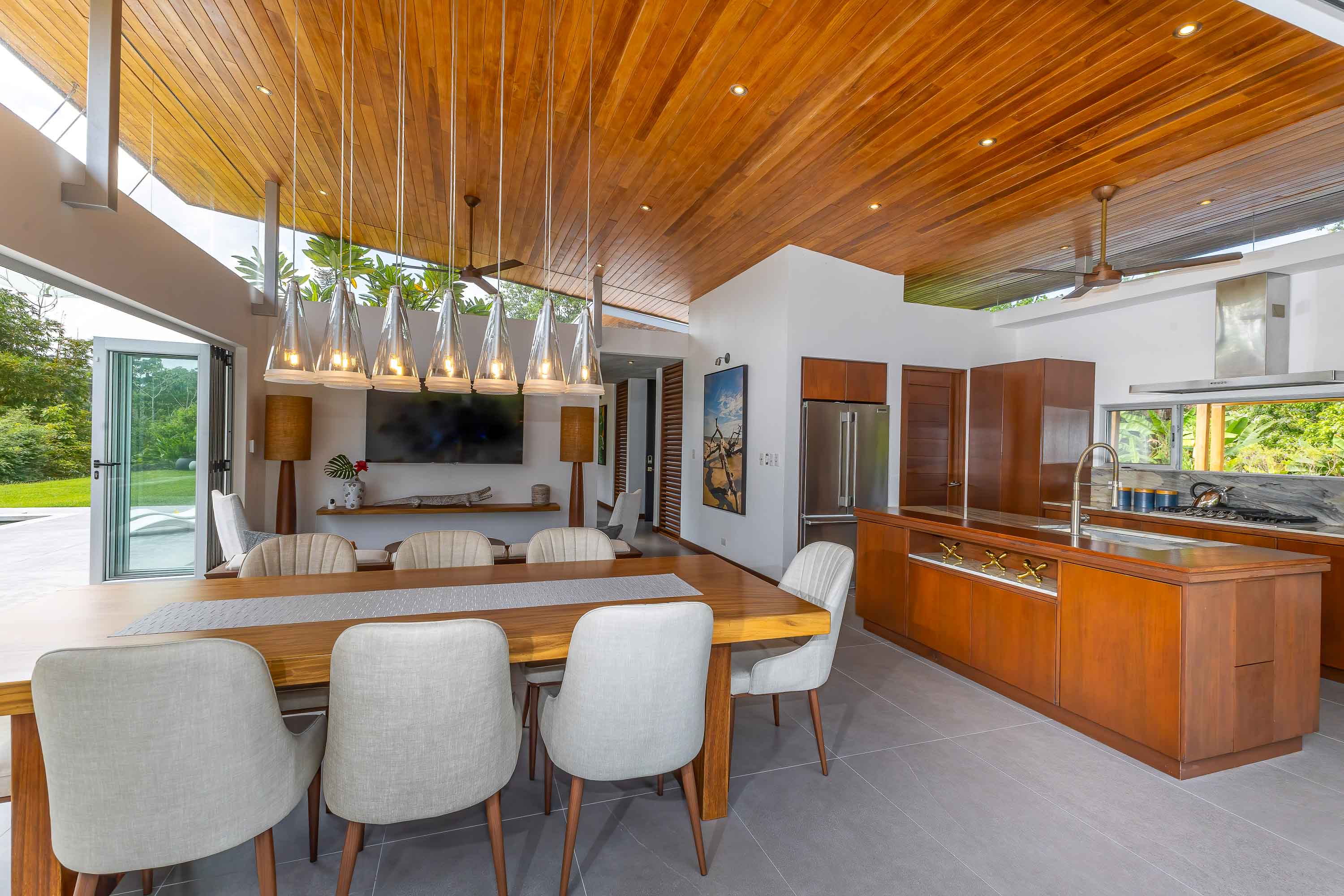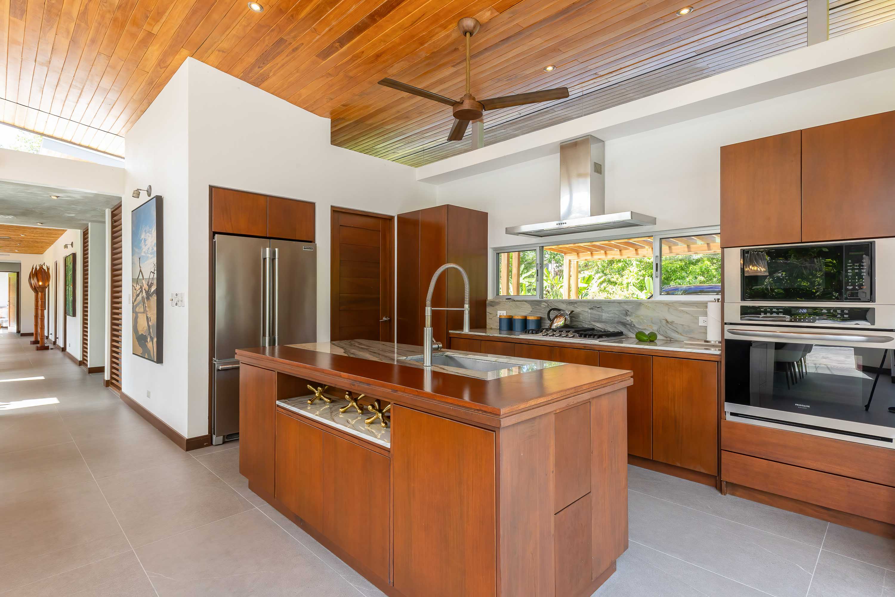 This one-level, modern luxury home is located only 10 minutes from the Marina Pez Vela in Quepos and 15 minutes from the world class beaches of Manuel Antonio. The approximately 1.5-acre property is fully fenced, and gated, and has a long internal driveway, friendly rolling topography, a dog run, mature landscaping, and beautiful mountain views. The grounds have mature fruit trees and afford plenty of additional space for further construction of additional dwellings for guests, a family compound, rental purposes, or even the creation of a wellness retreat center if desired.